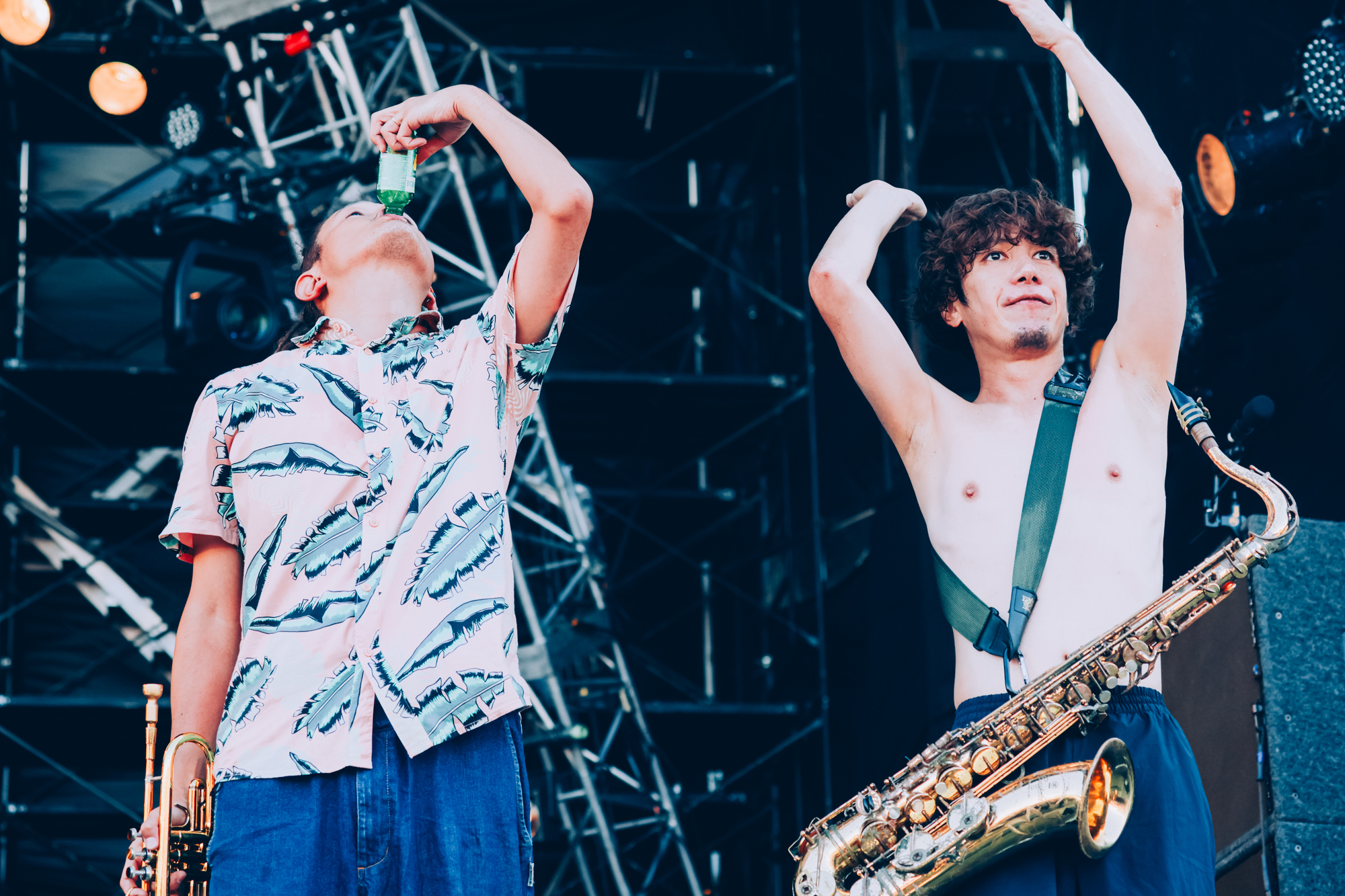 海沿いにあるSUN STAGEでは、『ジャイガ』常連のビッケブランカがグッドメロディを響かせた。フェスに出演するため前日までヨーロッパに滞在していた彼は「感情を露わにできるパワフルなところが大阪に似ていた」と話し、「This Kiss」「蒼天のヴァンパイア」「Ca Va?」など美しく力強い楽曲たちを風に乗せて伸び伸びと披露。
