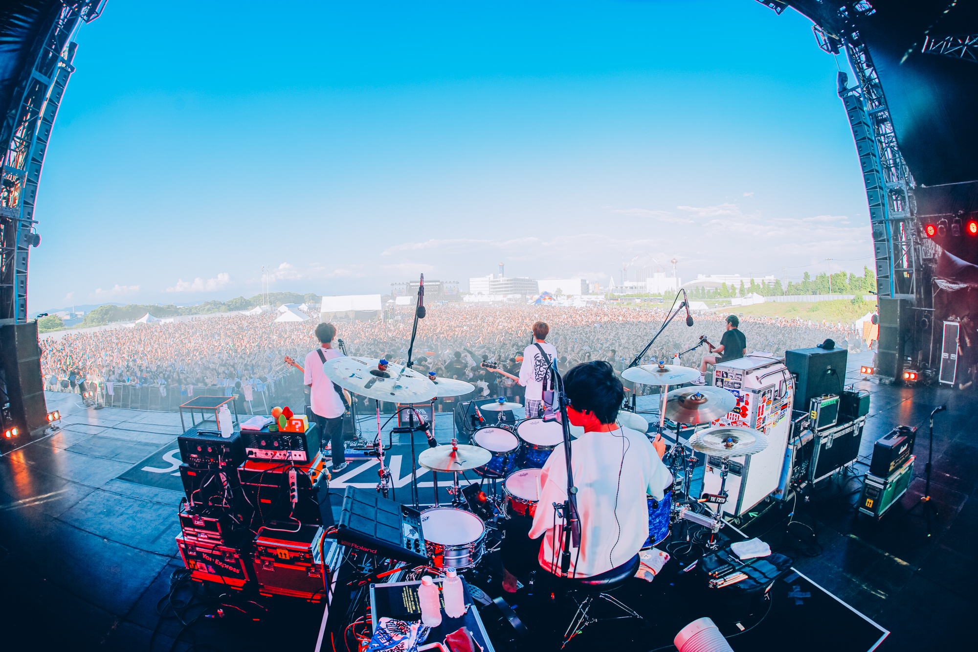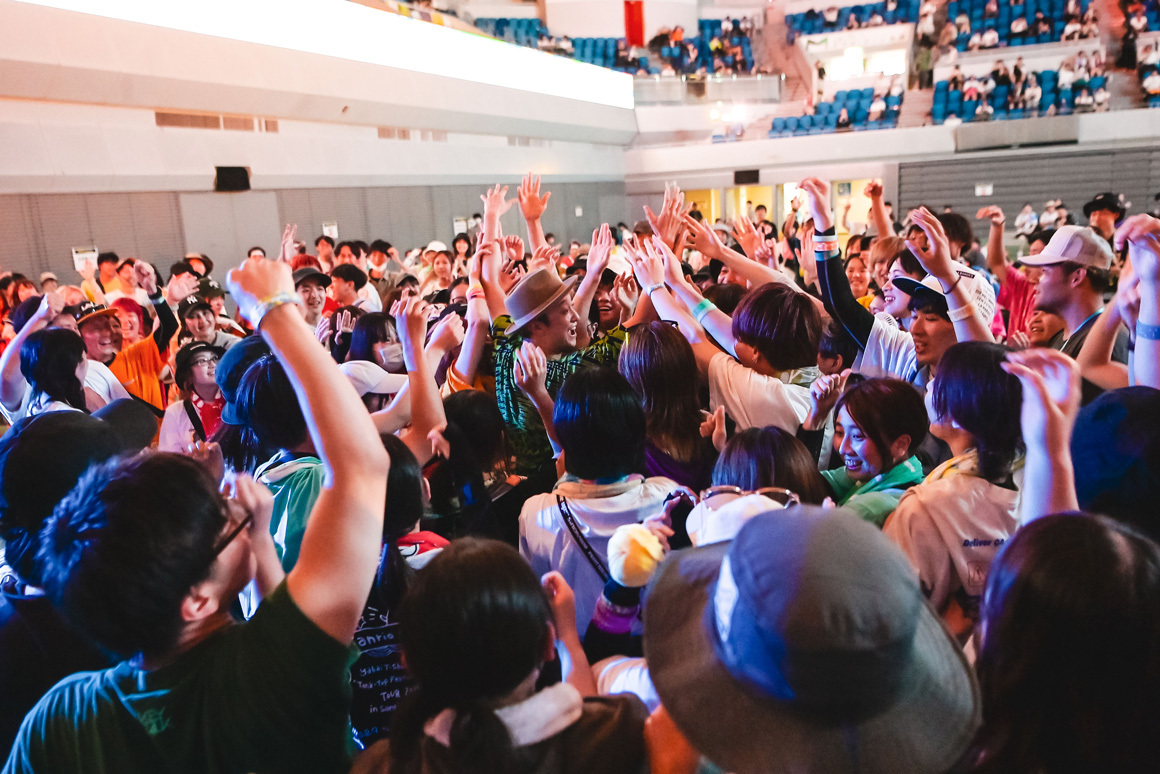 「キョードーに愛を込めて」と披露された「The First Love Song」では猪狩がYUJI(Vo.Ba)の歌を止めて観客にシンガロングを促す場面も。全12曲を一瞬で駆け抜けた6人。ヘイスミによる炎天下の轟音と砂煙は最高のご褒美だ。なおHEY-SMITHは9月に『HAZIKETEMAZARE FESTIVAL 2023』を開催する。