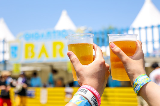 さらに今年は混雑緩和のため、LINEアプリを利用した「LINE整理券」も登場。当日販売分のオフィシャルグッズや一部アーティストグッズの事前予約、オフィシャルコラボメニュー購入の際にLINE上で整理券を取得すると、自分の番がきたらLINEで通知がくるため、並ばずにフェスを楽しむことができた。