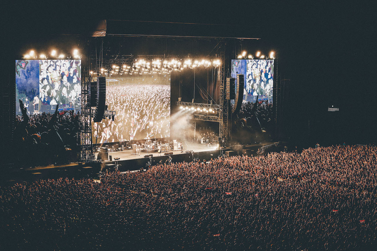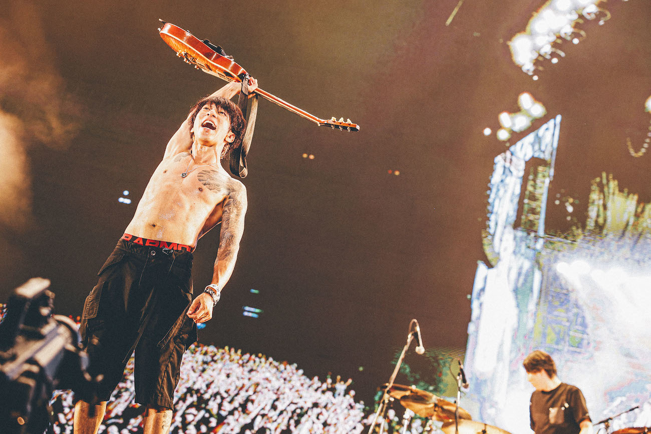 貫いてきたメッセージも、さらに強固に感じられた。ずっと彼らが歌い続けてきた「自分の道を迷わずに進んでいく」という意思をシンガロングしながら噛みしめた “ジターバグ”や、そんな彼らが歩んできた物語を実感する“虹”などハイライトが続くなか、細美にMCを促された高田雄一(B)。大舞台にも関わらずいつもの調子で「ほんとに言うことがないんですけど……」と戸惑いつつも、「またやりましょう」と宣言! 細美も「死ぬまでにもう一回ここでやりたい」と続ける。その後の“Make A Wish”では、再び会うための約束、それまで戦い続ける決意が、シンガロングやジャンプとなって、スタジアム全体にキラキラと輝いていた。続けて“Strawberry Margarita”がピースフルに響いたエンディングも最高だった。