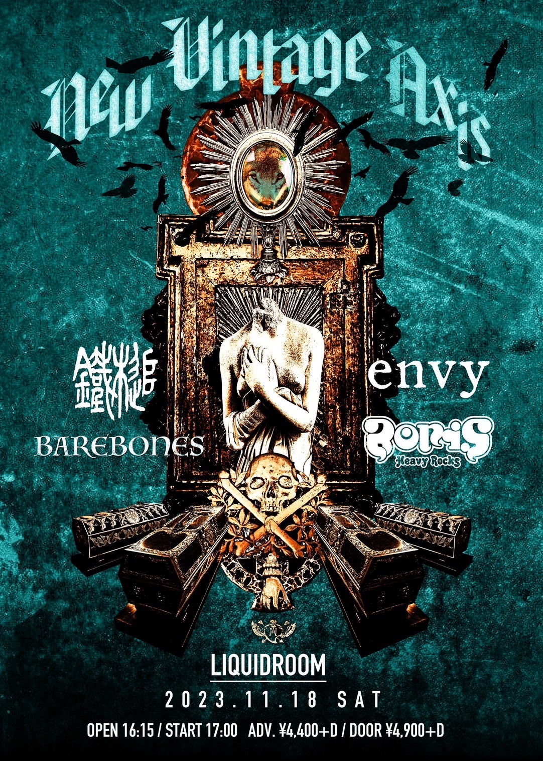本公演は、1990年代より各シーンにて孤高の活動を国内外で続けてきた4BAND(BAREBONES / boris -drone set- / envy / 鐵槌)が、『New Vintage Axis』のコンセプトの基に呼応しあい、LIQUIDROOMで一堂に会するイベントとなっている。