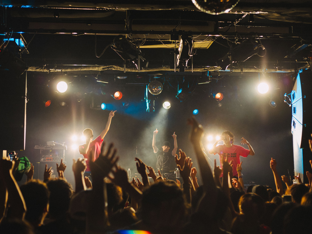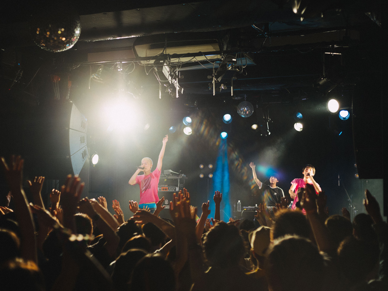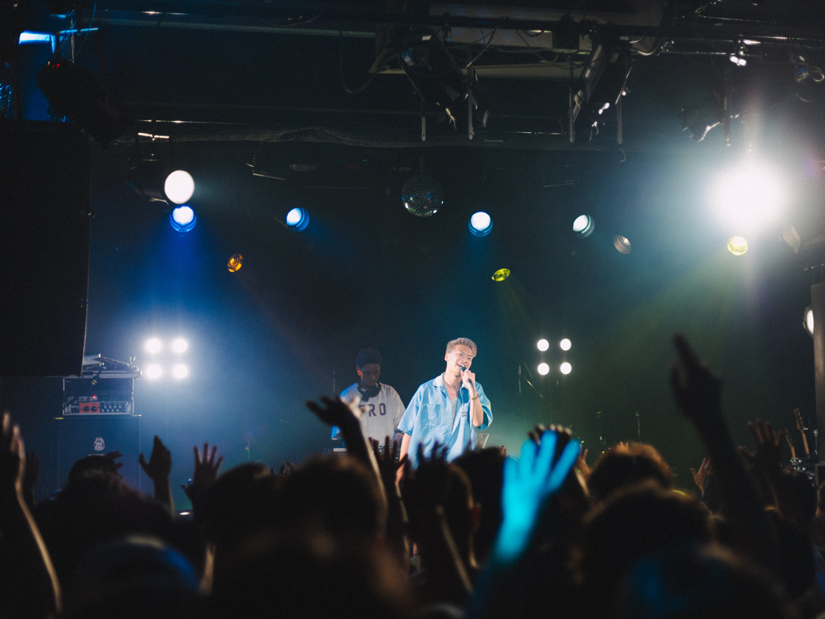 ライブは「OMG」でさらに最高潮へ。フォークソングの定番曲「オクラホマミキサー」をサンプリングしたトラックはポップなリズムが耳なじみ良すぎて、時間がアッという間に過ぎていく。ライブ後半は、7月19日にリリースしたばかりの新曲「白米」を披露。疾走感あるビートに乗せ、白く輝く白米を称える攻めのライムを構築しちゃう彼らの才能とセンスに思わず啞然としてしまう。終盤には「SANAGI」で改めて、卓越したセンスとストーリー性抜群なリリックを見せつける2人。「音楽に救われるぜ!」と、「DRUG」で気持ちを鼓舞するリリックとビートでフロアをハイジャンプで盛り上げ、ステージを締めくくった。
