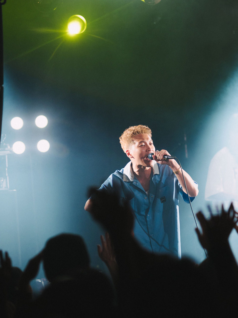 オープニングアクトのDraw4は大阪・枚方出身、新進気鋭の存在として注目を集めるラッパーだ。「ボクとみんなの共通点はライブが大好きっていうこと」「ヒップホップシーンとは違う、ライブハウスで戦えることが嬉しい」と、ジャンルに関係なく楽しいライブにしようと、セルフライナーノーツのように自身の生い立ちを綴ったナンバーや心打つリリックで観客を魅了。