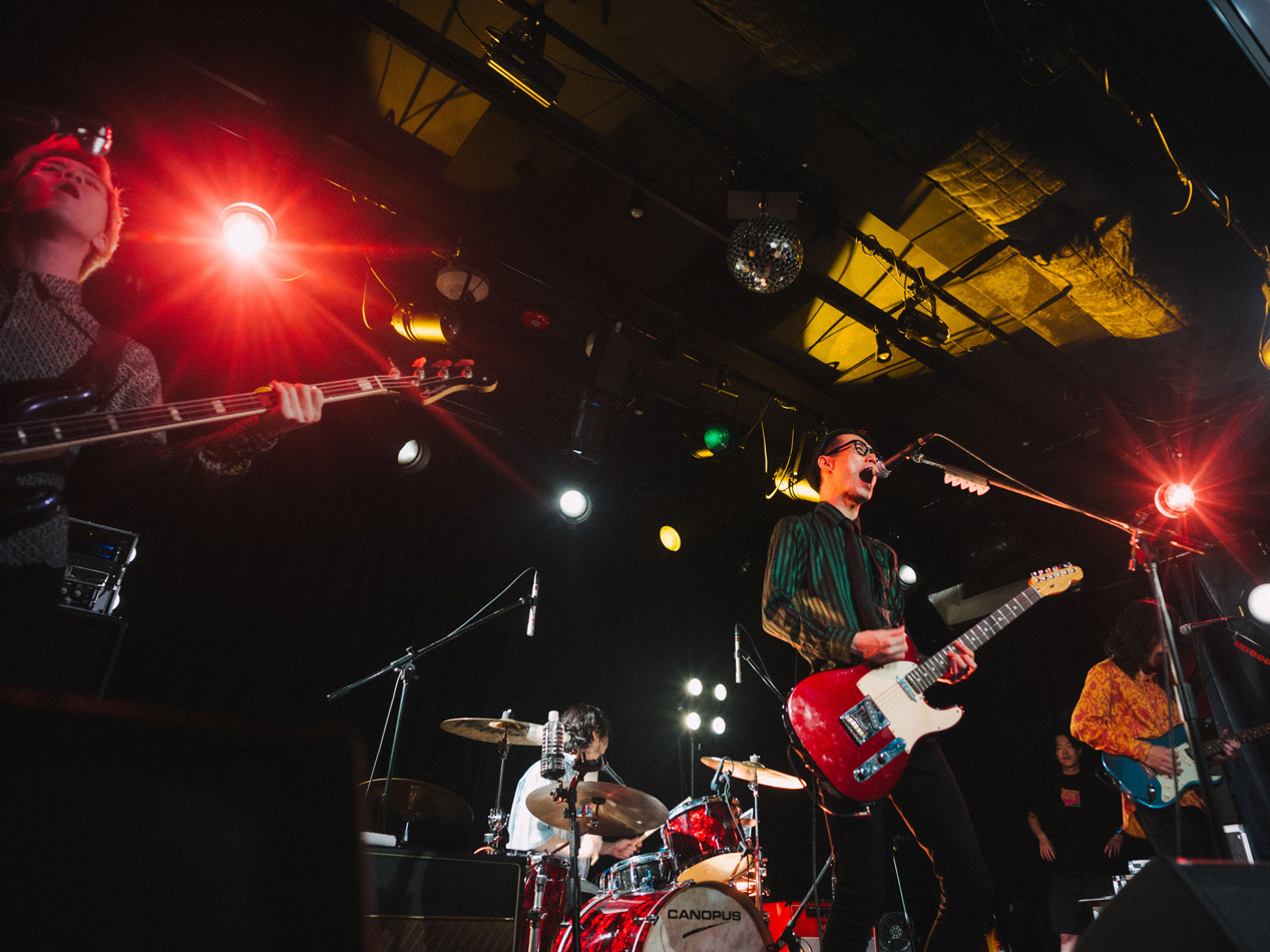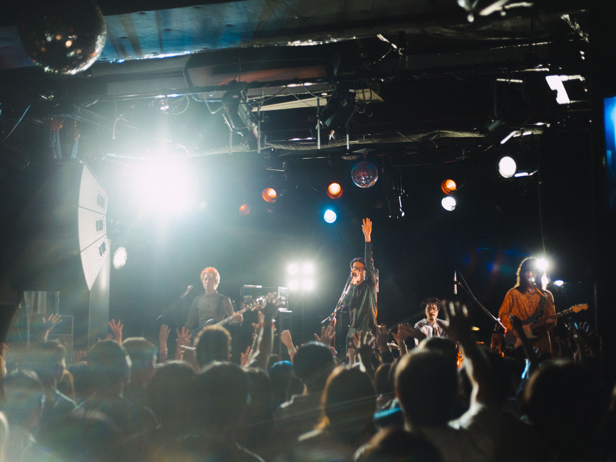 彼らのライブにおいて踊り疲れるなんてことは当たり前にないんだけど、「VANDALIZE」「審美眼」とトドメを刺すようなダンスチューンの連投には参ってしまった。米田のハイなボーカル、切れ味抜群のグルーヴに観客はついていくのも必死だ。ライブ終盤には感度抜群、ループする四つ打ちサウンドが刺激的な「WHERE?」でフロアをよりハイに! 曲中盤からぐっとギアが高まる瞬間もたまらない! ラストは「GIVE&TAKE」できっちり締めたと思いきや、アンコールでは、この日一番の疾走感あるナンバー「TAKE MY HAND」で豪快にトドメをぶっ刺してステージは終了。