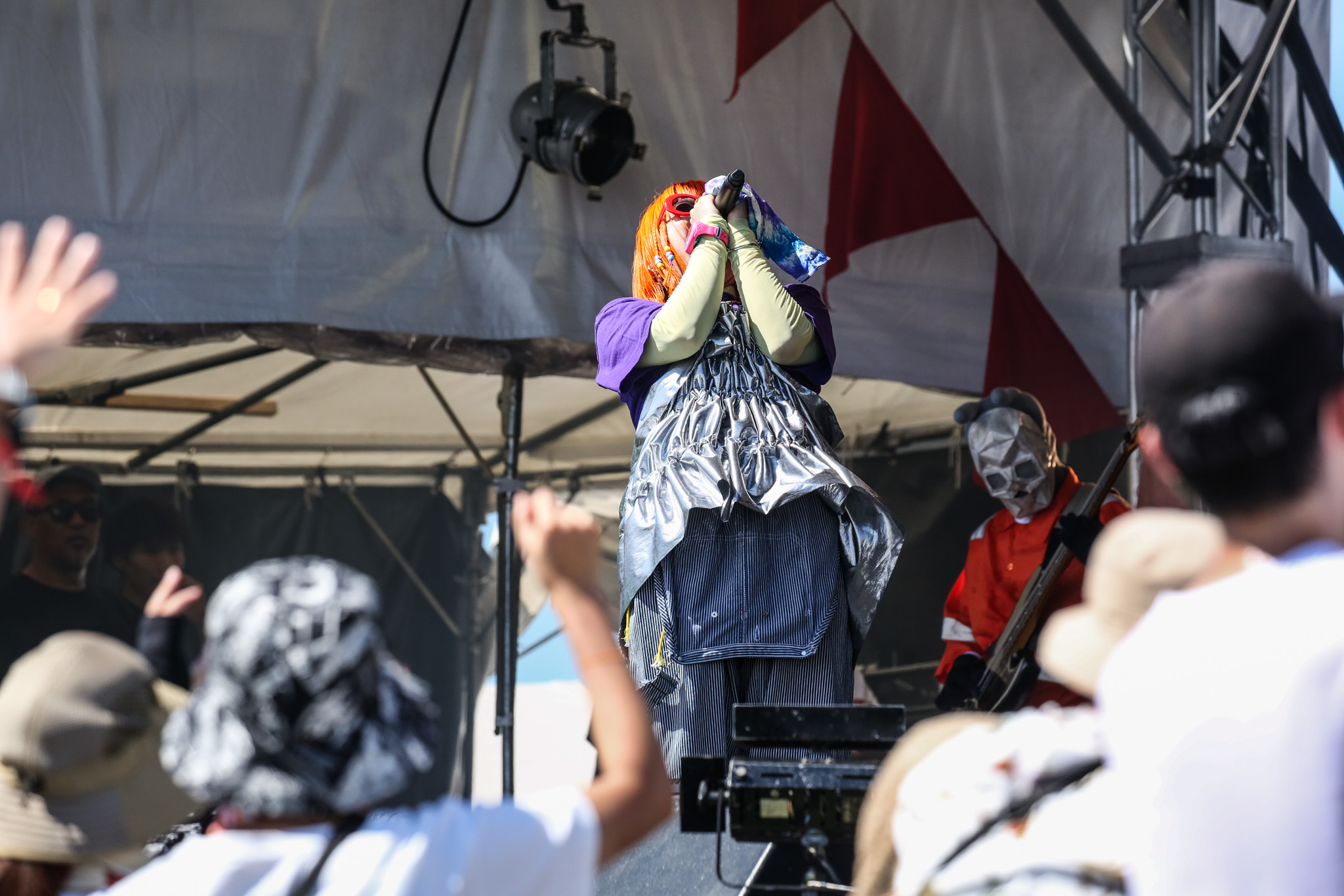 「ラスト3曲はめちゃくちゃ踊れるやつを!」と、「Whoopie is a Punkrocker(CLWP ver.)」「Crush Style」「 Love You!!!!!!」を連投。Whoopiesたちの演奏も激しさを増し、フロアのテンションをアゲていくラストスパートに。晴天の野外で聴くカメレオン・ライム・ウーピーパイ、めちゃくちゃ気持いい。夜の照明が映える時間だったら、どんなライブになるのだろうか、また違って最高なんじゃないか。そんな期待感と余韻でもワクワクさせてくれるステージだった。