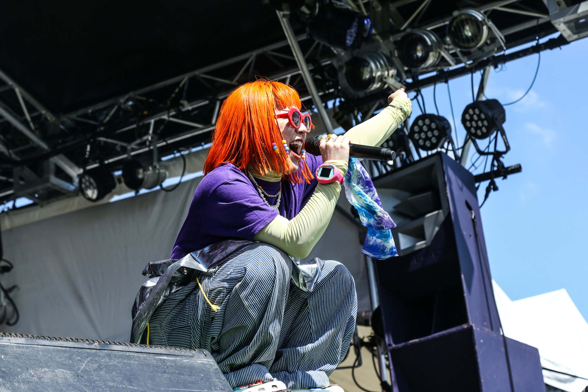 バンドの出演が続くATMCで、異彩を放ち視線を釘付けにしたのは、Chi-によるソロユニットのカメレオン・ライム・ウーピーパイ。2021年に、Spotifyが躍進を期待する次世代アーティスト『RADAR:Early Noise 2021』にも選出され、国内のみならず海外でも話題となっている彼女が、初登場の『RUSH BALL』で一体どんなステージが繰り広げられるのか、観客も一目見ようと詰めかけていた。