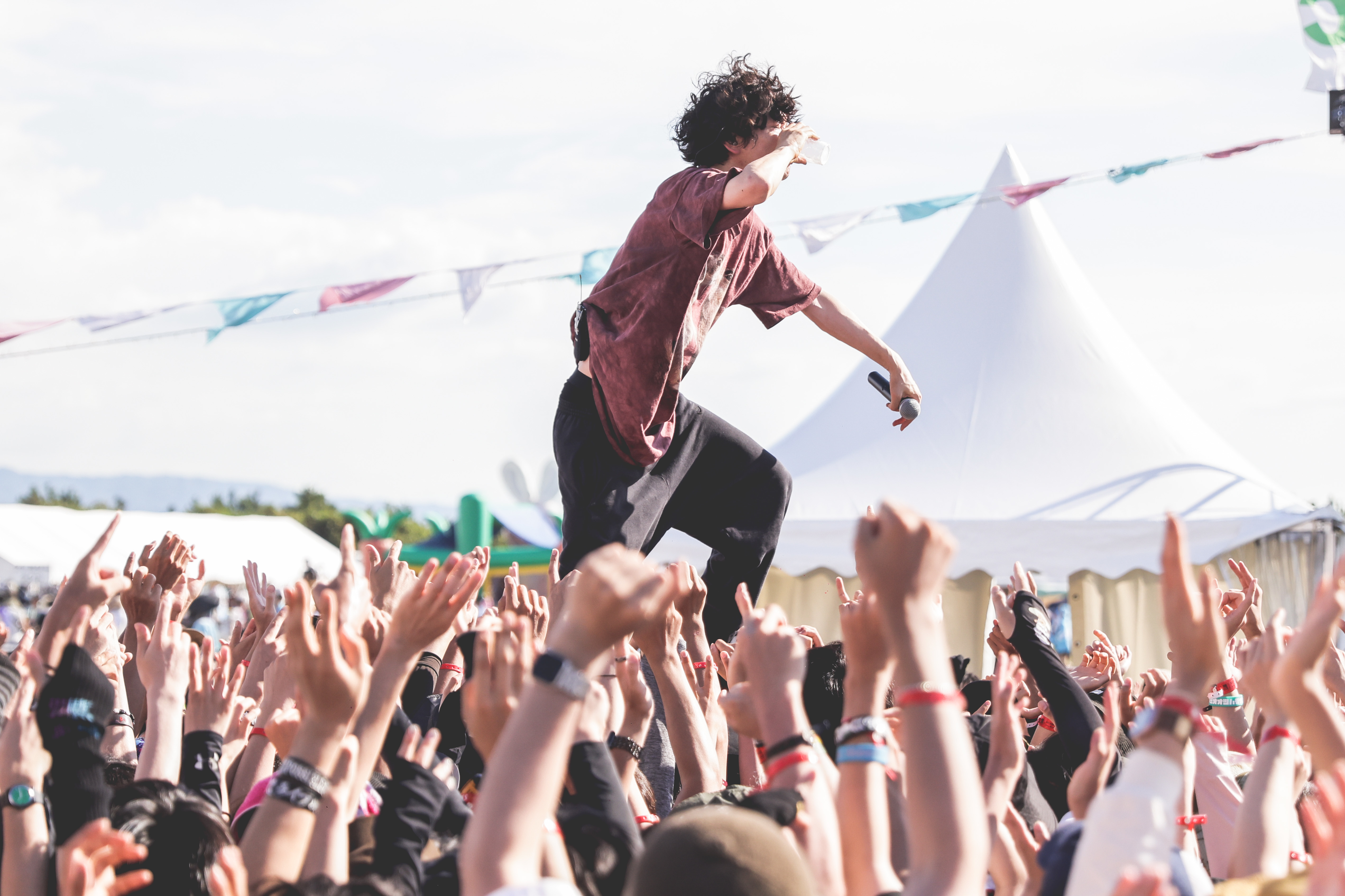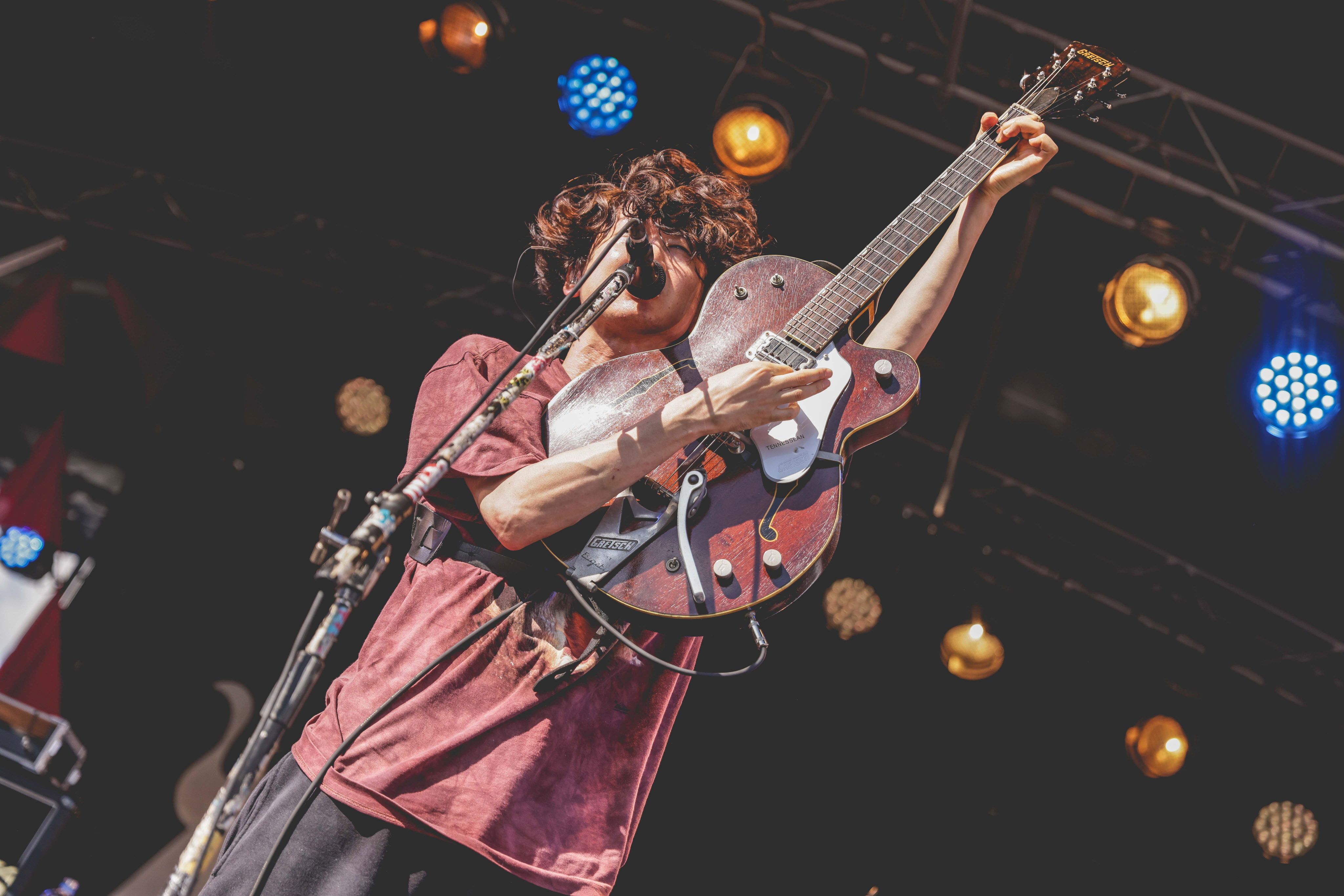 この歌詞で初っ端から持っていく「僕らチェンジザワールド」が1曲目の時点でガッツポーズしかない。まだまだロックンロールで世界を変えられると信じている素晴らしき馬鹿であり、続く「ばかばっか」では<世の中ばかばっか>と苛立っている。この人間臭さが最高じゃないか。そして、今年は10曲連続新曲リリースなんていう、これまた素晴らしき馬鹿で向こう見ずな事に挑んでいる。フェスは観客に耳馴染ある代表曲で勝負するのが、ある意味無難だが、そんな無難な事を柴田がするはずもない。