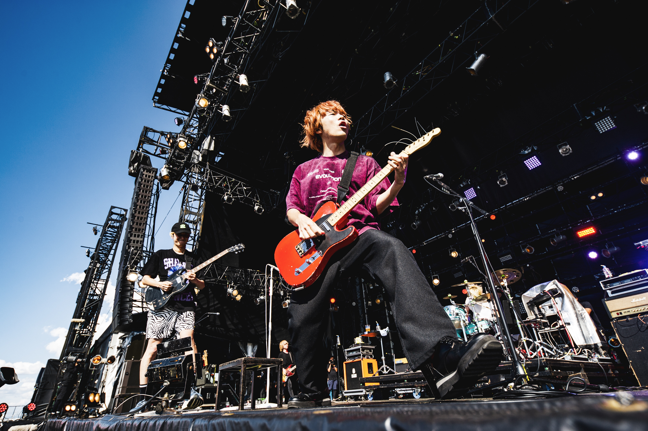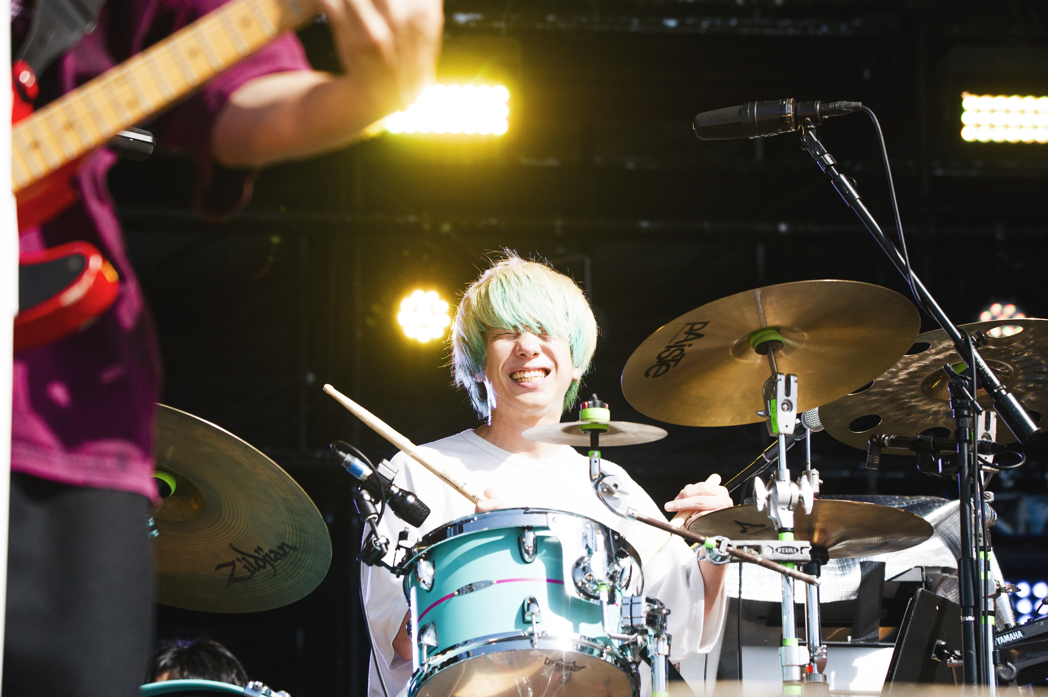 後半、「Love me」、「桜花爛漫」で存分にグッドメロディを響かせ、ラストは鉄板のお祭りアンセム「MONSTER DANCE」。寺中は「皆の声も楽しんでる表情もこちらにたくさん届いております! ただ、あとひとつ! こんなに暑い中申し訳ないんだけどさ、体を動かして最高の表情でラスト僕らと一緒にダンスしませんか!」と煽り、観客は待ってましたと言わんばかりに大騒ぎ。さらに首藤が「大阪、好きにやれー!」と叫ぶと後方の人もどんどん加わり、巨大なサークルが出現。素晴らしい一体感で完全に観客を解放したKEYTALKだった。