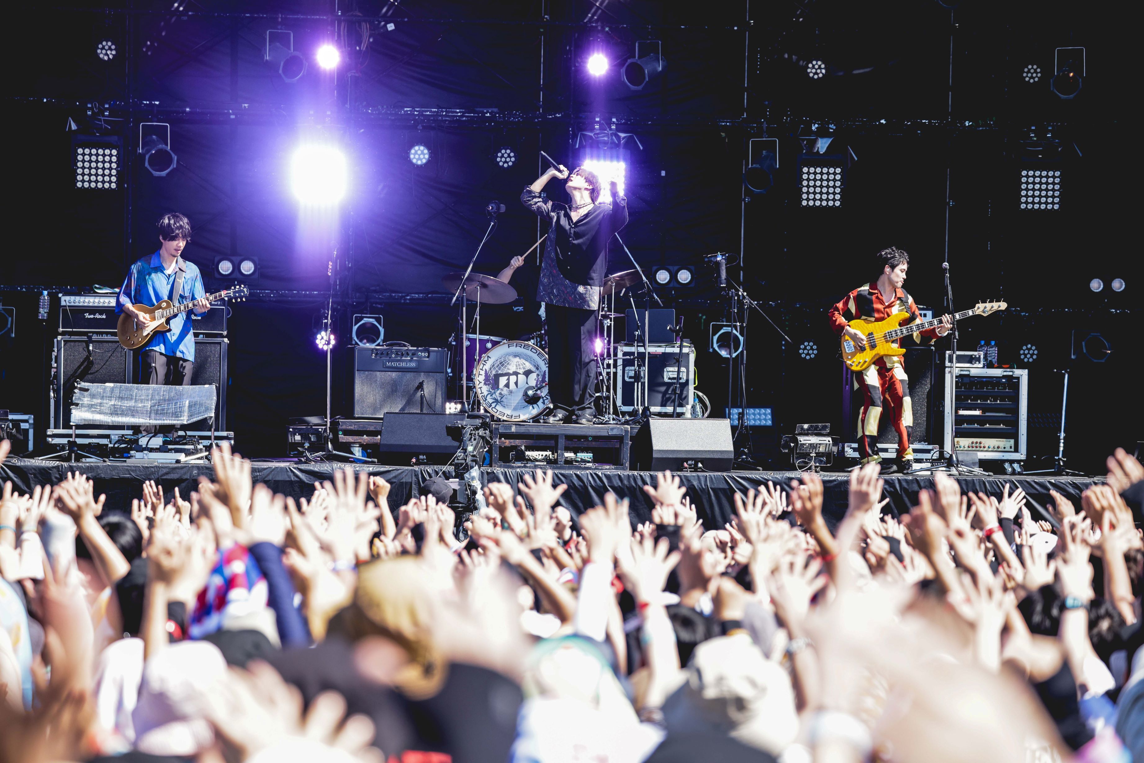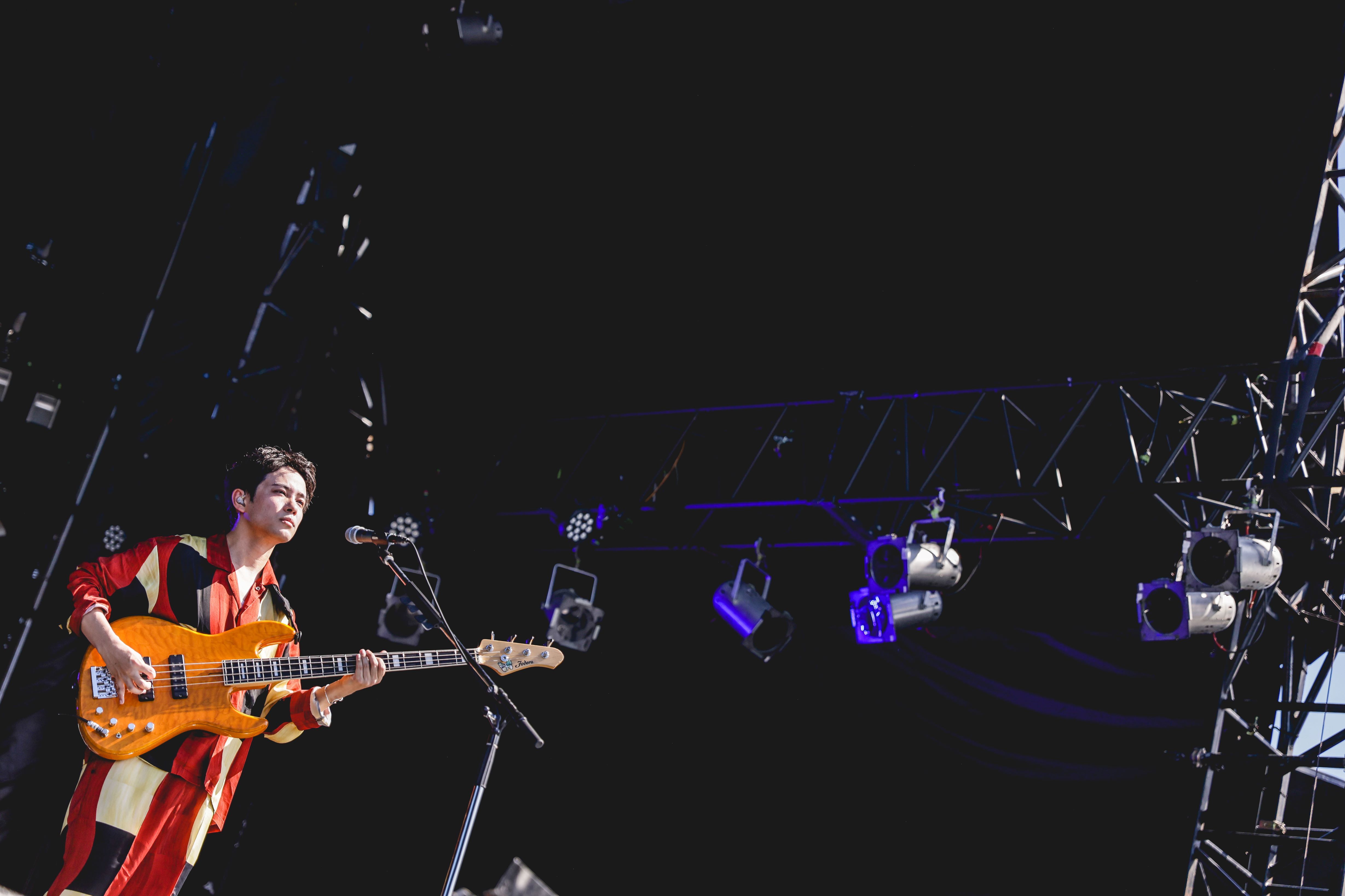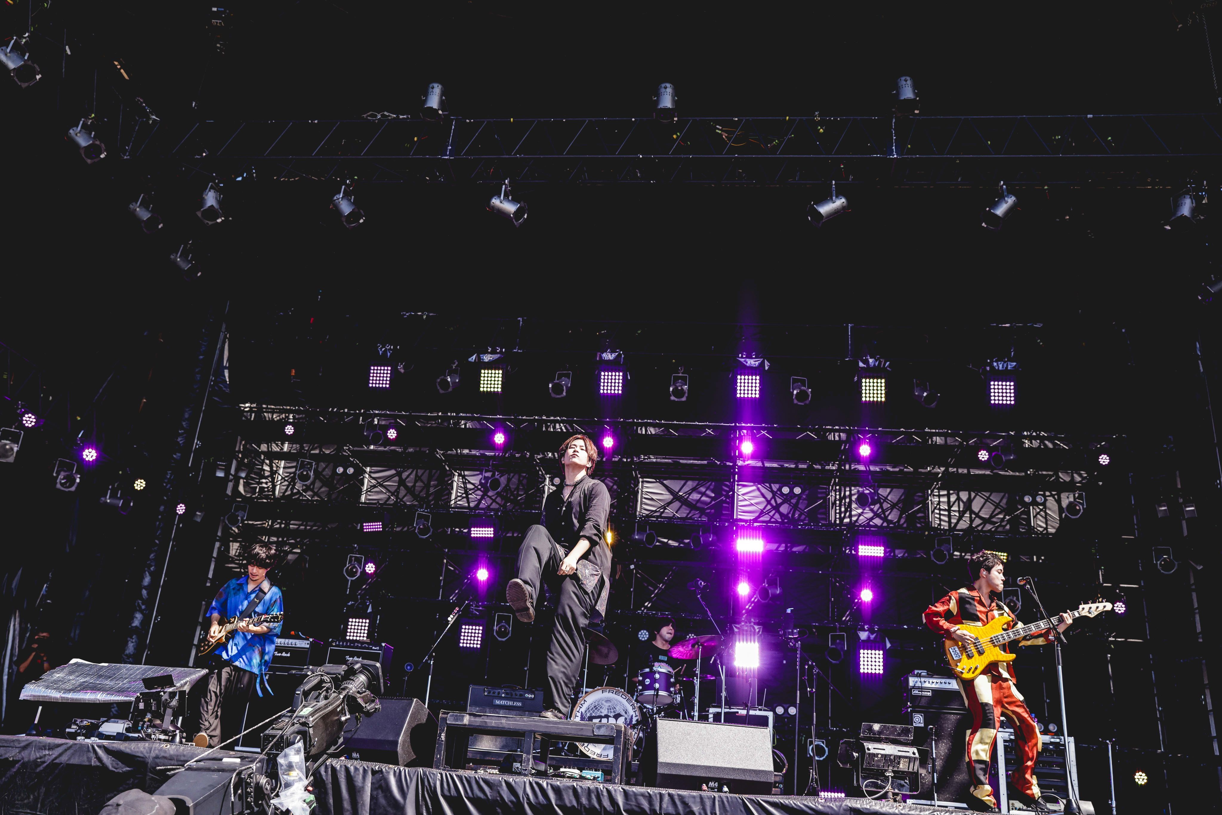 さらに「BPMが速くて盛り上がることだけが、音楽の全てではないと思ってます。与えられた35分の中で、自分たちがどういう道を辿ってきて、どういう選択をしてきてこの音楽に辿り着いたかを見せられる時間やと思っています」と投げかけ、ガラッとムードは変わり三原康司(Ba)のベースと高橋武(Dr)のリズムで始まった「ナイトステップ」。そのままインディーズ時代の楽曲「プロレスごっこのフラフープ」を披露。バンドの根幹にあるルーツをこれでもかと感じられる時間に酔いしれながら、オーディエンスひとりひとりが好きなようにステップを踏んで踊る光景はとても印象的だった。