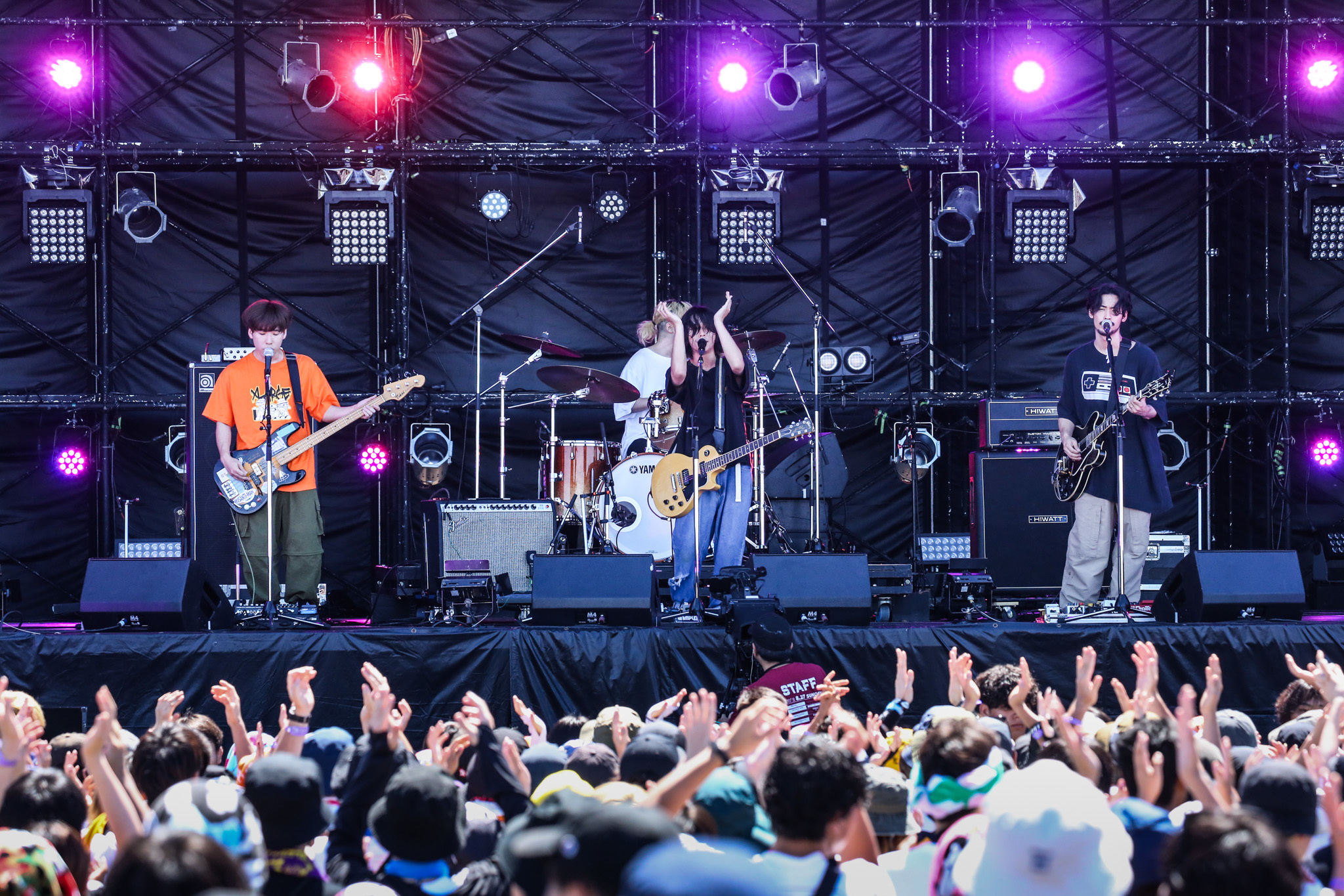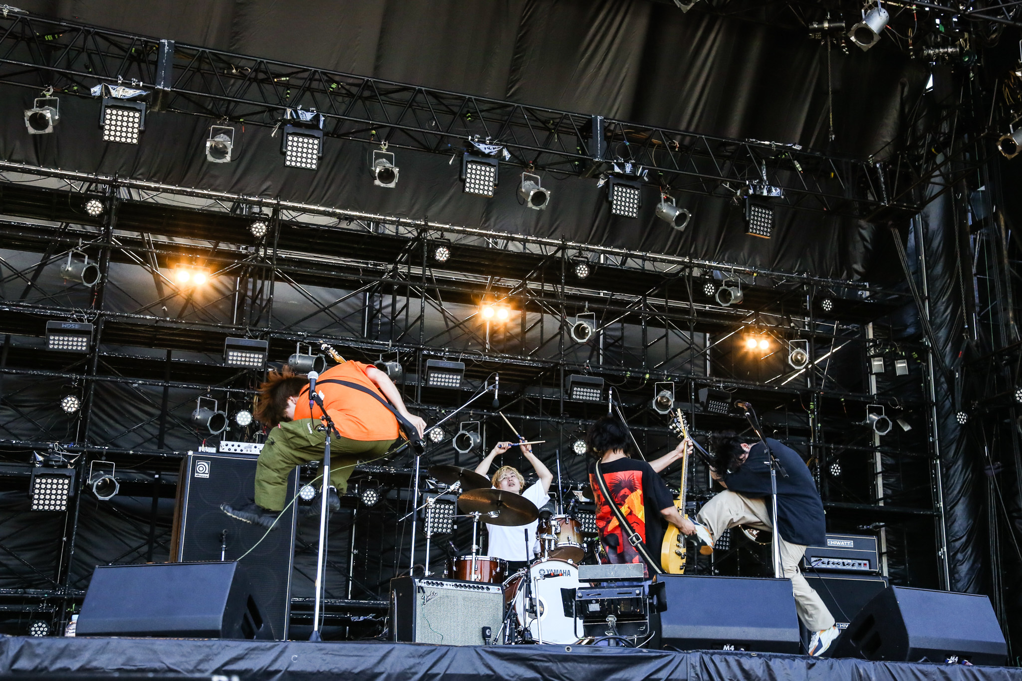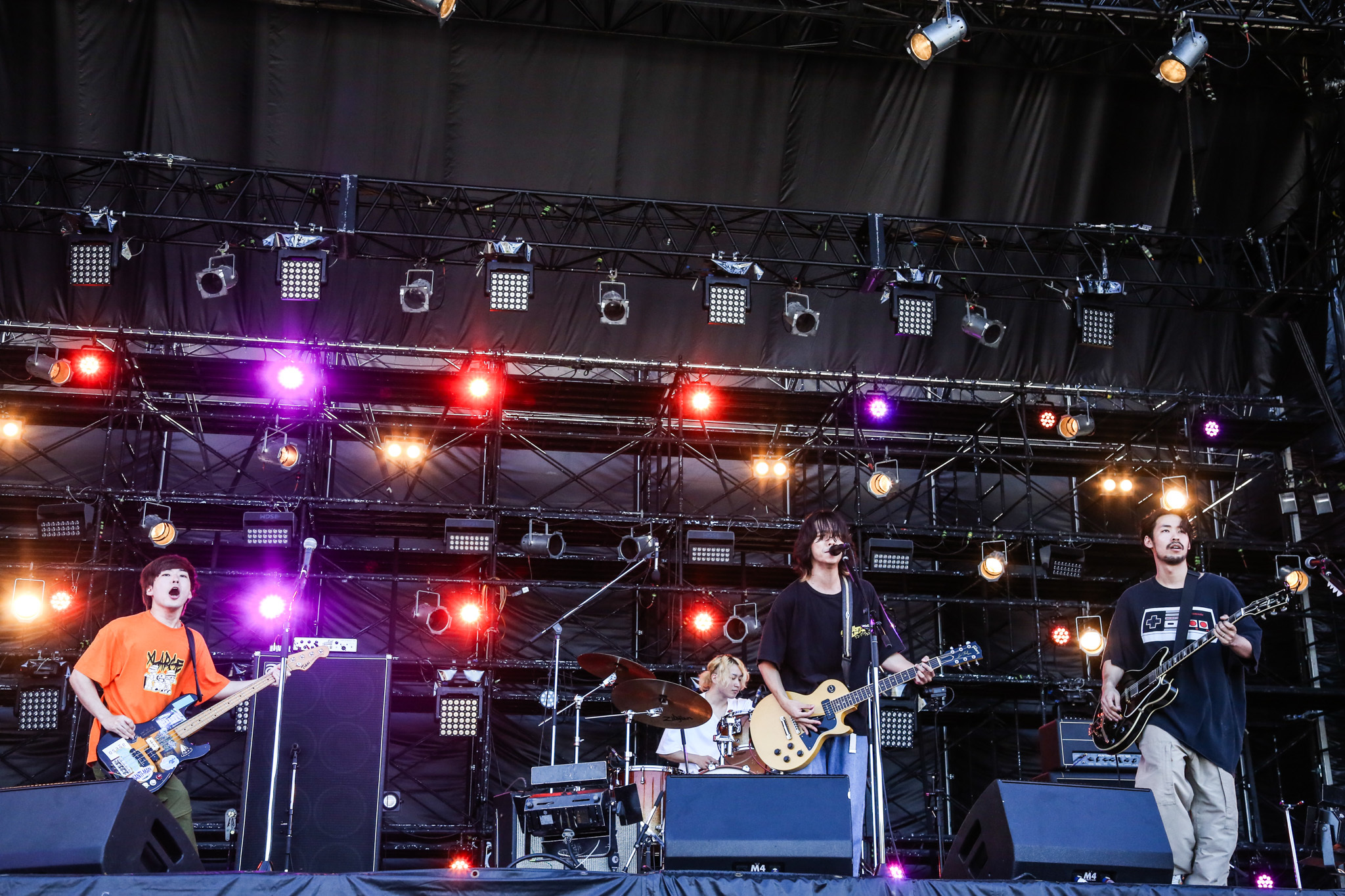 「東京の江古田っつー小さい街からこんな大きなステージにやってきました!」と意気込む仲川慎之介(Vo.Gt)。衝動のままにまくしたてるかのような「七月七日通り」を皮切りに、快走するビートにたくさんの拳が上がった「銀河鉄道の夜明け」を奏でたときには、すっかりそのブライトなメロディが身体中を駆け巡る感覚に。心の柔らかな場所にまで届くリリカルな「ムーンサルト」を聴いていると、眼前で鳴らされているのは、暗闇の中での道標になる音楽だと気付く。