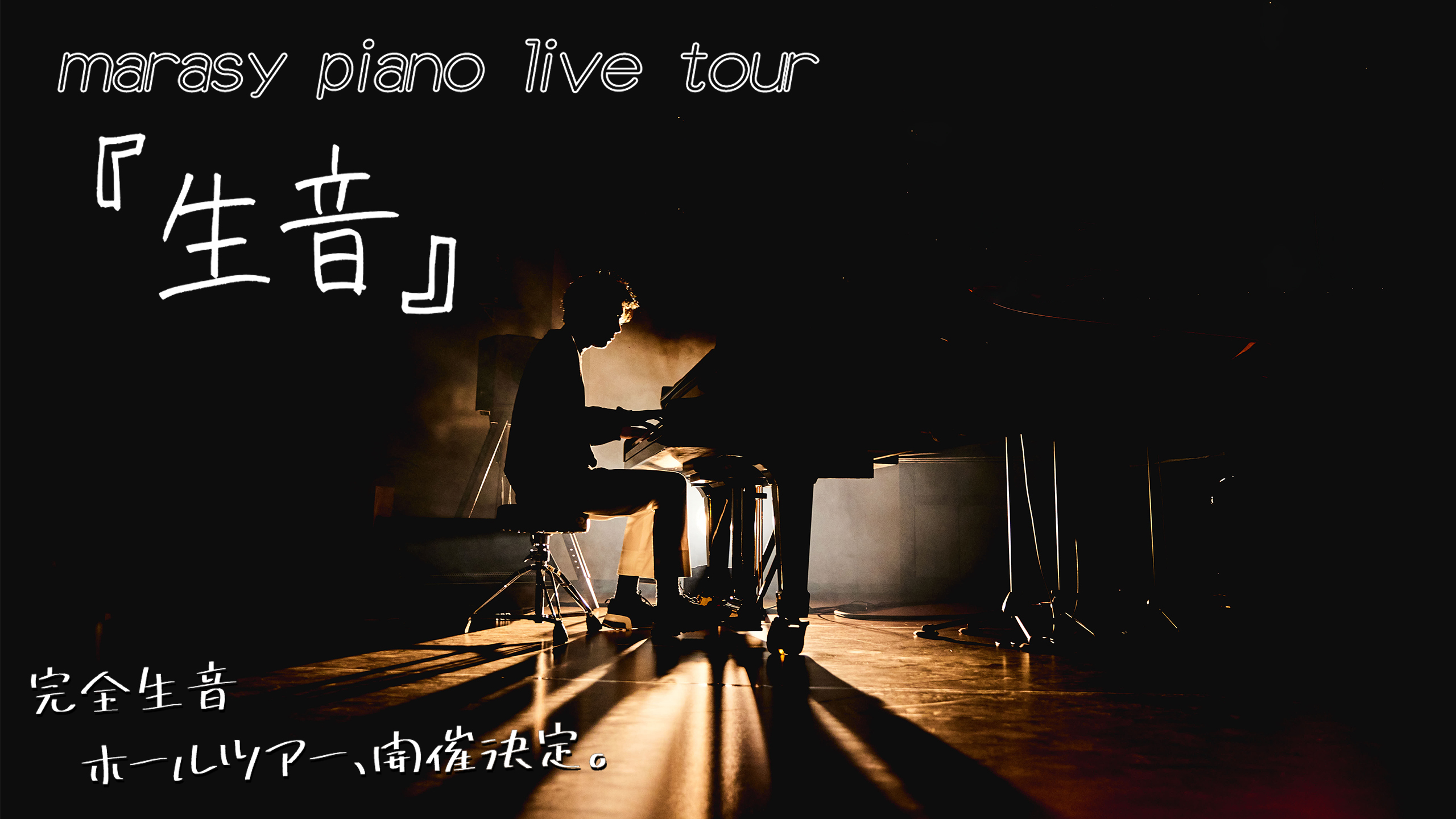 ピアニスト・まらしぃが8月26日(土)にYouTube生配信で、スピーカーを使用しないグランドピアノのみの完全生音コンサート『marasy piano live tour『生音』』の開催を発表した。11月3日(金・祝)愛知県芸術劇場コンサートホールを皮切りに全国9箇所で行われる。