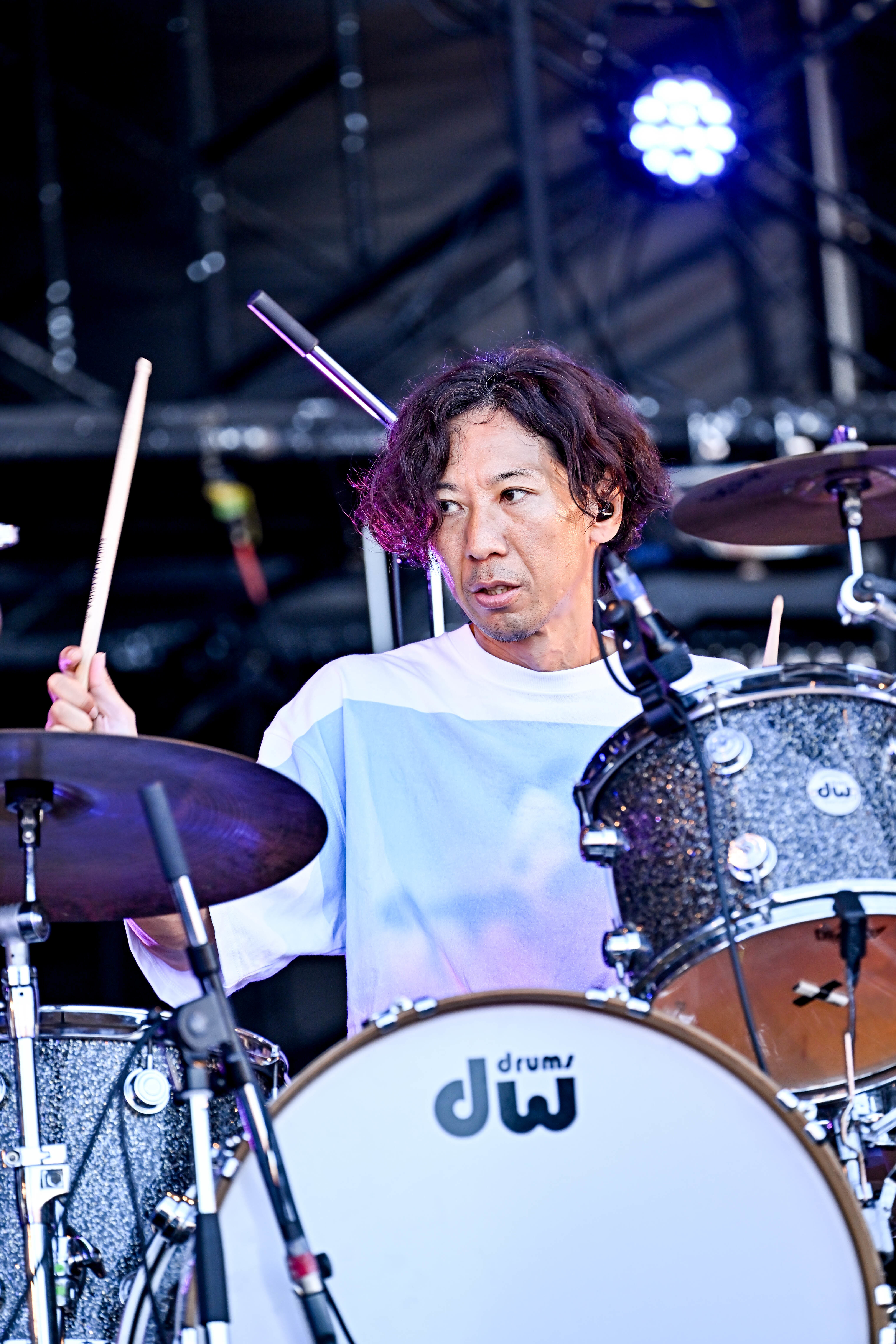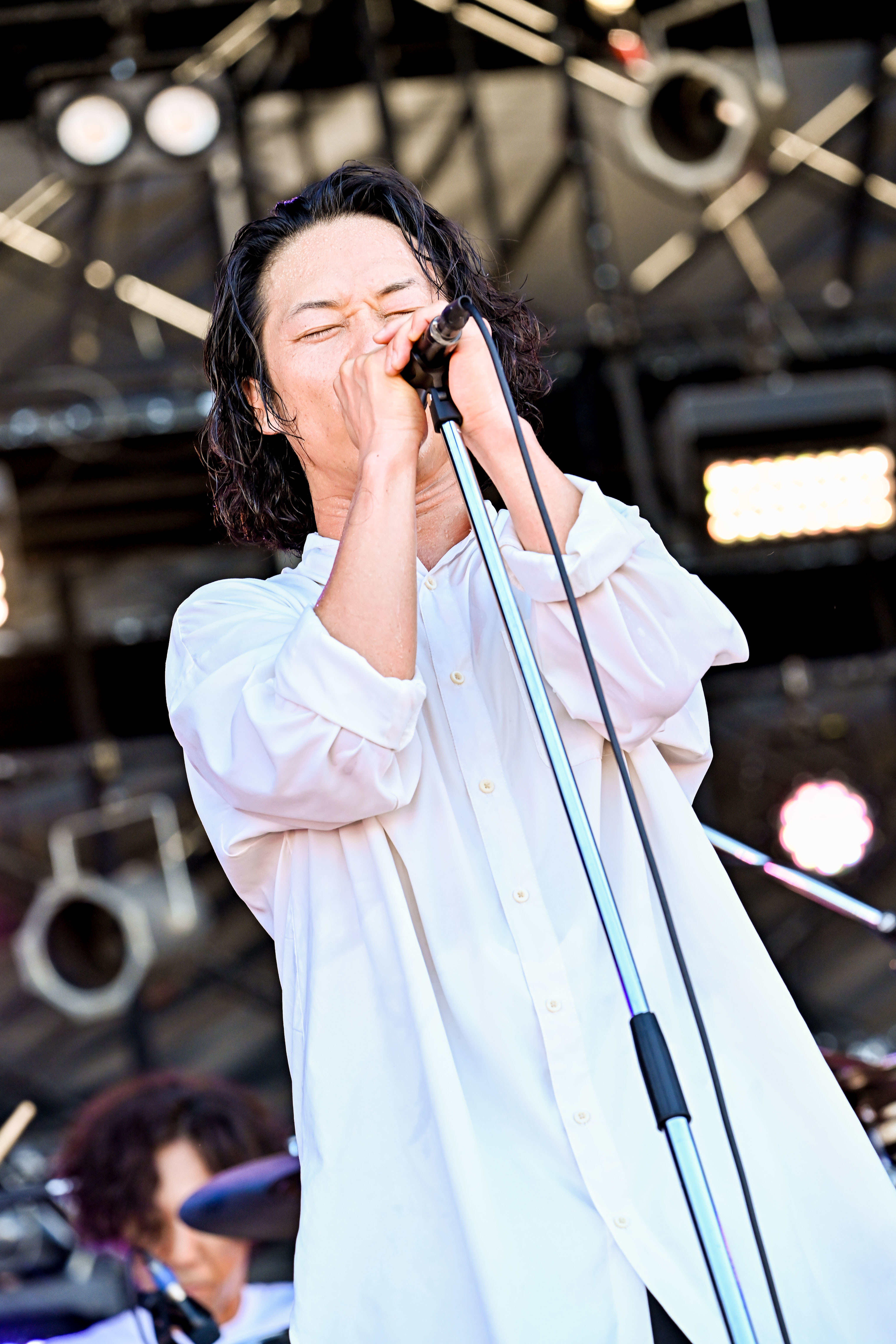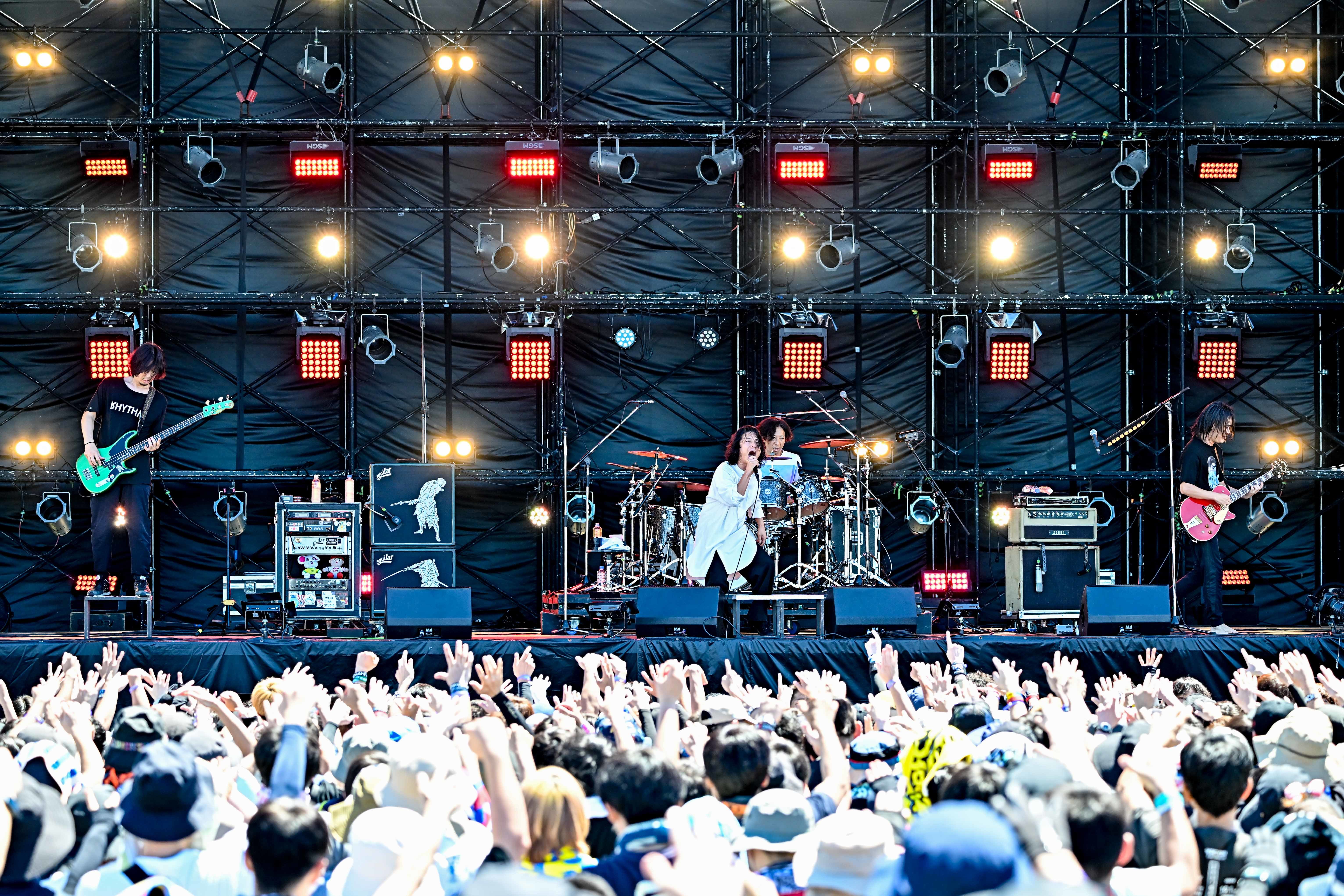 「5年ぶりに出演することができました。『RUSH BALL』の25周年と俺たちの25周年、そして今日ここで皆さんと出会えた祝福を込めて、全力で演奏します!」と松田晋二(Dr)が高らかに宣言したのち、「コワレモノ」を投下。躍動するラップパートと極太のファンク・アンサンブルでひときわチャレンジングな姿勢を見せつけていく。さらに、スリリングかつ骨太な「罠」、イントロだけで大歓喜を呼んだライブアンセム「コバルトブルー」を惜しみなく放出。一声一音入魂、曲を重ねるごとにゾーンに入っていくさまはあまりにも壮絶で美しい。一方、オーディエンスも高速クラップでレスポンスする「太陽の花」ではまばゆい希望を音に託し、クライマックス感を幾重にも増幅。彼らのステージは、どこを切ってもおかしくないほどピークを越え続けてくる。