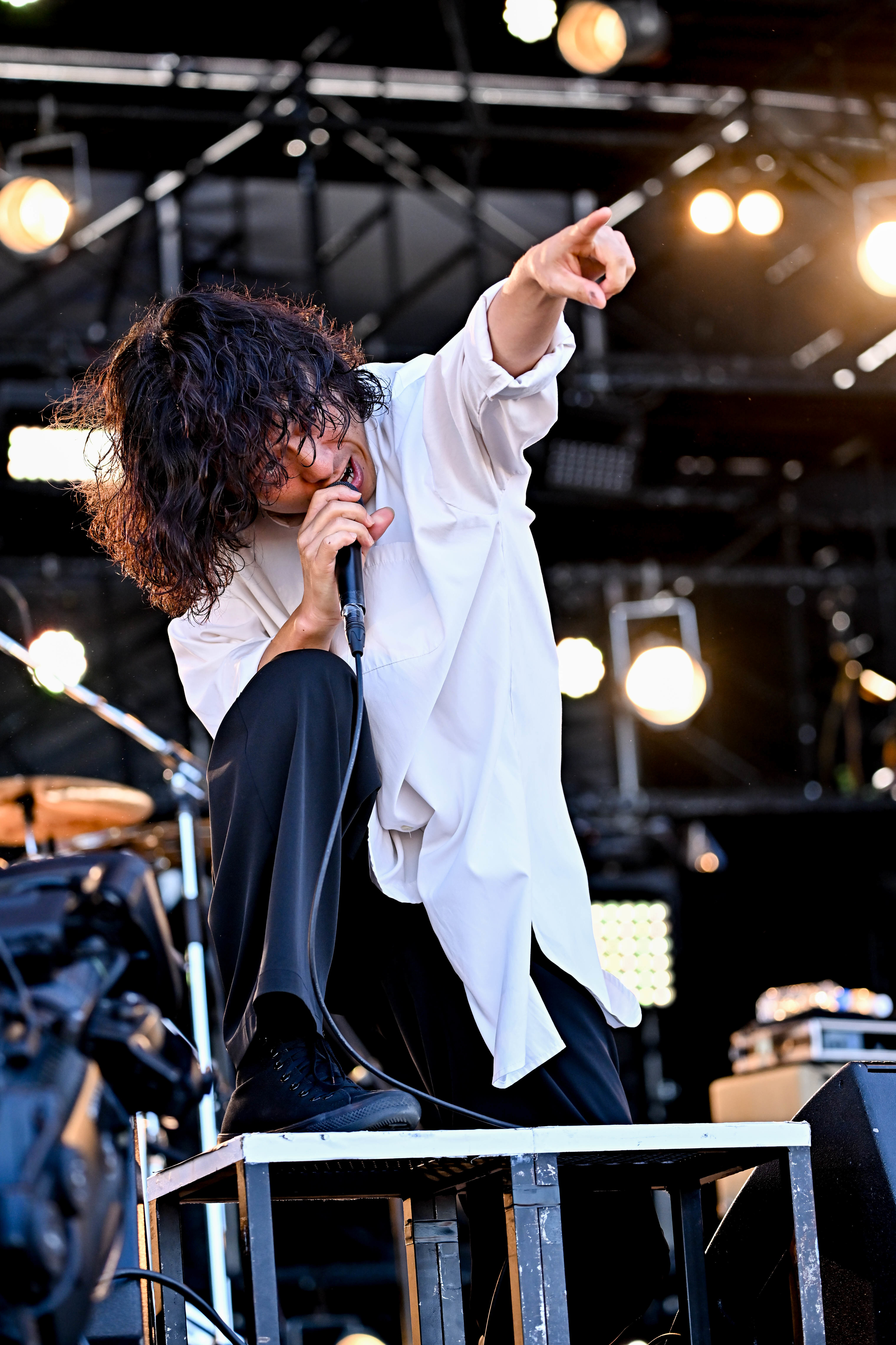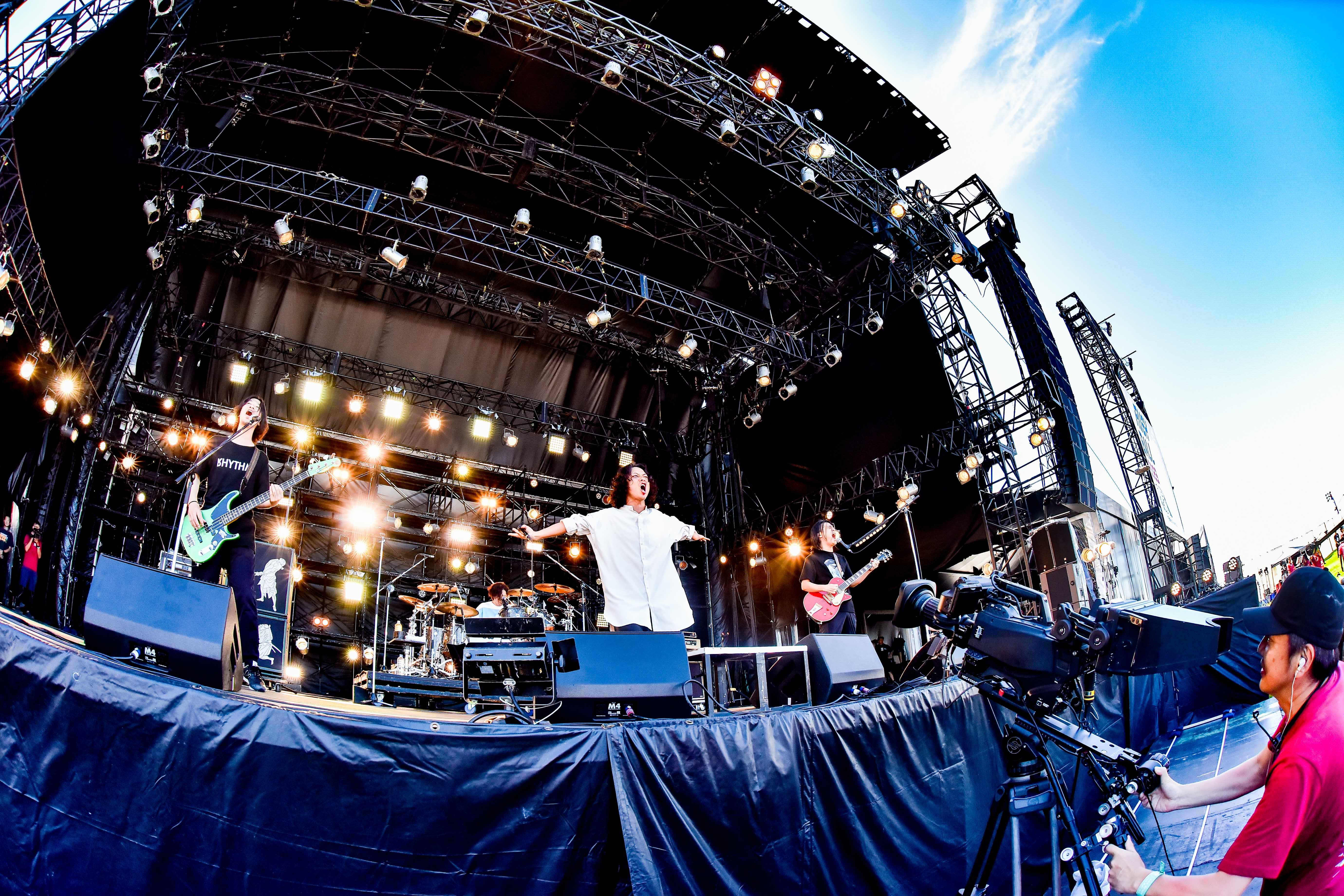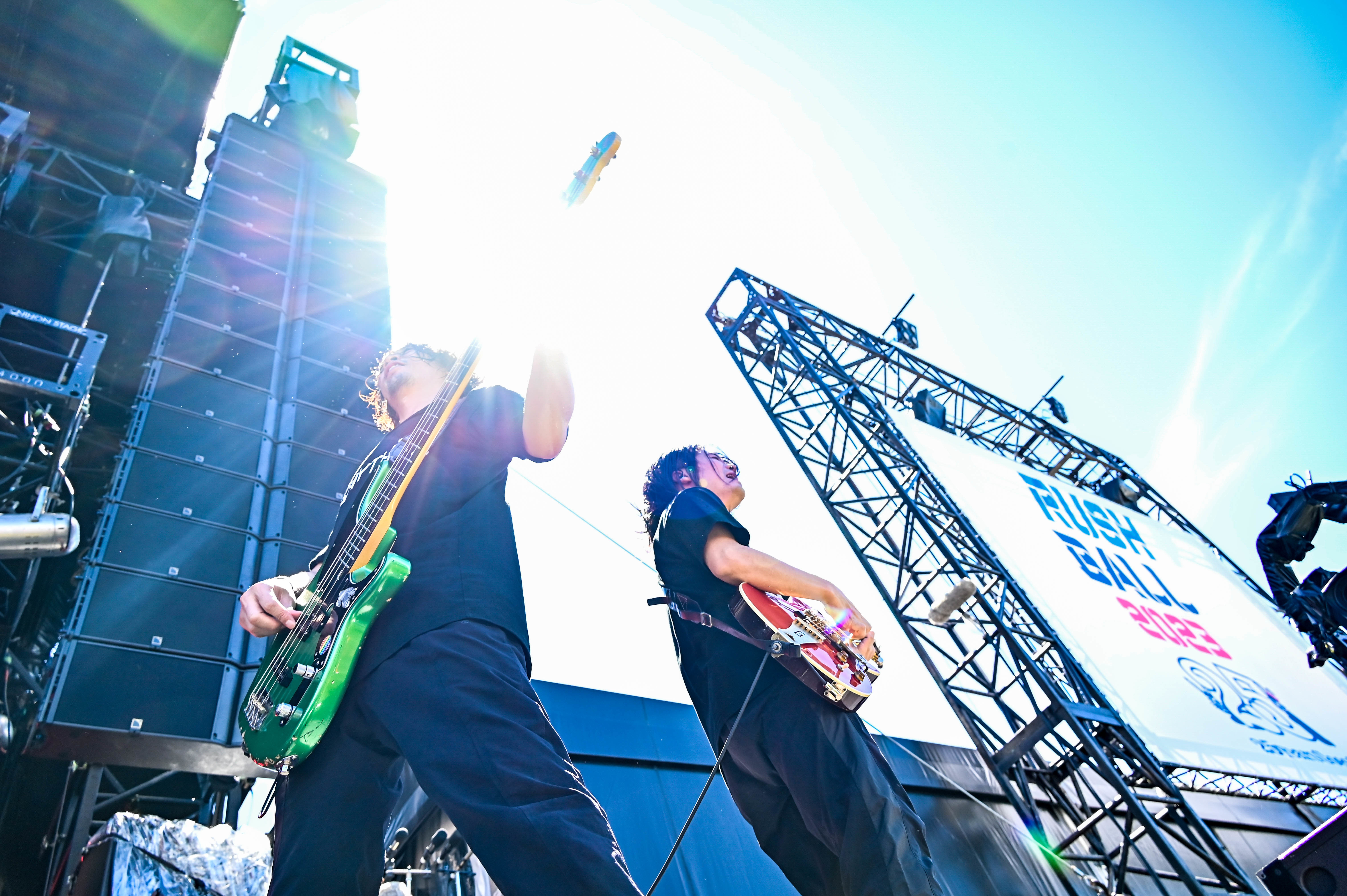 『RUSH BALL』のプロデューサー・力竹総明、FM802のDJ・大抜卓人がステージに登壇し「笑顔で1日を過ごせれば」と語る中、今年25周年となる『RUSH BALL』と「同い年」であるTHE BACK HORNの名を力強くコール! 2004年、2018年以来の出演となる彼らは、初っぱなから特大のシンガロングを生み出した「刃」で、一気に場を掌握。フロアからの大歓声にも、両手をめいっぱい広げて受け止めようとする山田将司(Vo)は気高いまでの存在感で、泉大津フェニックスを一面彼らの色に塗り替えていく。さらにギアを上げての「希望を鳴らせ」では、天まで突き抜けるような歌声で、いつまでもみずみずしい初期衝動をもたらしていく。