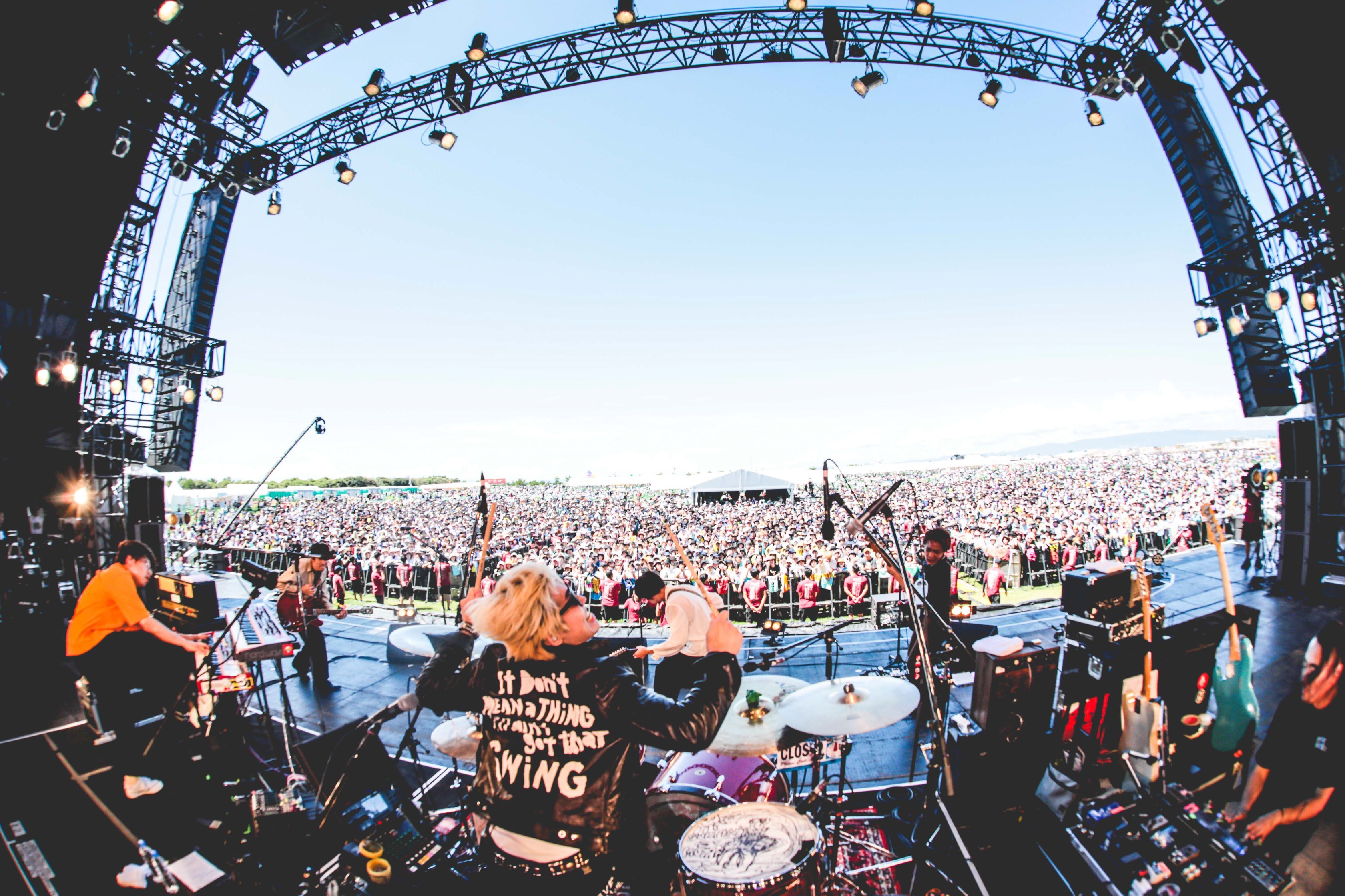 「25周年おめでとう! エブリバデイのエネルギーでこのお祭りを祝おうぜ。今日はもう『RUSH BALL』に全部プレゼントして最高の祭りにしよう!」と柳沢進太郎(Gt)がゴキゲンに『RUSH BALL』コールを捧げ、「カウンターアクション」へ。牧と柳沢が1本のマイクを分け合い歌うなど見せ場をつくりつつ、ハイエナジーなステージングを展開していく。
