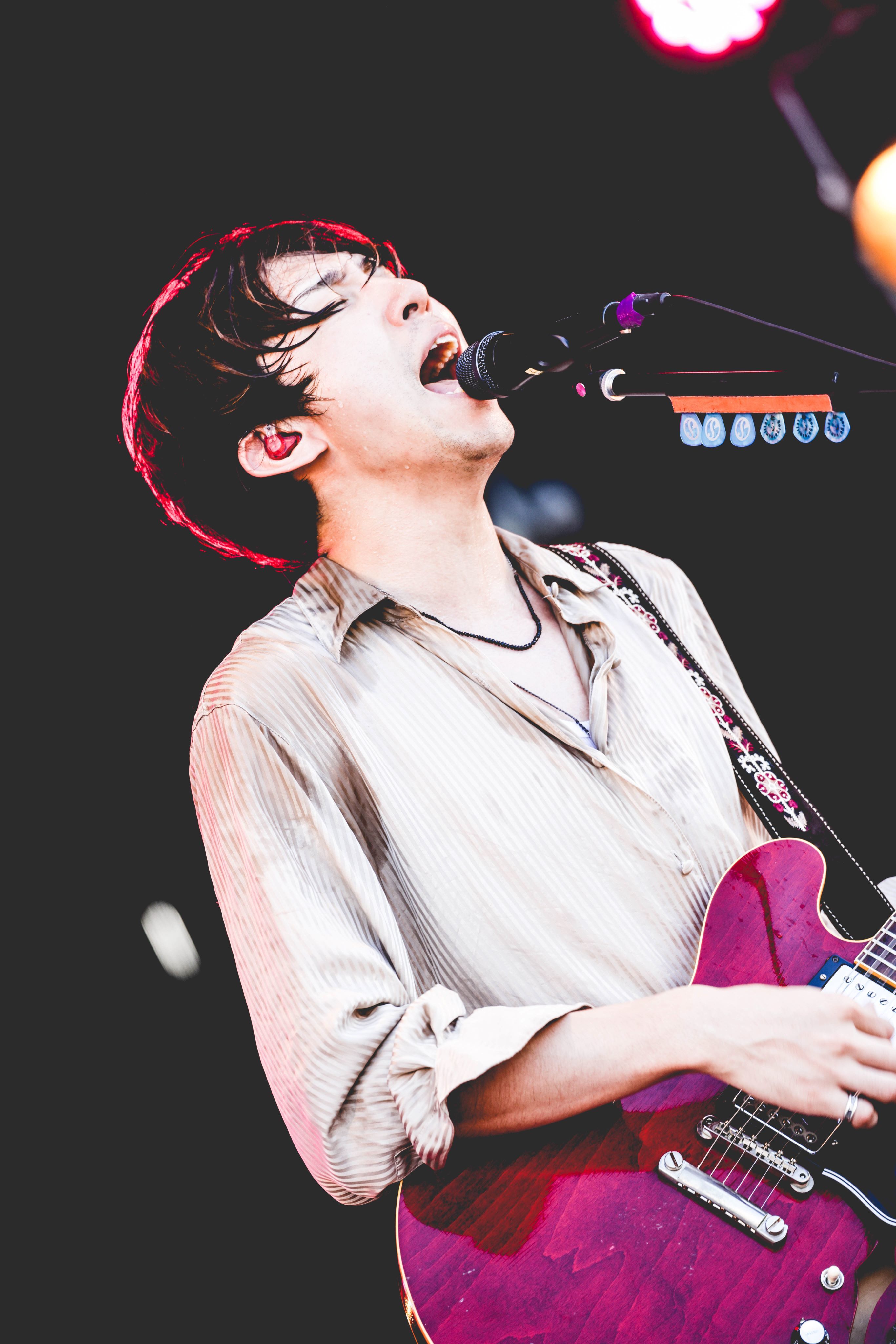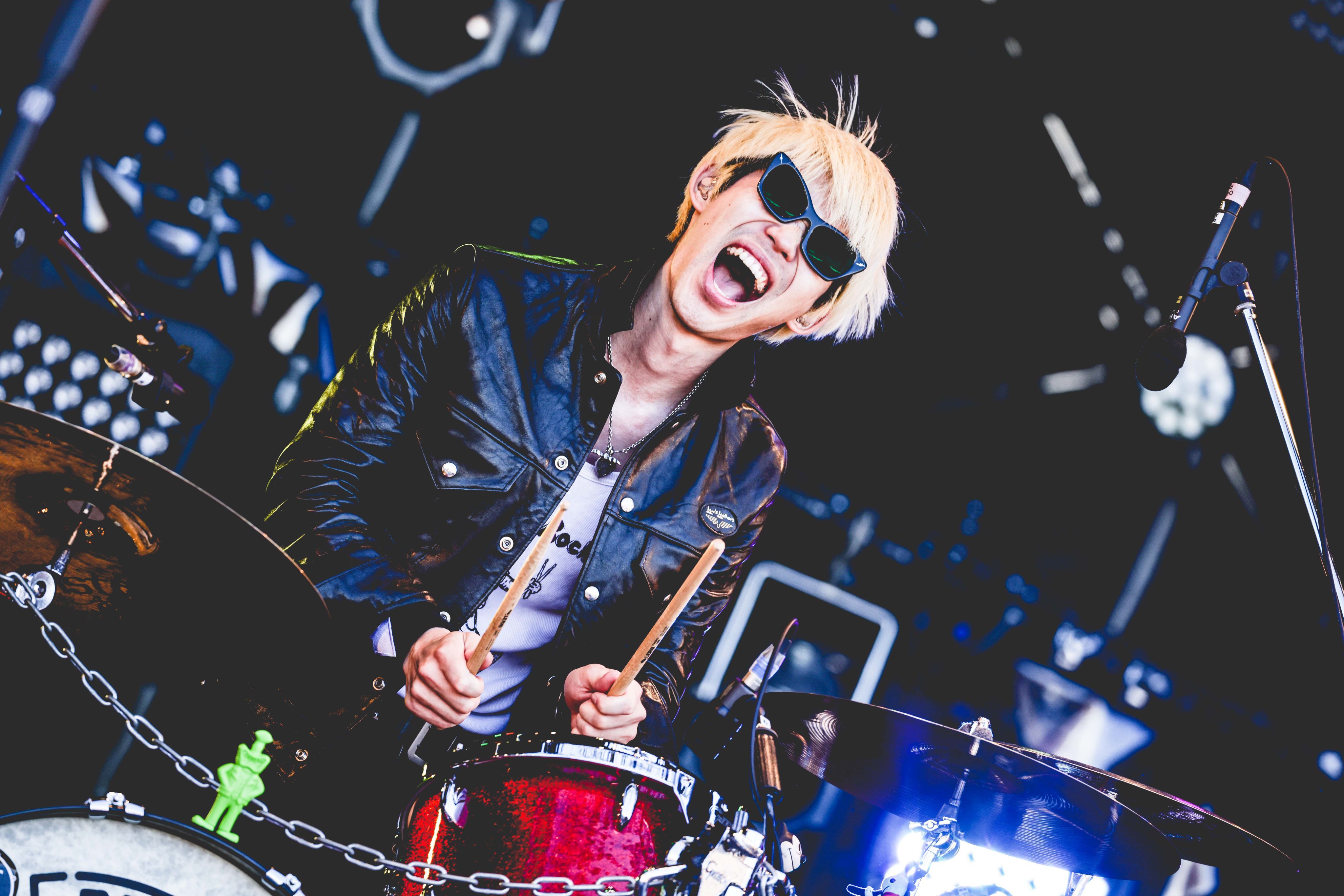 リハの時点からすでに本編のような沸きっぷりで、メンバーをホーム感たっぷりに迎える泉大津フェニックス。「やるか『RUSH BALL』! ロックンロールの魔法にかかってくれ!」と牧達弥(Vo.Gt)が導いたのは「マジック」だ。昨晩の雨でちょっぴり過ごしやすい空気の中、底抜けにピースフルなアンサンブルが野外の場にフィット。ジェットセイヤ(Dr)も初っぱなからフルスロットルで、軽快なドラミングで場を鼓舞する。