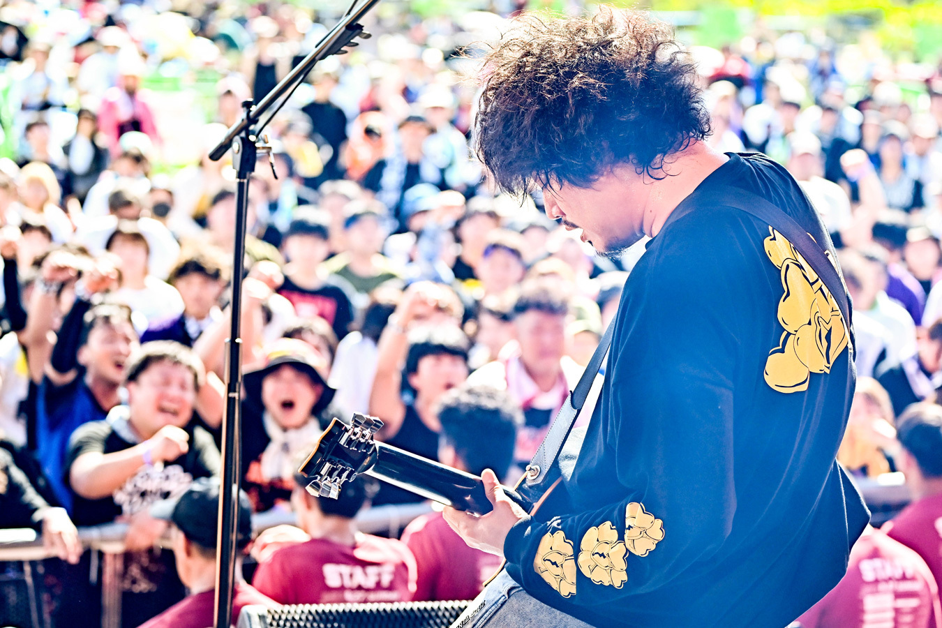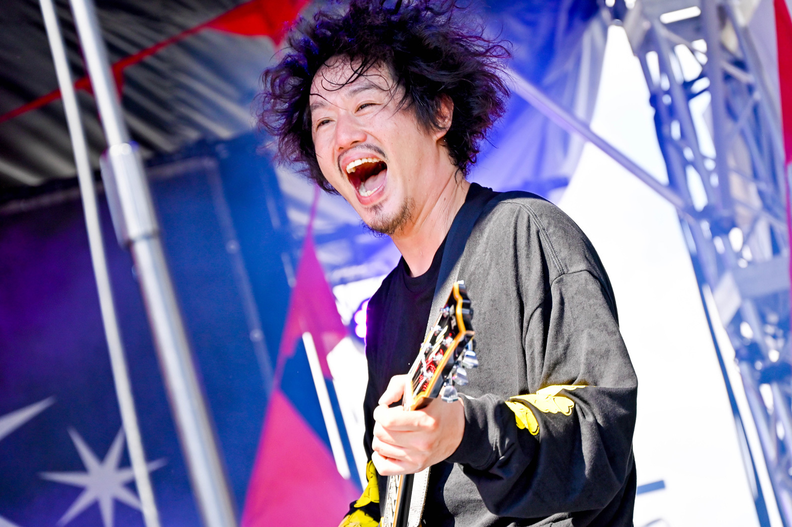 また、さわやかなハーモニーとメロディックなギターで彩度を高める「MEMENTO MORI」に続いて「MORATRIUM」では曲後に歓声が起こり、笠原も「最高!」の声。加えて久々の『RUSH BALL』出演に、「いろいろ経て戻ってくるこのステージ、俺らにとって特別です!」と口にし、次は敦賀がボーカルを取るイノセントな新曲「MAGIC TIME」へ。そのみずみずしい旋律で拳を突き上げさせたら、今度は全員でカウントを取って「『RUSH BALL』25周年にささげます」(笠原)と、サマーチューン「NEVER ENDING STORY」などでせつなく心地よく。笠原と敦賀は並んで天を仰ぎプレイし、さらに前方には人が密集。