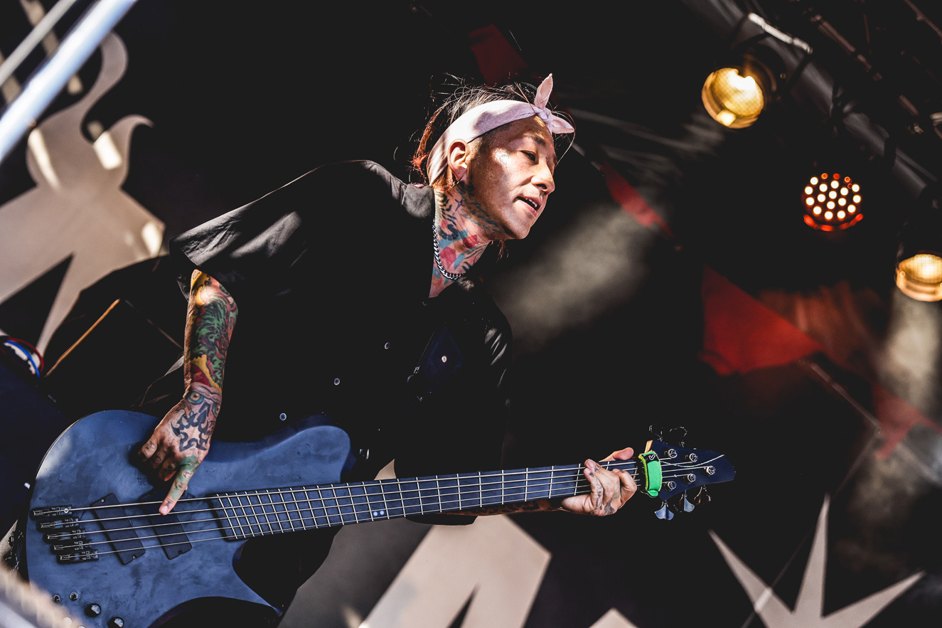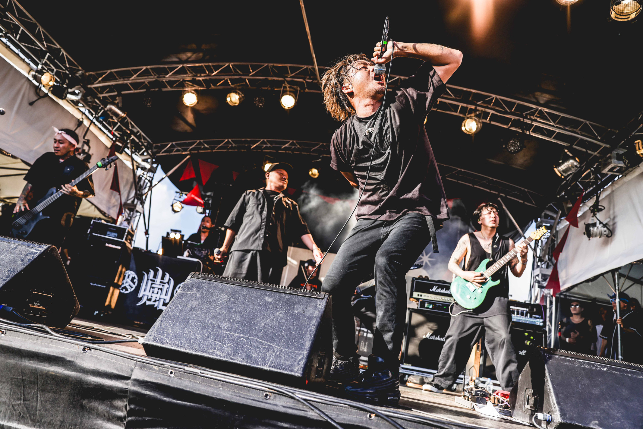 そして「いい景色をありがとな!」と口にし、そこからシームレスで「Rock'n Roll Monster」へとつなげれば、今度はギターがリードし、ラップと重なりヘビーに展開。総ハンズアップも上下させ、最後は20世紀に生まれた代表曲「BOXER'S ROAD」で襲い掛かる。重厚なサウンド、複雑なリリック、軽快なパンチラインを繰り出し、三度の大地を揺らすバウンド。体の芯から熱くするナンバーを記憶に焼きつけ、ラストはメンバーそろってのジャンプで豪快に飾った。