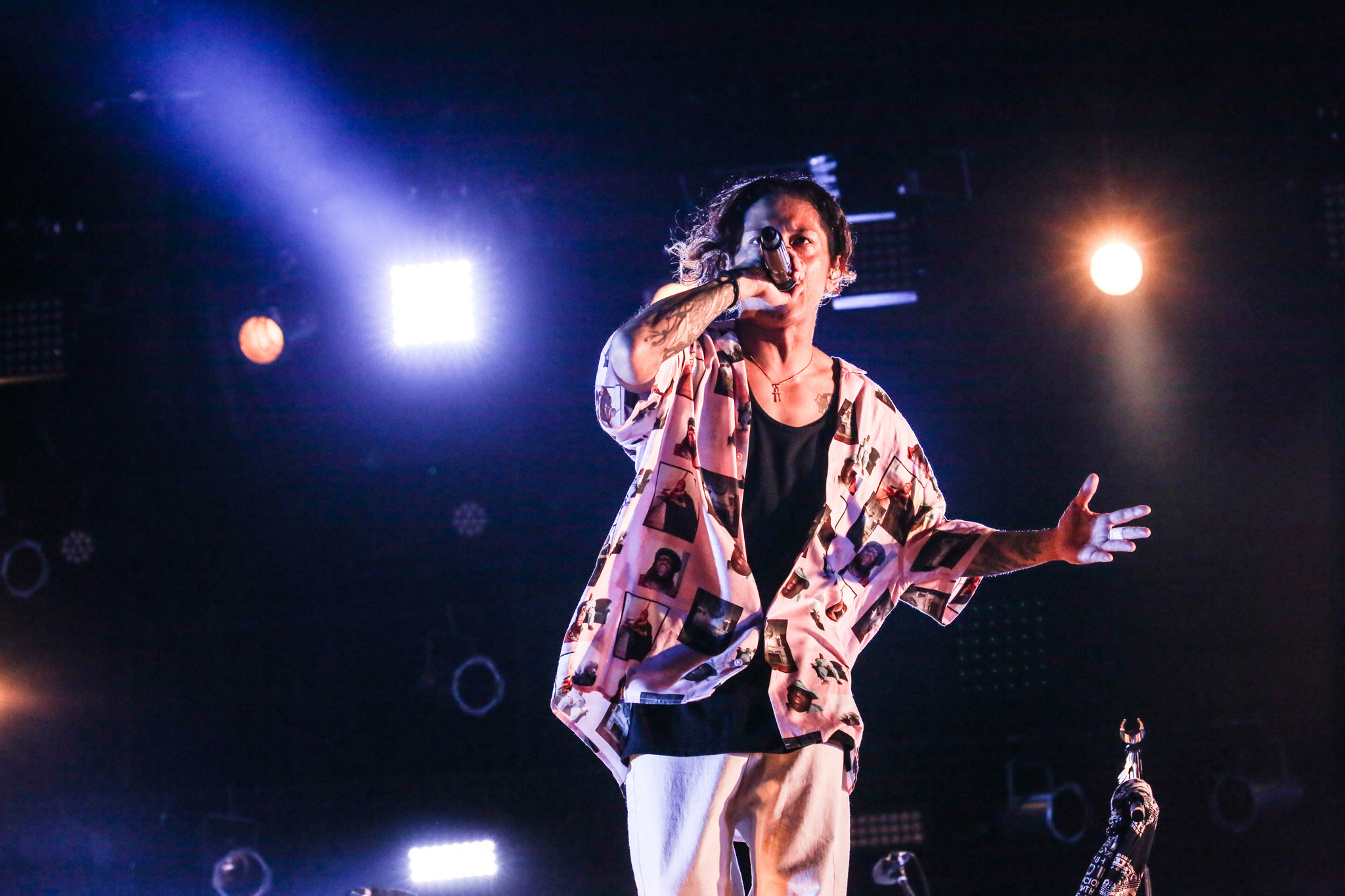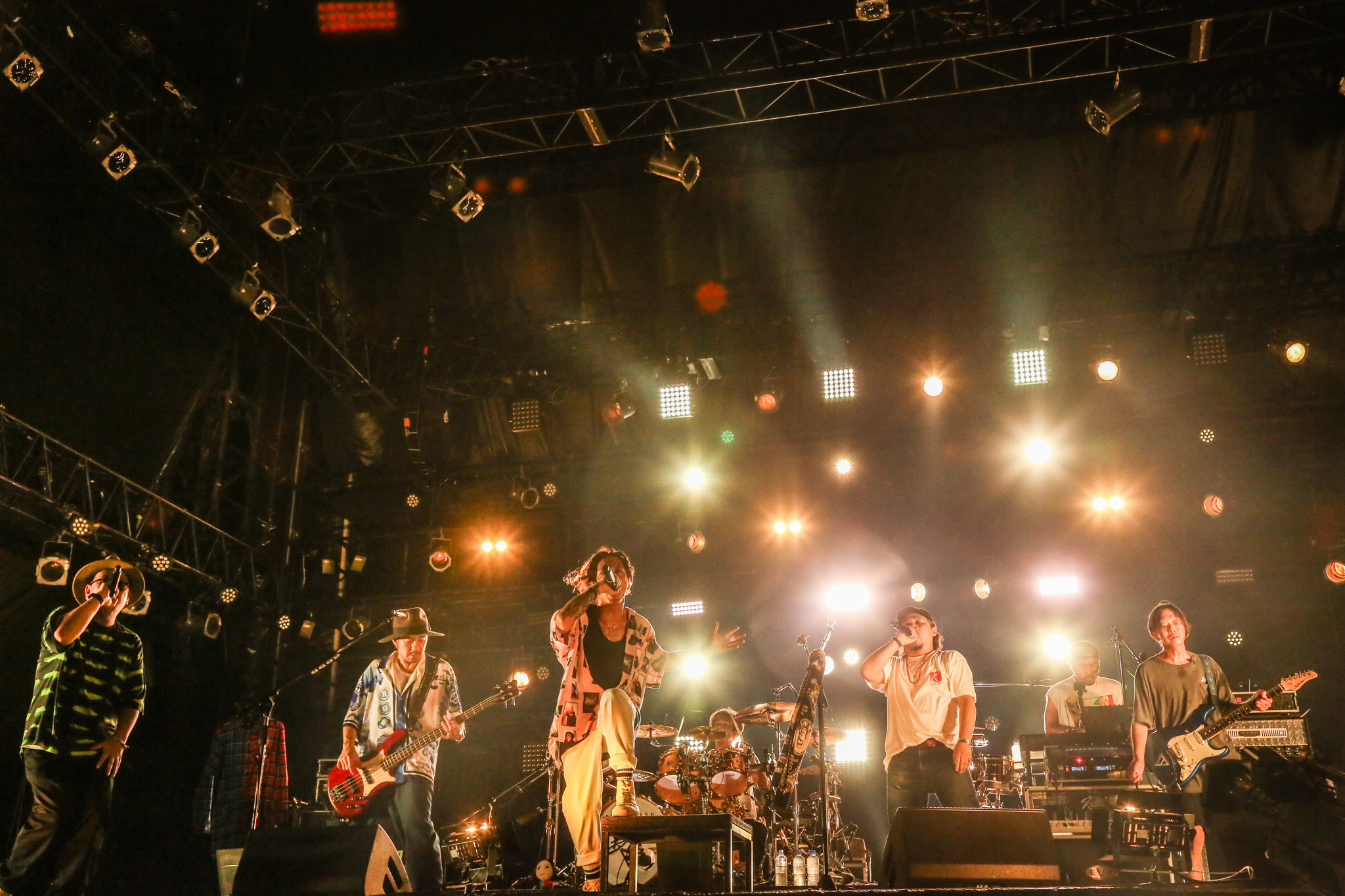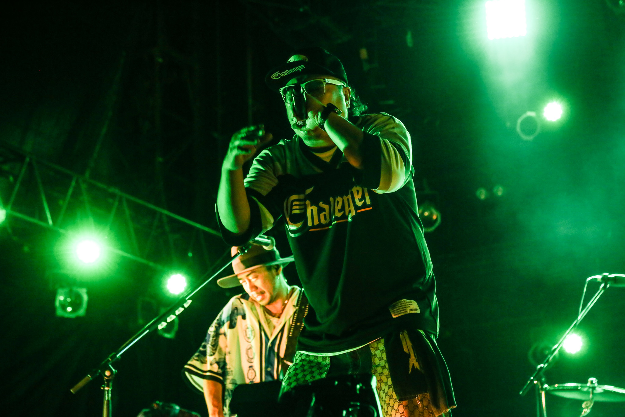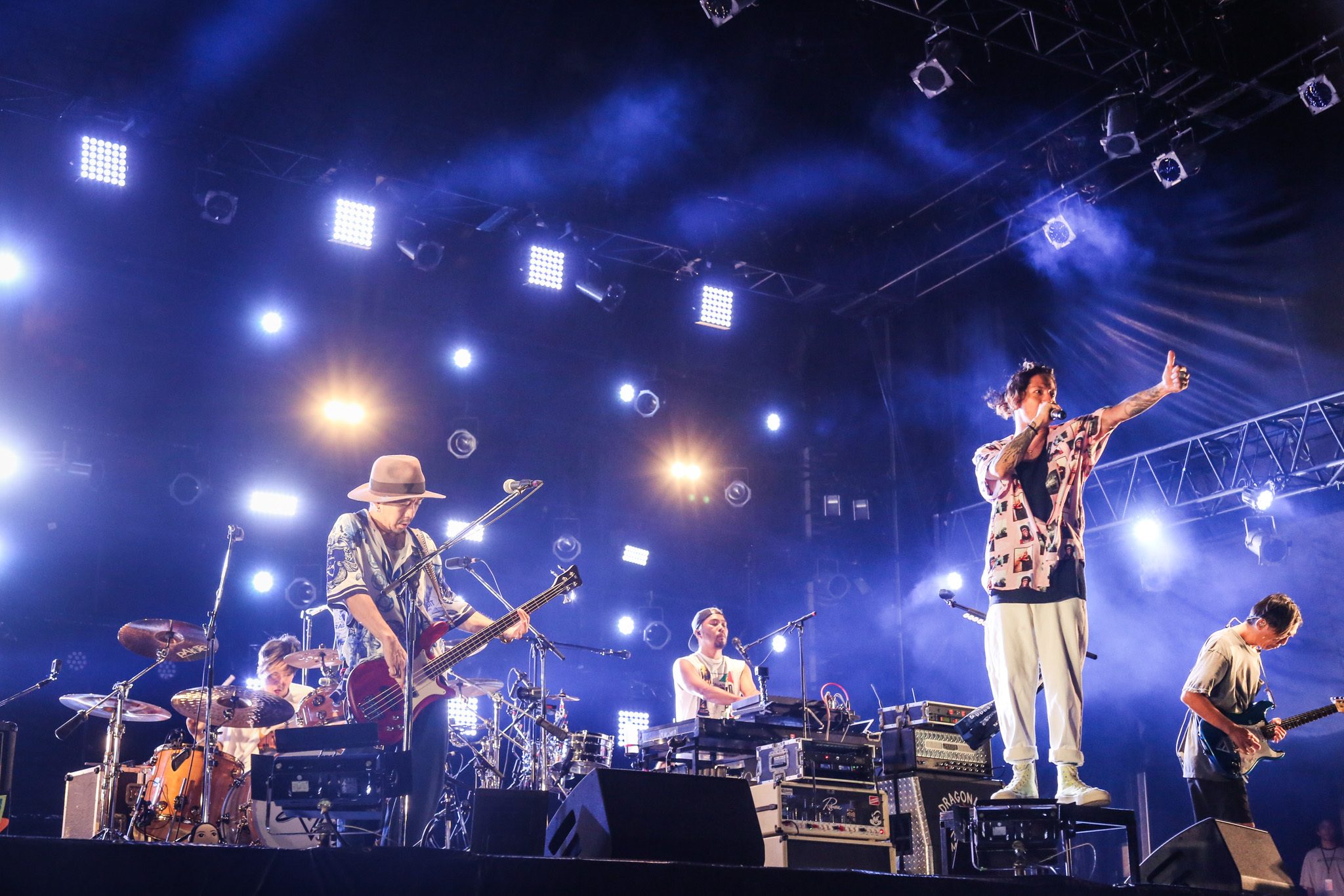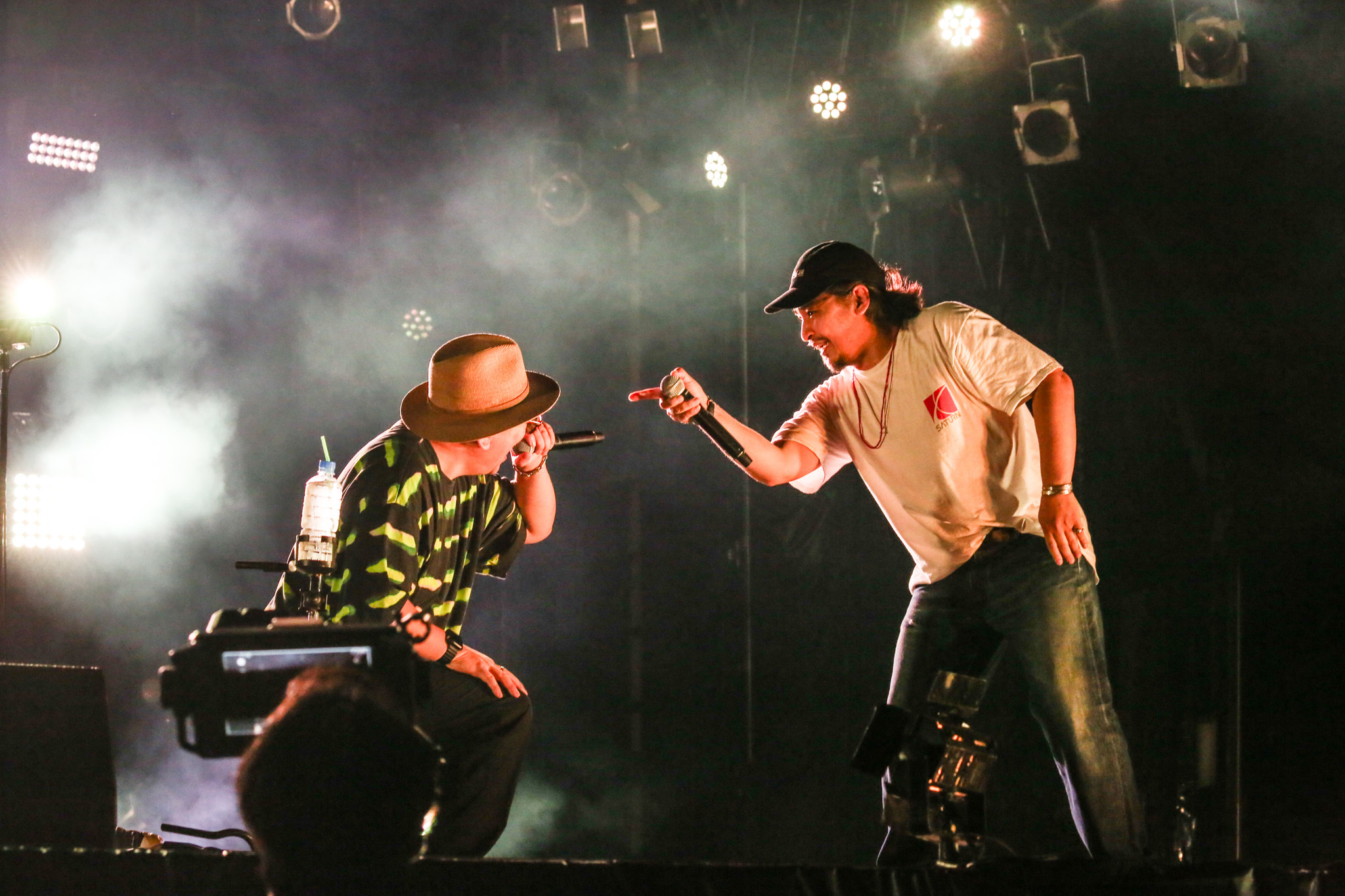 さらに「New Era」で新たな時代の到来を歌った後は、なんと、スケボーキングのボーカル、SHIGEOとSHUNを招き、「Episode 4」を披露。フィーチャリングやコラボの楽しさを日本のオーバーグラウンドに知らしめた面々の登場に、場内はたちまちパーティー気分に包まれていく。さらに下手のサイドステージでベースを鳴らすT$UYO$HIの姿も目撃できた「Fantasista」を投下し、オーディエンスの盛り上がりに追い討ちをかける。