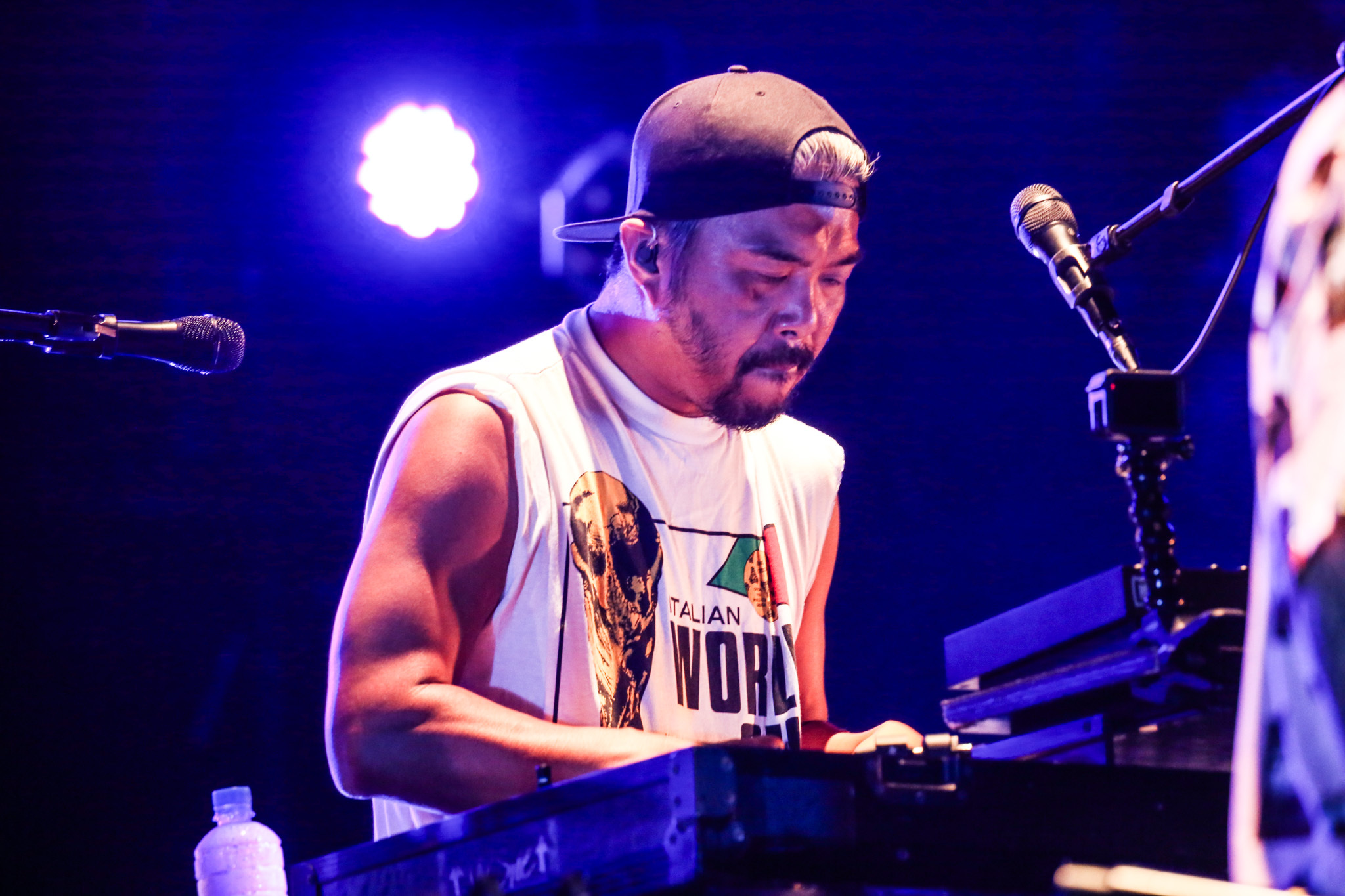 「25年前から、Dragon Ashをずっと出演させてくれたGREENSの横井さんって人がこのフェスを作りました。外国のフェスみたいに、いろんな音楽を酒飲みながら観れるフェスが作りたいって言ってた横井さんが亡くなって。力竹っていう、横井さんのアシスタントをしてたショートパンツの頼りないやつがいて、今はその力竹がこのフェスをやってます。拍手!」