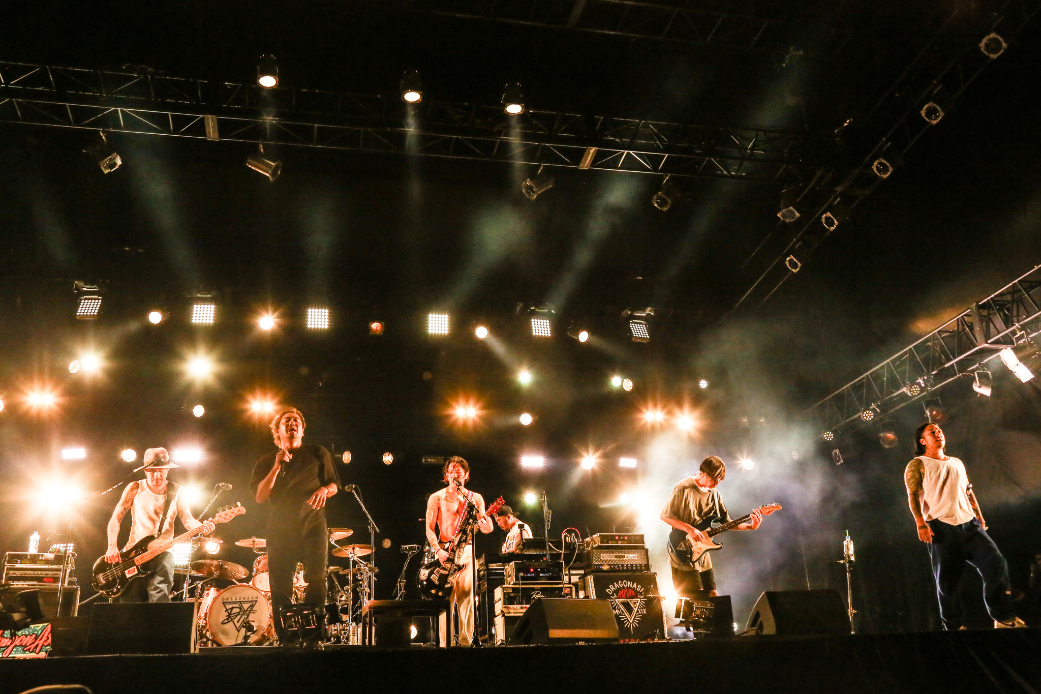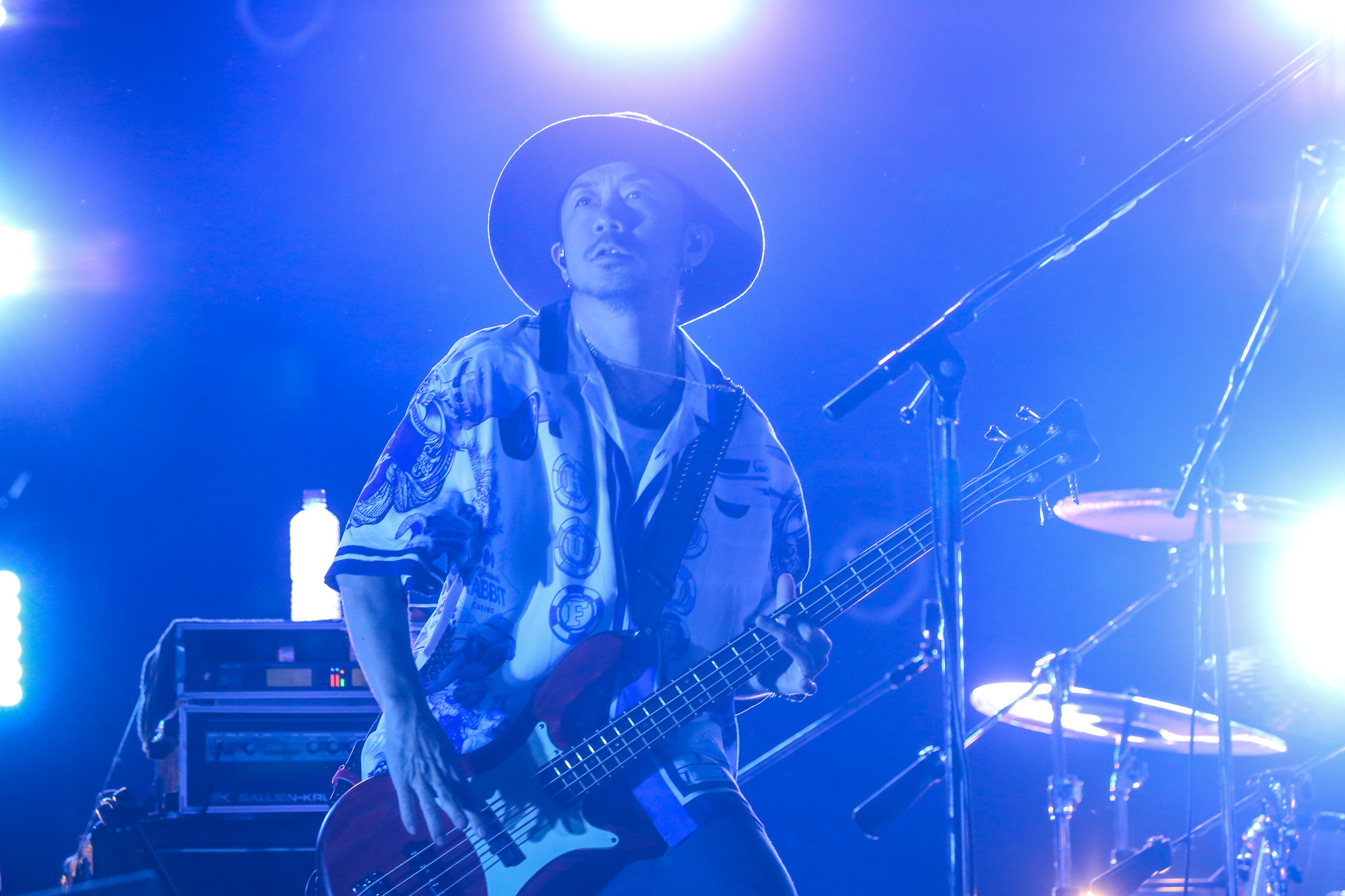 「張り上げるギターフレーズ」というKj(Vo.Gt)の声を合図に、HIROKI(Gt)のギターが高く歪む。共にこれからもフェスシーンを牽引しよう! そんな決意にも聞こえるナンバーに、場内も大熱狂。続けて披露されたのは、ライブシーンという聖地の賛歌「百合の咲く場所で」。「『RUSH BALL』はお前らのもんだ!」というKjの一言に、場内から大きな歓声が沸き起こる。