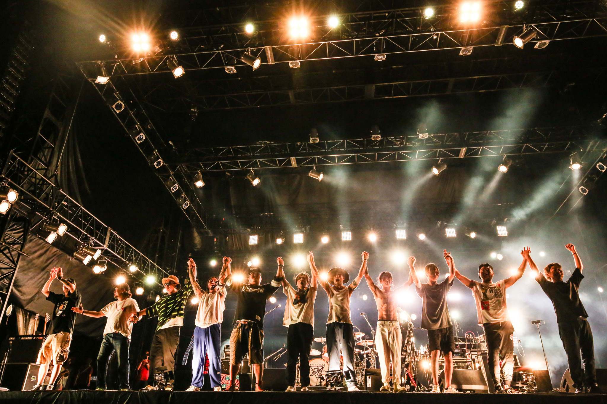 共に草創期を作り上げた仲間を讃えるKjの声に、オーディエンスからも賛辞の歓声と拍手が沸き起こる。そして続けて、「俺らとBRAHMANの時だけ異常にセキュリティが多いのは気になるけど、それだけ俺らのことを理解して、受け入れてくれてるってことだと思う」と、ジョークを交えてGREENSへの信頼を語った後、「ずっと昔から大事にしてる曲をやります」と告げ、バンドにとって転機となった大切な1曲「陽はまたのぼりくりかえす」を演奏。