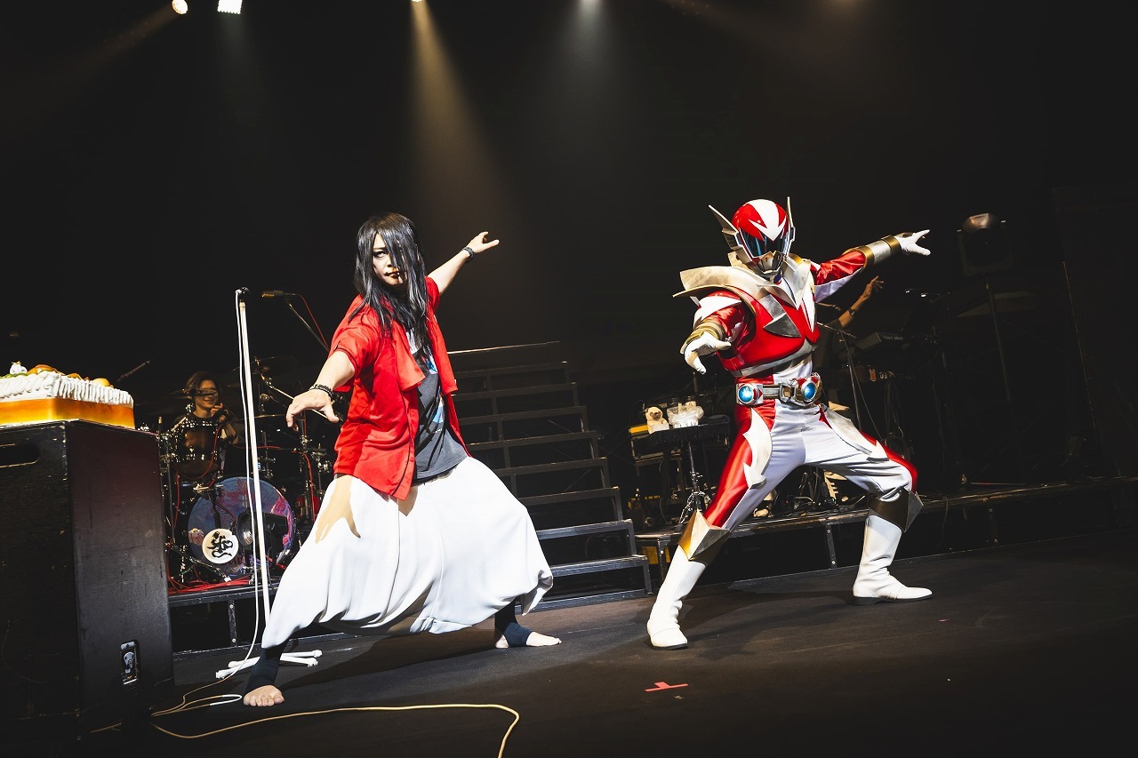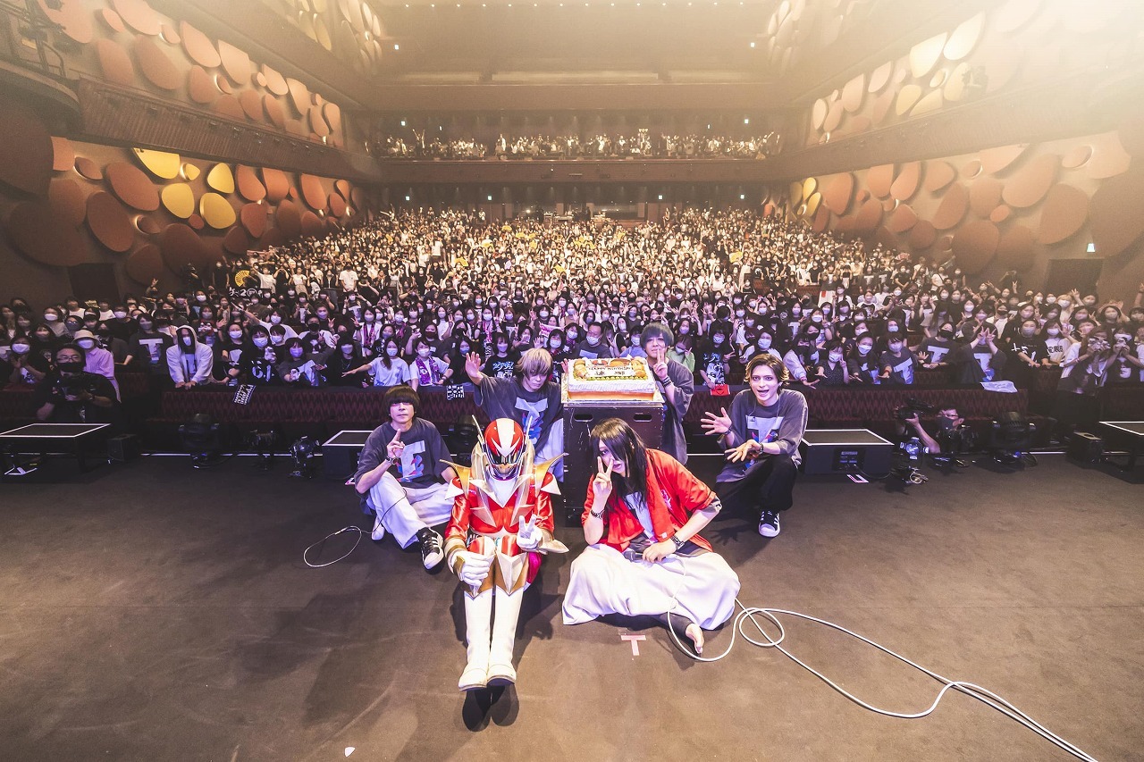そしてアンコールだが、この日は“アンコール”の掛け声ではなく“逹瑯”コールも巻き起こった。それに答えて逹瑯が登場するが、ステージ袖から普通に出てしまったため、自ら仕切り直し。ステージセットの上段センターから再びカッコつけながら登場して笑わせる。誕生日を迎えた瞬間にLINEで12012やWaiveのメンバーからメッセージが届いていた話や、YUKKEやミヤとのお笑いトークなども展開。すると、そこに突然現れたのは、茨城のご当地ヒーロー=イバライガー。逹瑯の誕生日をお祝いするために来たという。逹瑯とイバライガーをデザインしたケーキやプレゼントを渡し、「今日から君もイバライガーだ!」と一緒にヒーロー・ポーズを取ろうとするイバライガー。ノリノリでポーズを決めるミヤとYUKKEに対して、傍観者と化す逹瑯。主役の逹瑯がやってくれないことに戸惑うイバライガー。YUKKEの「やったほうがカッコいい。みんなも見たいべ」という説得で、ようやく4人全員でイバライガーポーズを決めた。