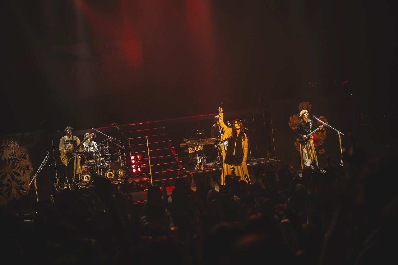 結成25周年を迎えたMUCCが、2022年から様々なコンセプトツアー『Timeless』を行なっている。過去にリリースしたアルバムをコンセプトにしたツアーで、2023年6月からはシリーズ第三弾となる『MUCC 25th Anniversary TOUR「Timeless」~志恩・球体~』をスタートさせた。2008年に発表した8枚目のアルバム『志恩』と2009年に発表した9枚目のアルバム『球体』をコンセプトにしたツアーだ。そのファイナル公演となったのが8月21日(月)=茨城・水戸市民会館でのライブ。