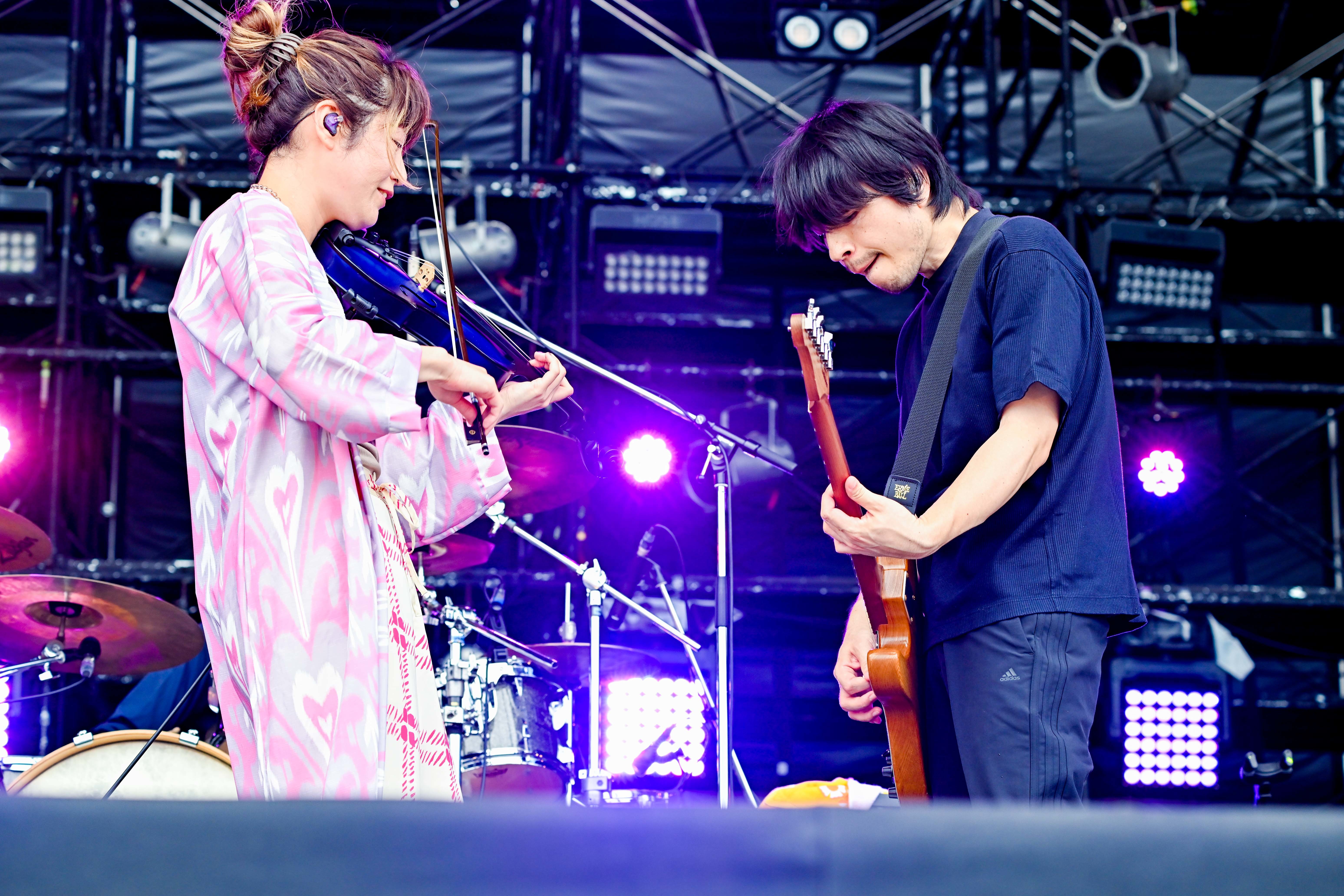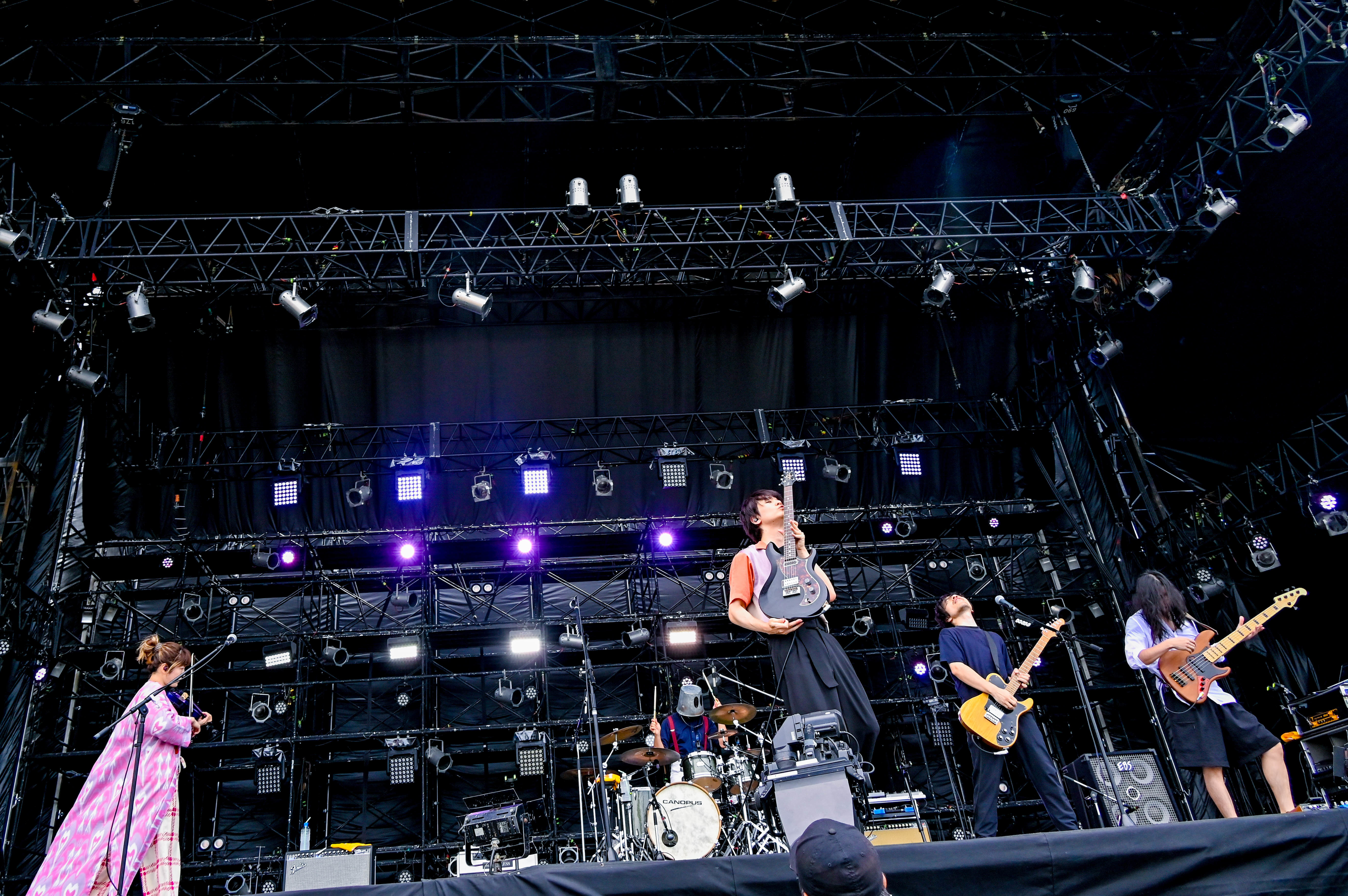 続けざまに「POPCORN STAR」を披露。さらに「the cookie crumbles」「Strawberry Feels」と一切勢いを緩めることなく、唯一無二のアンサンブルをこれでもかと投下し続ける。チャイコフスキーの『白鳥の湖』を再構築した「Swan Song」のイントロでは客席から歓喜の声が上がる。彼らにしか作れない世界観はさすがとしか言いようがない。