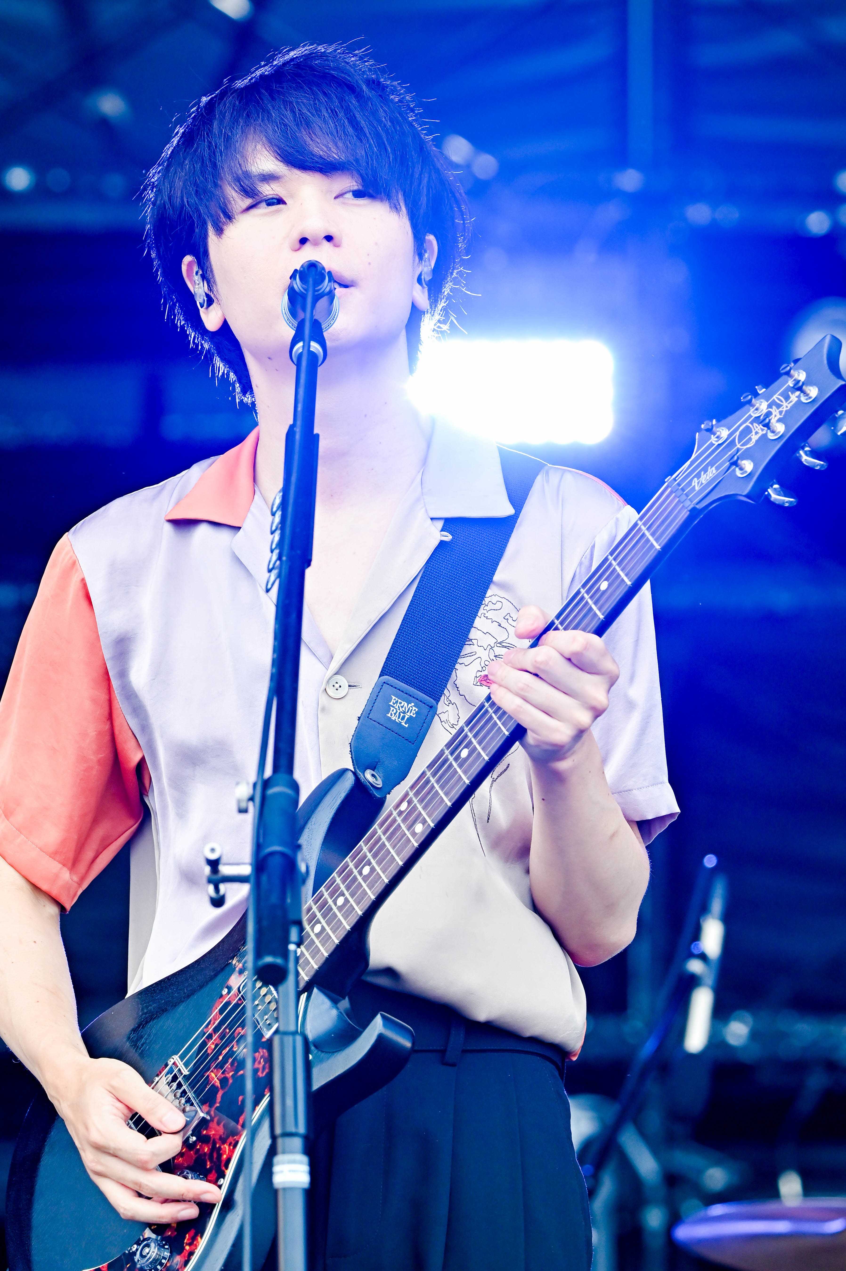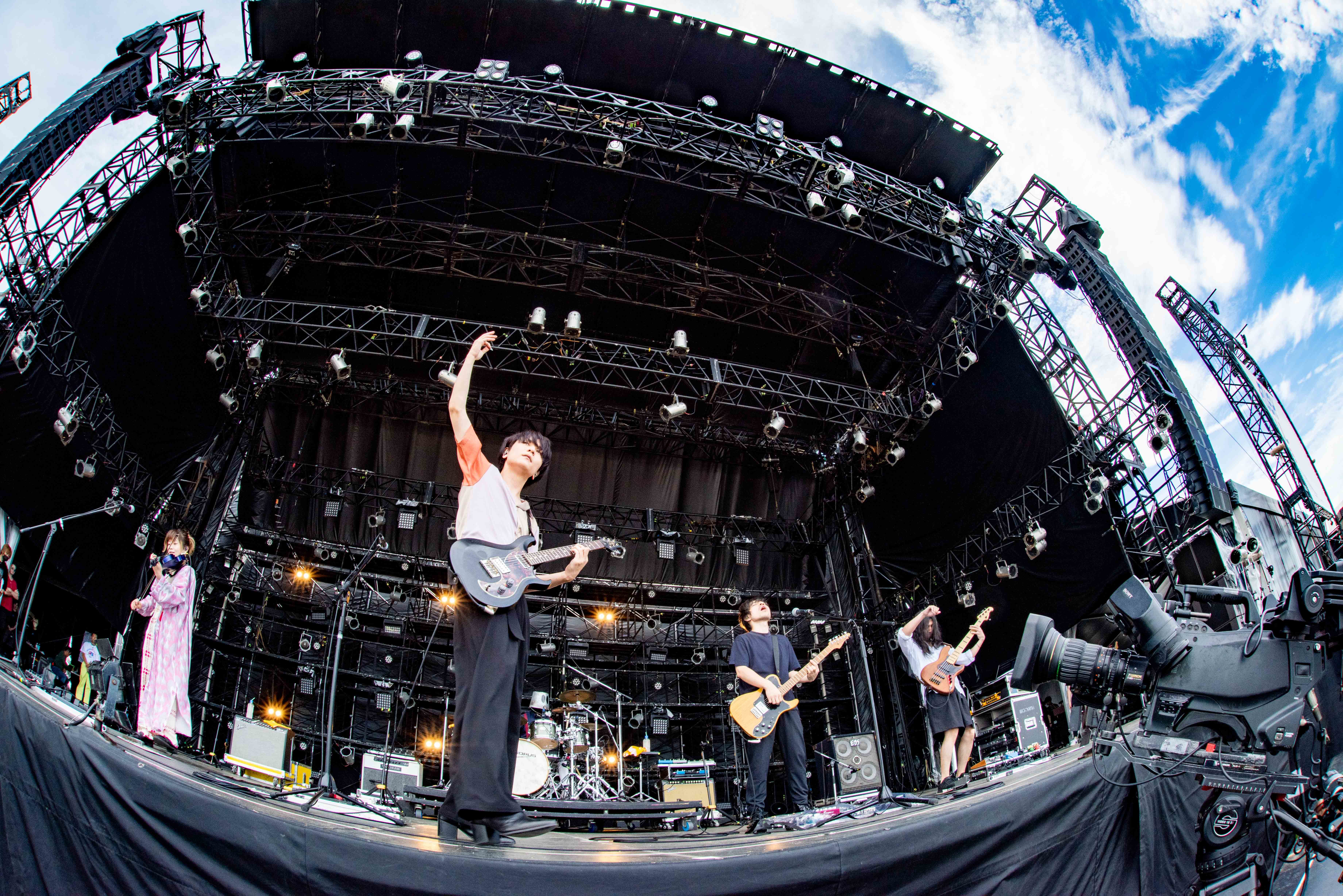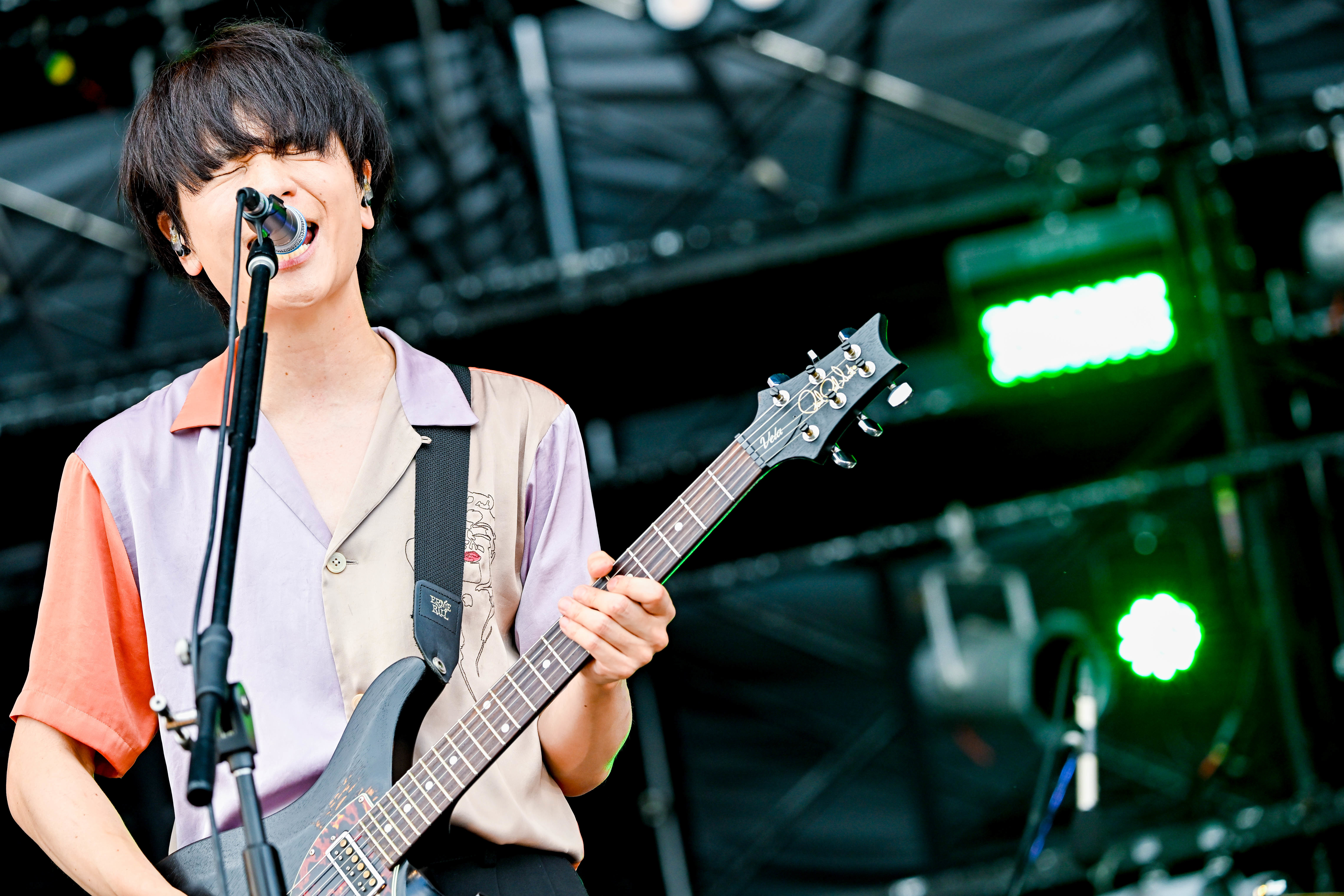 金井政人(Vo.Gt)が爽やかに最新曲「Time is like a Jet coaster」をワンコーラス歌い、「始めようぜ『RUSH BALL』!」と叫ぶと同時にBucket Banquet Bis(Dr)の豪速ドラミングが炸裂。安井英人(Ba)のグルーヴィなベースと柿沼広也(Gt.Vo)の鋭いギター、東出真緒(Vio.Key.Cho) のバイオリンの高音が泉大津の空に吸い込まれる。5人がステージから放つ迫力は凄まじく、ビリビリと鳥肌が立った。