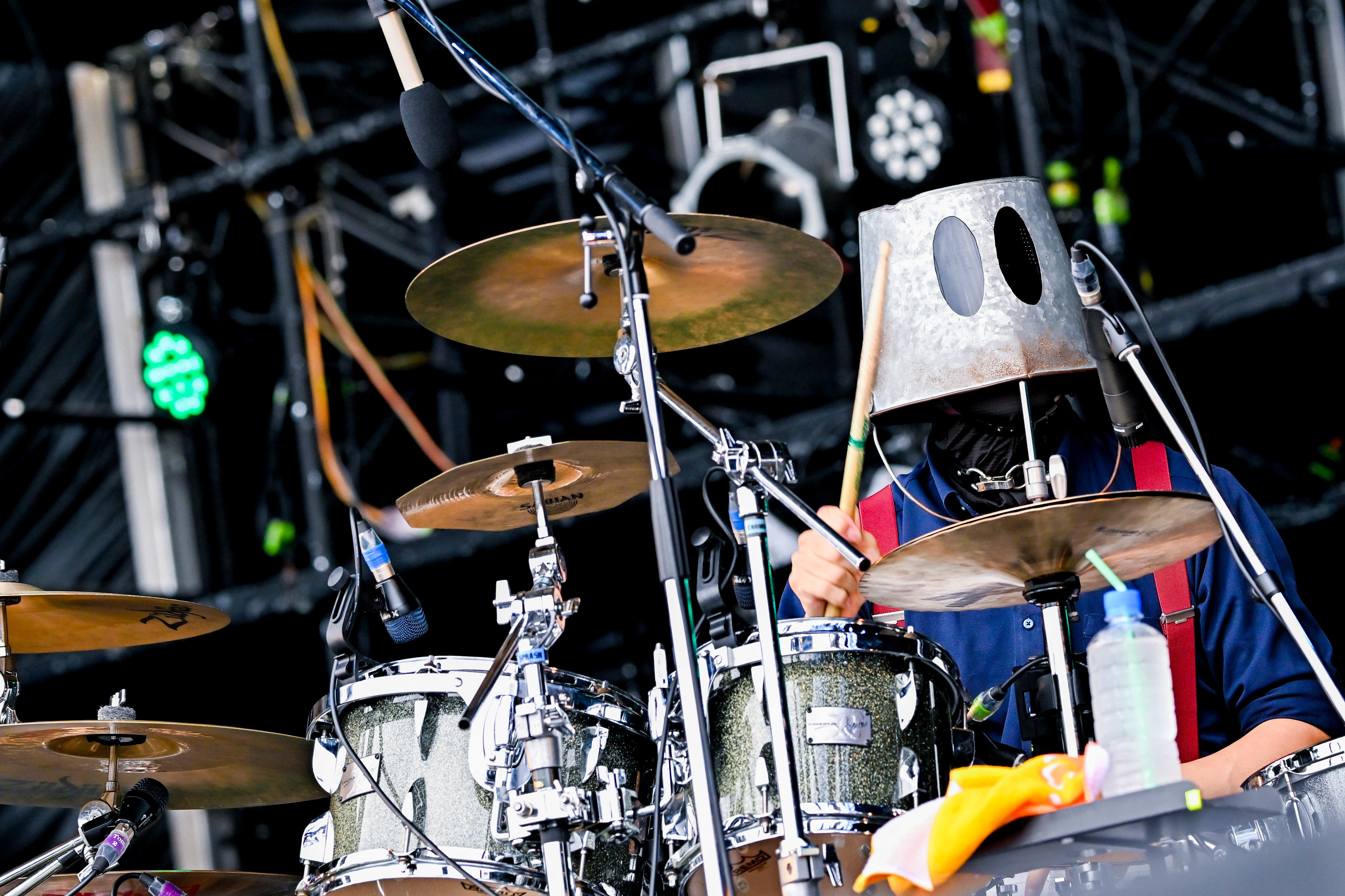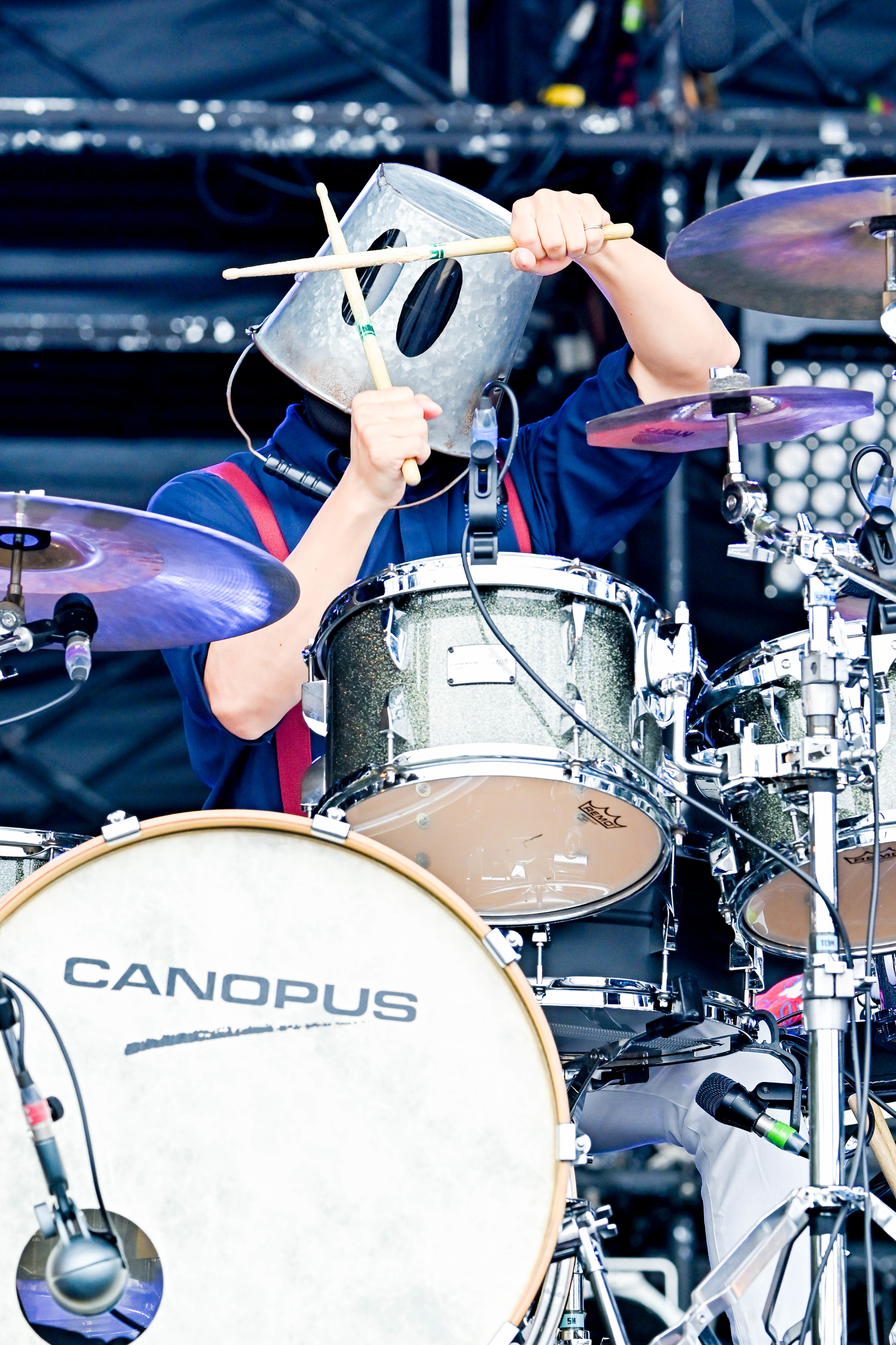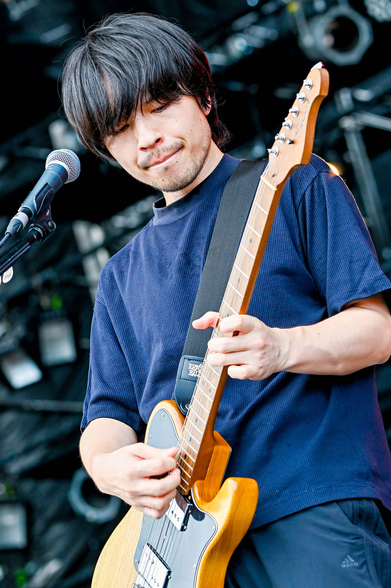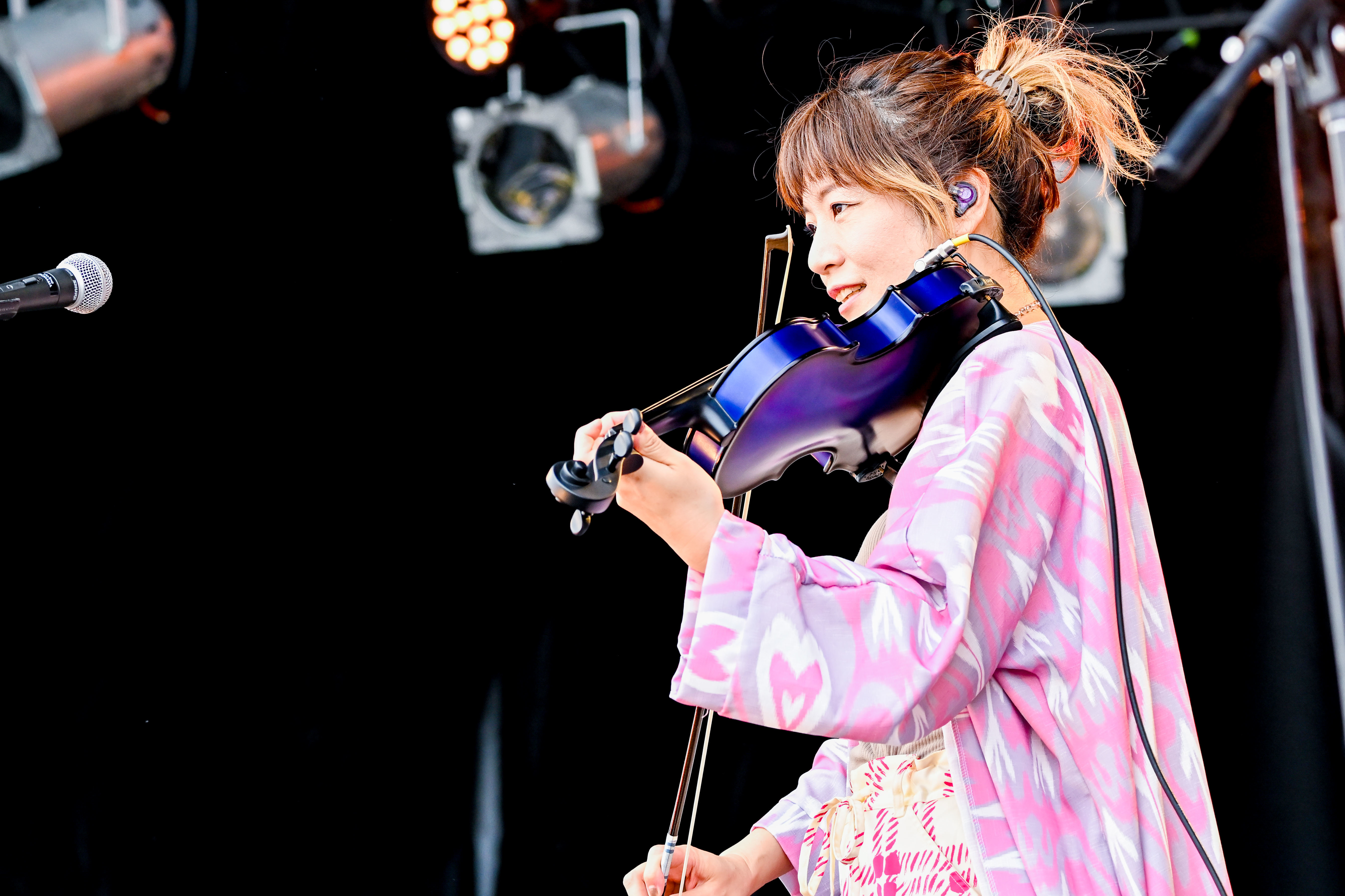 金井政人(Vo.Gt)が爽やかに最新曲「Time is like a Jet coaster」をワンコーラス歌い、「始めようぜ『RUSH BALL』!」と叫ぶと同時にBucket Banquet Bis(Dr)の豪速ドラミングが炸裂。安井英人(Ba)のグルーヴィなベースと柿沼広也(Gt.Vo)の鋭いギター、東出真緒(Vio.Key.Cho) のバイオリンの高音が泉大津の空に吸い込まれる。5人がステージから放つ迫力は凄まじく、ビリビリと鳥肌が立った。