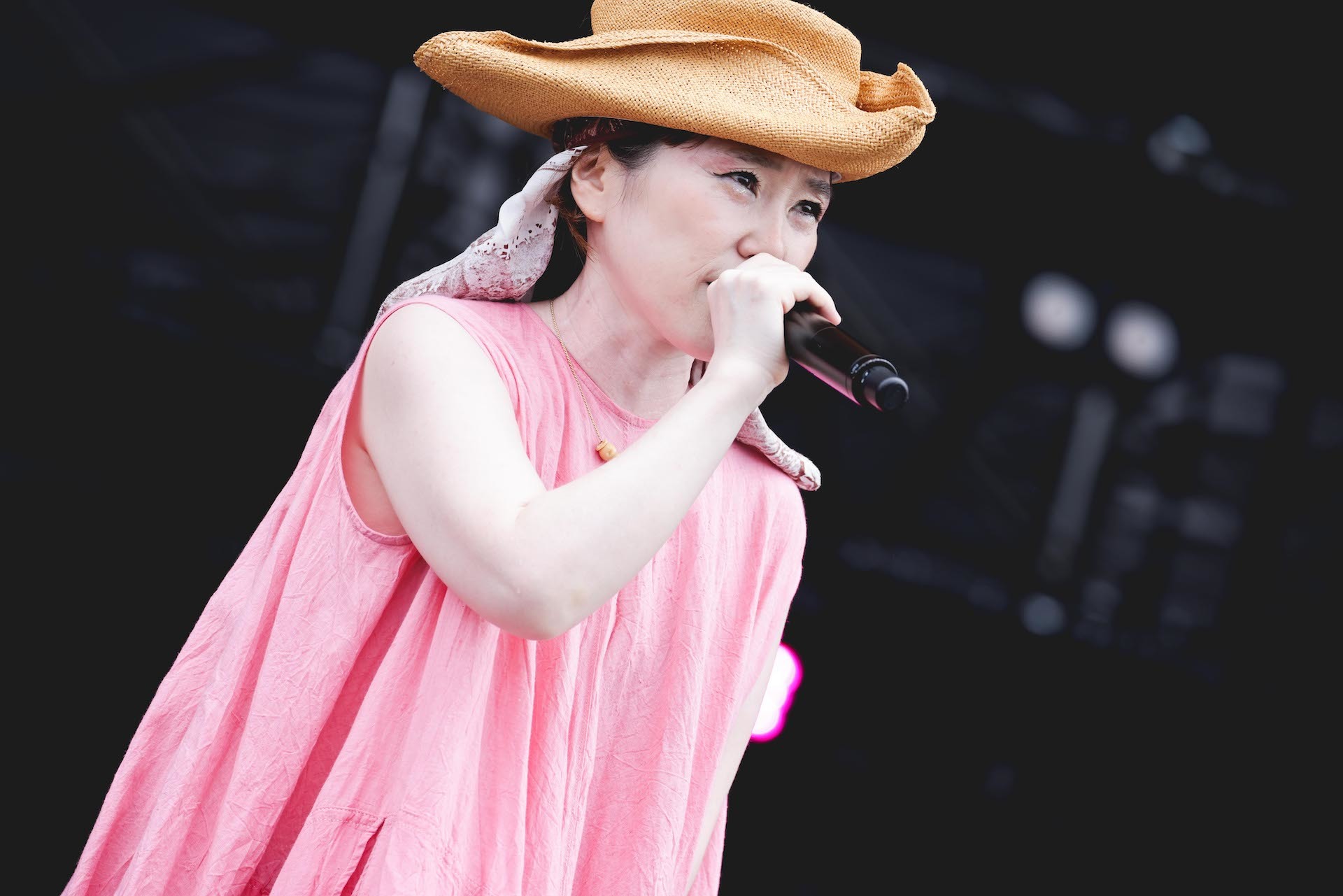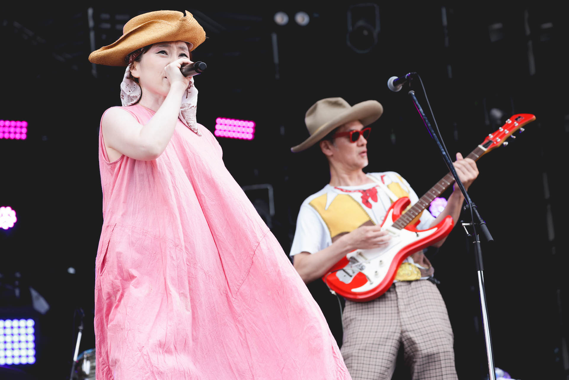 演奏を支える楽器隊の実力の高さはもちろんのことながら、中納の存在感の凄まじさたるや。ひと声放つだけで空気が動き、スキャットやボイパといった変幻自在ぶりを目の当たりにして、驚きと喜びが同時にやってくる。音域も広く、声そのものが楽器のようだ。彼女の歌声に意識も体もひき寄せられる。よく映えるピンクのマキシワンピースを翻しながら、ステージをパワフルに動き回る姿も目が離せない(アイメイクもピンクがきいていて素敵だった)。
