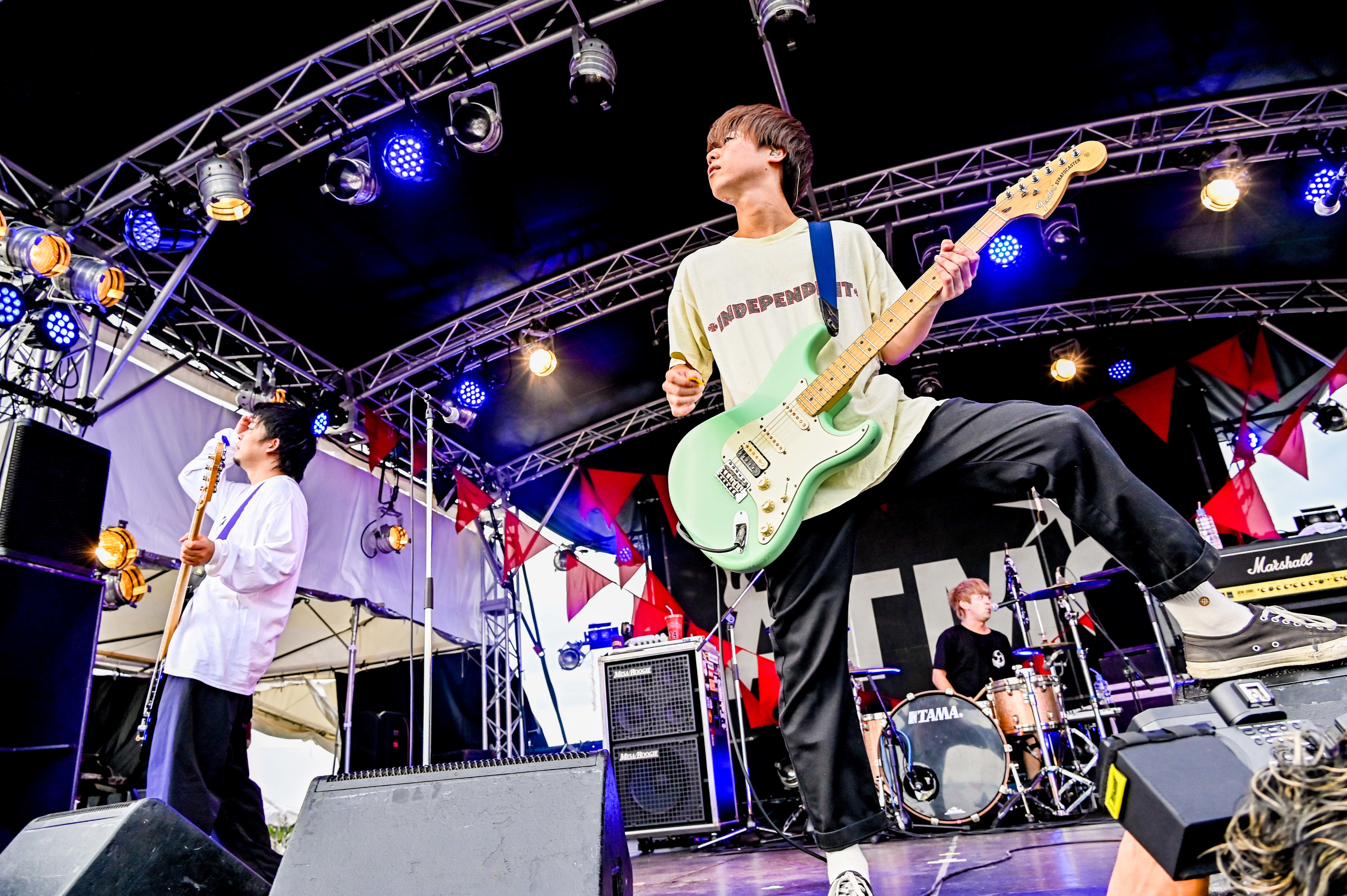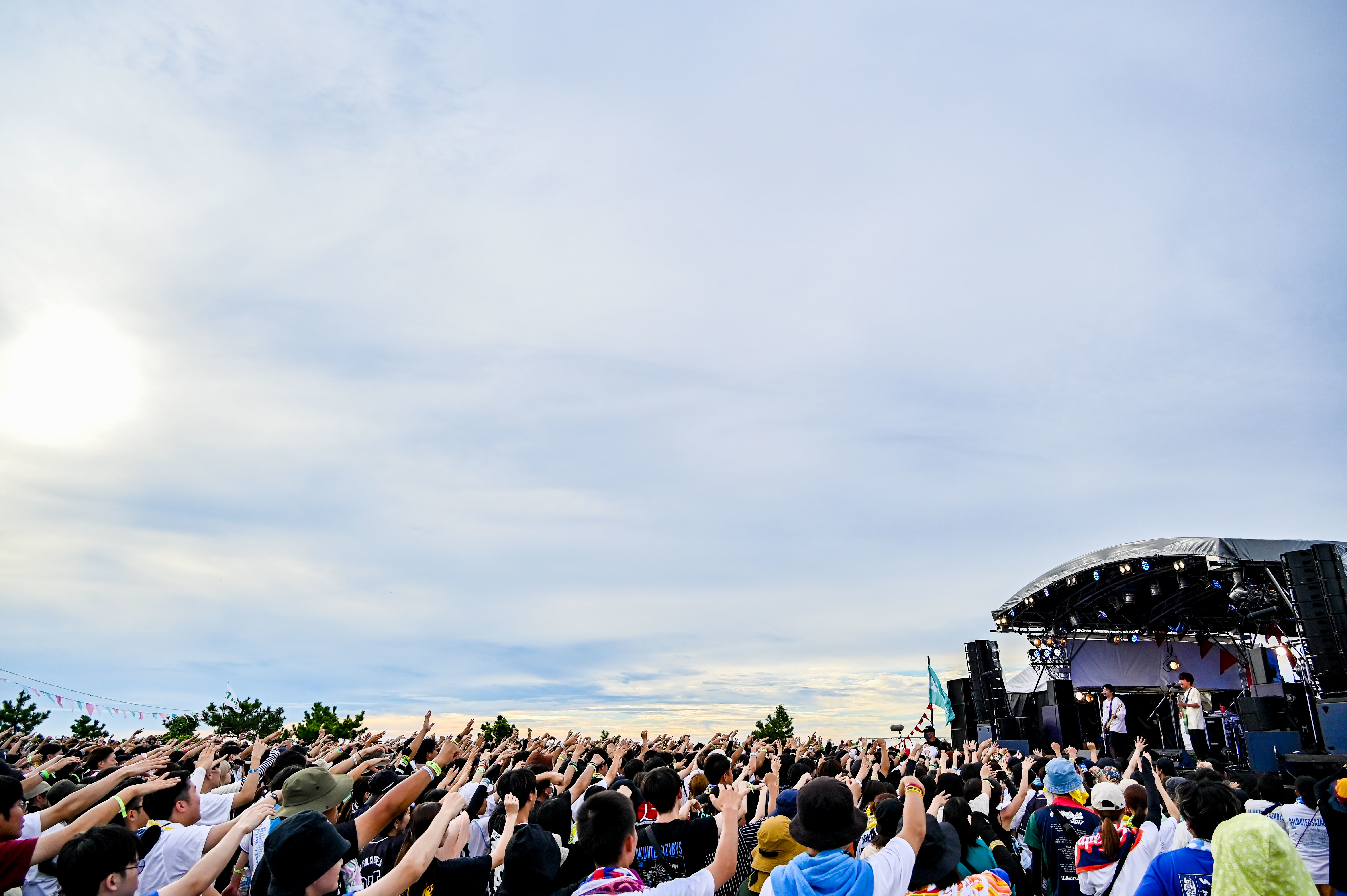 そんな熱いMCに呼応するように、「Clown」では全身で踊り暴れるオーディエンスたち。晴れやかな旋律が9月の空によく映える「A Sign of Autumn」ではたくさんの手が上がり、その絶景に3人の表情も誇らしげに見える。