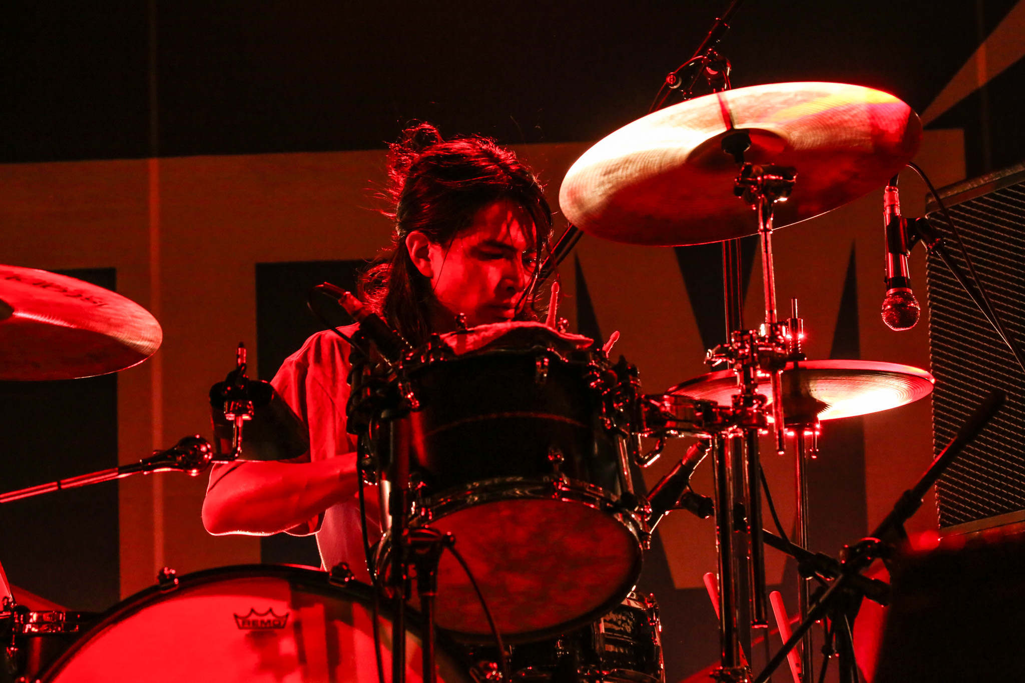 会場の集中がグッと高まると、次の「楽園」では骨太なサウンドを、時にしなやかに、時にノイジーに鳴らして、音に溺れさせるかのごとくどんどん深みへ。無になるような瞬間をもたらし、最後はまたも今年発表の曲「My Generation」で、その抑えた序盤からいっきに爆発して魅了。<OK, alright>のリフレインも気持ちがいい、刺激も十分なロックに拳も続々突き上がるが、なかには首を垂れるようにして曲に入り込む人も。w.o.d.のパフォーマンスが見る者を圧倒したのを証明するシーンを見せつけ、全6曲は締めくくられた。