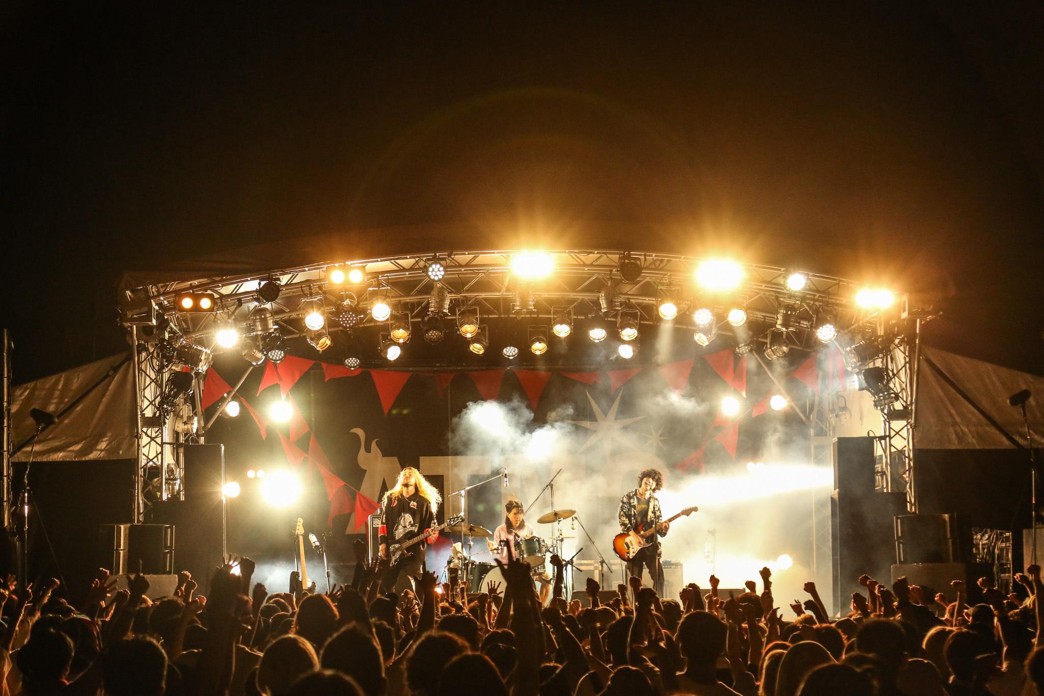 パンキッシュなイントロでひきつける「1994」を1曲目に選び、衝動を全開にしてロケットスタート。本能に訴えかけるナンバーは観客を触発して早くもたくさんの手が上下する。さらに続くのはグランジ色濃く「Mayday」と「踊る阿呆に見る阿呆」。赤いライトと相まって温度も粘度も上昇するボーカル、たっぷり歌うギター、頭の中をめぐるリフ、挑発するベース、軽快なビートetc.。オーディエンスは拳を突き出したり、歓声を上げたり、バウンドしたり、踊ったりと、それぞれに彼らの真髄を満喫する。