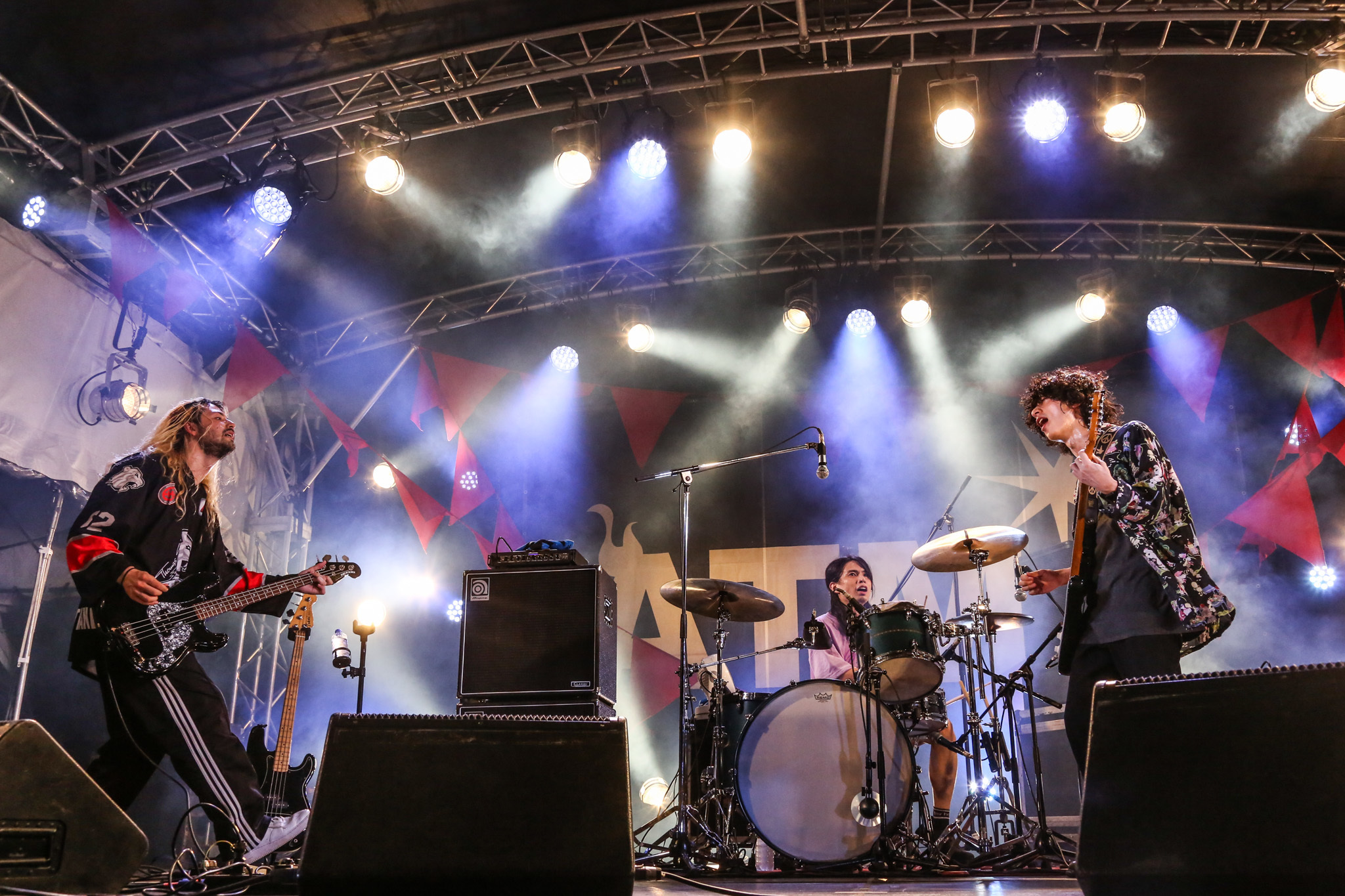 そしてはさむサイトウタクヤ(Vo.Gt)のMCはライブ同様に堂々と、かつ独特のゆったりした間で。とは言え、関西出身だけあり、「何、わろてんねん!」とファンにつっこみを入れつつだが、自身初のシングルCDで9月6日(水)リリースの「STARS」で曲に戻れば、サイトウが言うとおりに「超かっけー」ことに間違いはない。エネルギッシュなアクトが生み出す、迫り来る3人の音は青い言葉をのせながら緩急をつけて展開。