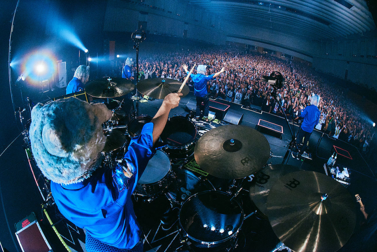 中盤、ドラムのSpear RibとDJ Santa Monicaによるセッションが披露されるとライブ恒例の「MISSION MOVIE」へ。続いて披露された「Dive」のアコースティックヴァージョンではツアーで訪れてきた海外諸国で取材時に尋ねられた各国のオーディエンスの反応の違いなどを伝え、負けじと熱狂し、リアクションする客席には「完璧デス!米子アリガトウ!!」と感謝の意を伝えていた。