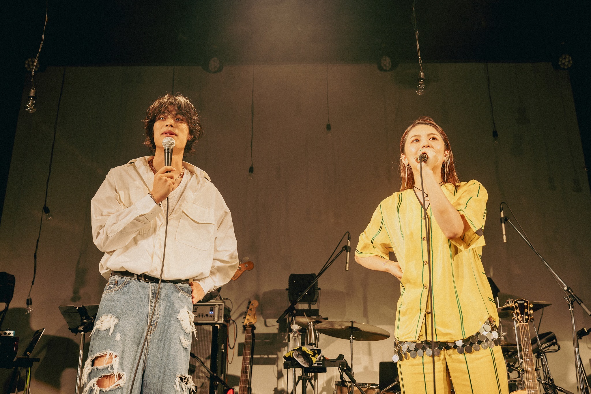 ここで予期せぬサプライズ、竹内唯人の登場だ。曲は9月22日放送開始、WOWOW連続ドラマW-30『アオハライド Season1』主題歌「この雨がやんだら」。ライブ初披露の緊張感を漂わせつつ、溢れ出す恋心、雨に託した願いを、息の合ったデュエットで表現する。メロディアスなミドルバラードの曲調と、どちらも中低音の豊かな響きに特徴を持つ、二人の歌声がぴったり重なる。「自分で言うのも何ですけど、声の相性がめちゃくちゃいい」と、竹内の自画自賛も頷ける。リリースは9月23日に決定した。新たな代表曲の誕生だ。
