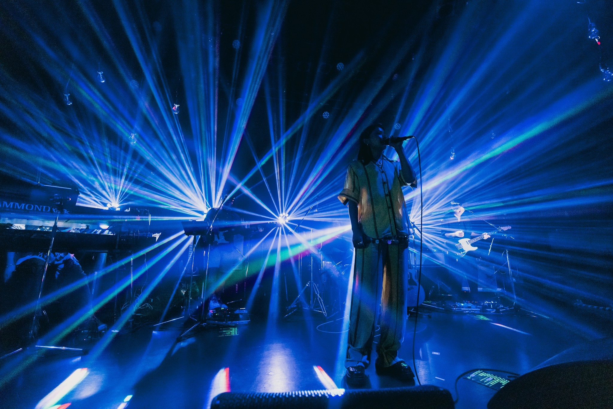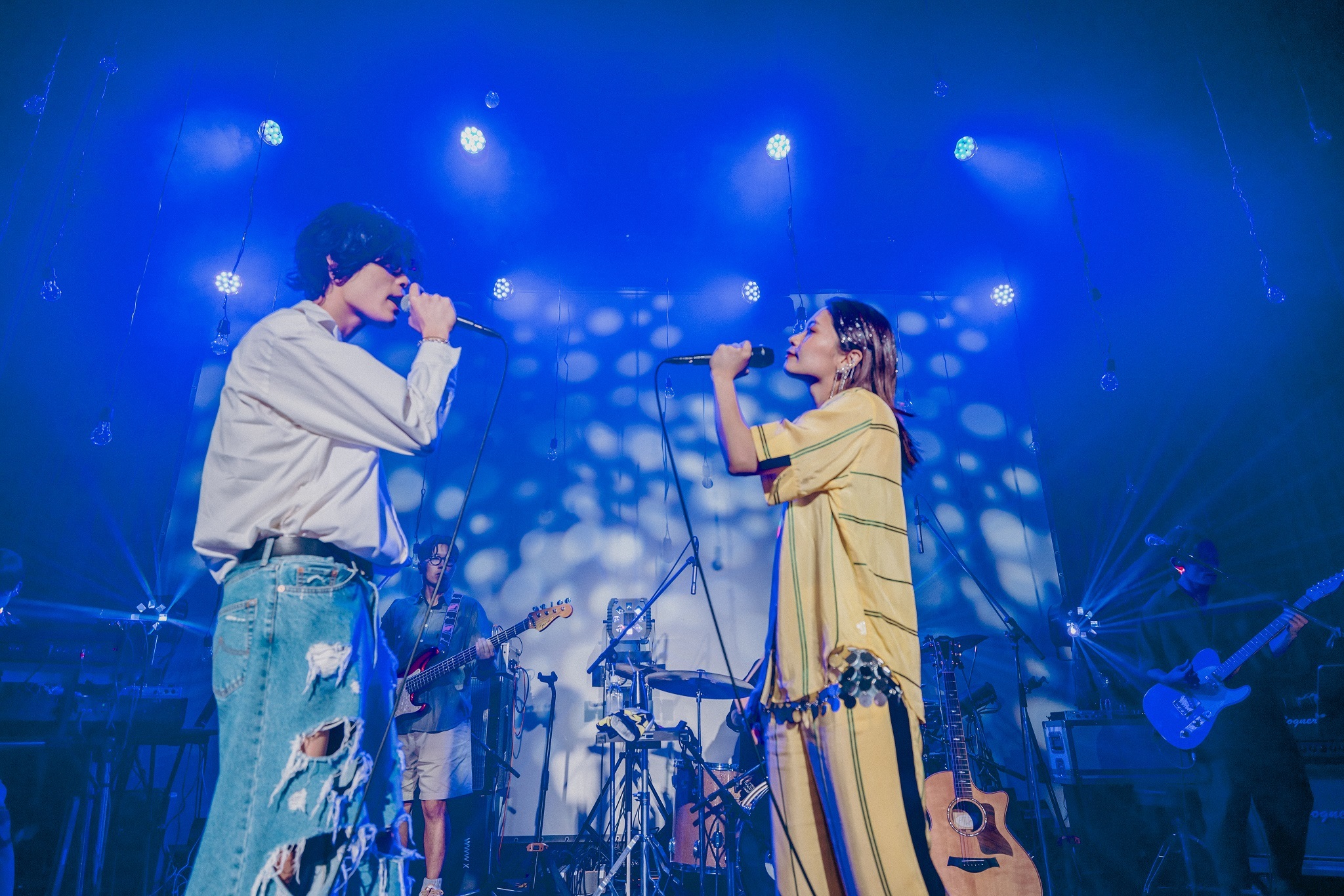 「ふたり」は、隠れた名バラード。君と出会えてから丸3年、という歌詞を「丸6年」に変えた、今日だけのスペシャルバージョン。一途なラブソングをファンとの絆と重ね合わせた、大切な記念日の歌。間奏で思わず“みんな大好きだよ”と口に出したのは、たぶんとっさに出た本音の言葉だろう。拍手が自然に湧き起こる。ステージ上から吊るされたシンプルな電球の柔らかい光が、特別な日の親近感をさらに高める。