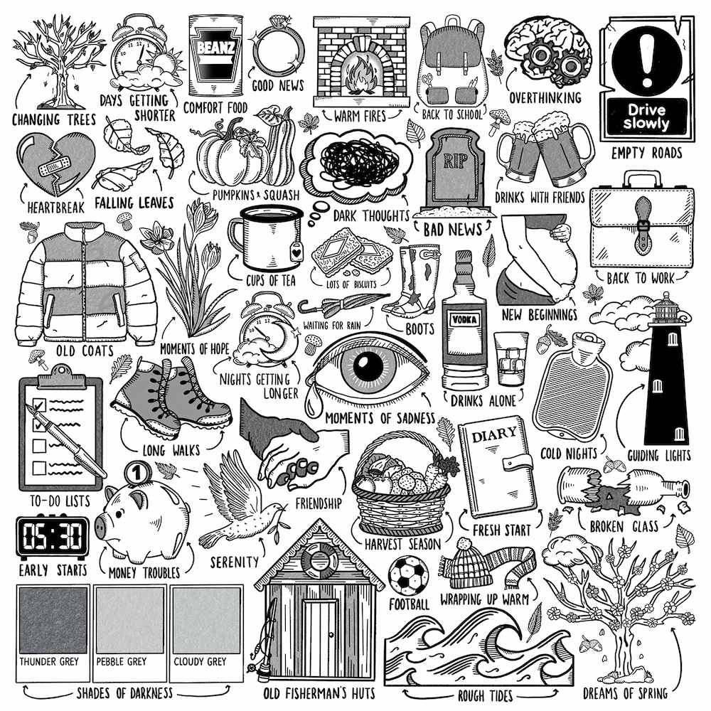 「昨年の秋、僕は友人たちと人生の様々な変化を経験した。暑い夏の後、落ち着いたり、収まったり、または崩壊したり、収束したり、あるいは爆発したりした。僕が去年の始めに辛い時期を経験したとき、曲を書くことで自分の気持ちを整理し、何が起こっているのかを受け入れることができた。そして、友人が様々な状況にあることを知った時、彼らの視点から、あるいは僕の視点から曲を書いた。僕たちがそのとき世界をどう見ていたかを表現したんだ。失恋、憂鬱、孤独、混乱といったどん底の中にも、恋に落ちたり、新しい友情を得たりといった絶頂期もあったから。いつか父と兄から、エルガーという作曲家が14曲それぞれ異なる友人を題材にした『エニグマ変奏曲』を作曲したことを聞いた。それが今回のアルバムを作るきっかけになったね。前作『―(サブトラクト)』をプロデュースした、アーロン・デスナー氏とはすぐ意気投合し、ノンストップで作曲とレコーディングを進めることができた。このアルバムは二人のパートナーシップから生まれたんだ。今回も彼のサウンドは「秋」の雰囲気を見事に捉えていると思うよ。」