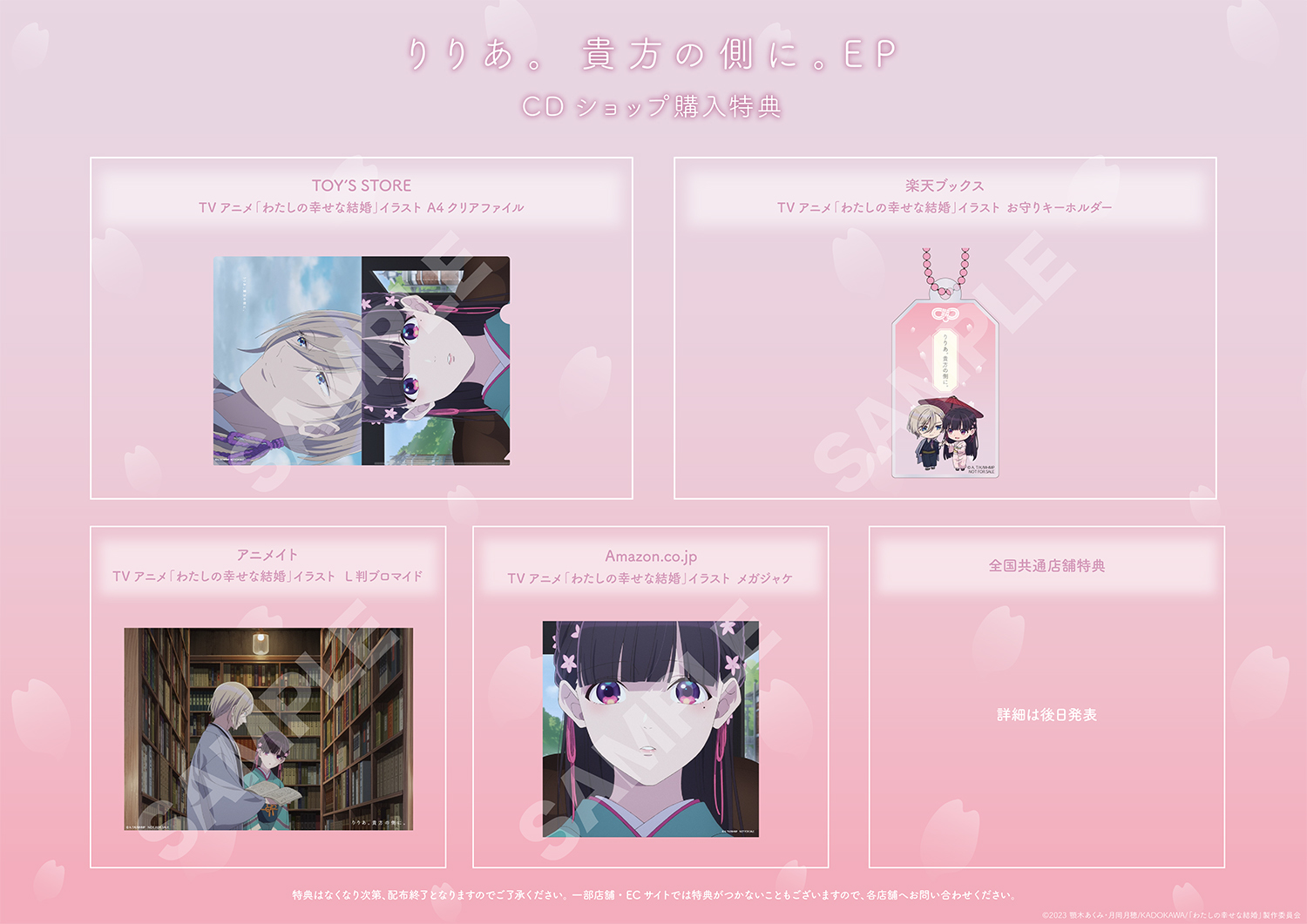 本EPには、オープニング主題歌を務めるTVアニメ『わたしの幸せな結婚』のTV Size Ver.のほかInstrumentalなどを収録している。りりあ。一年ぶりのパッケージリリースとなる今作ではアニメビジュアルを使用した店舗別特典も実施される。りりあ。ファンはチェックしておきたい。