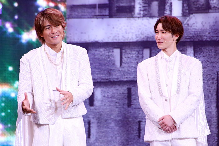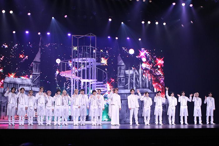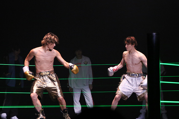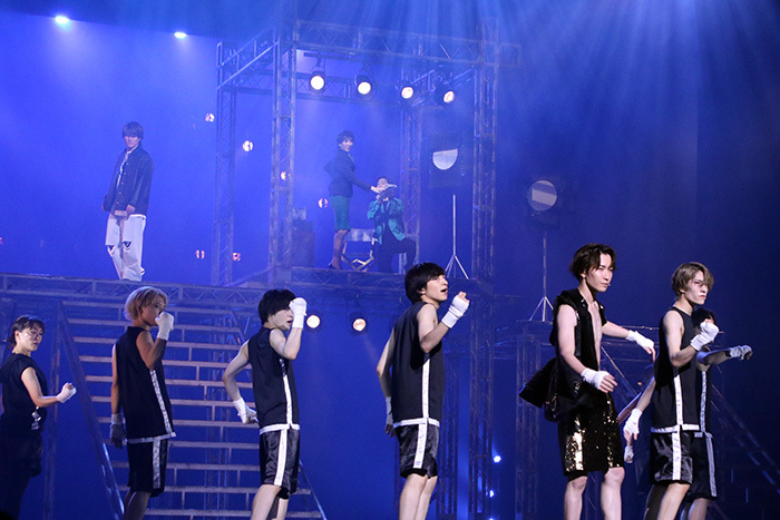 今回は、ボクシングジムでチャンプのシンタロウが練習生を従えて登場するシーンで歌うナンバー「CHAMPION」、マダム・エマの劇場に匿われたショウタが歌う「光」という新曲が加わったほか、2019年の岸優太&神宮寺勇太による公演以来4年ぶりに客席上のフライングも復活。新たな演出もあり、さらに臨場感と迫力を増したパフォーマンスが繰り広げられる。