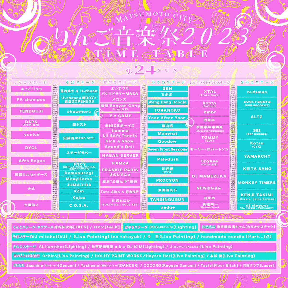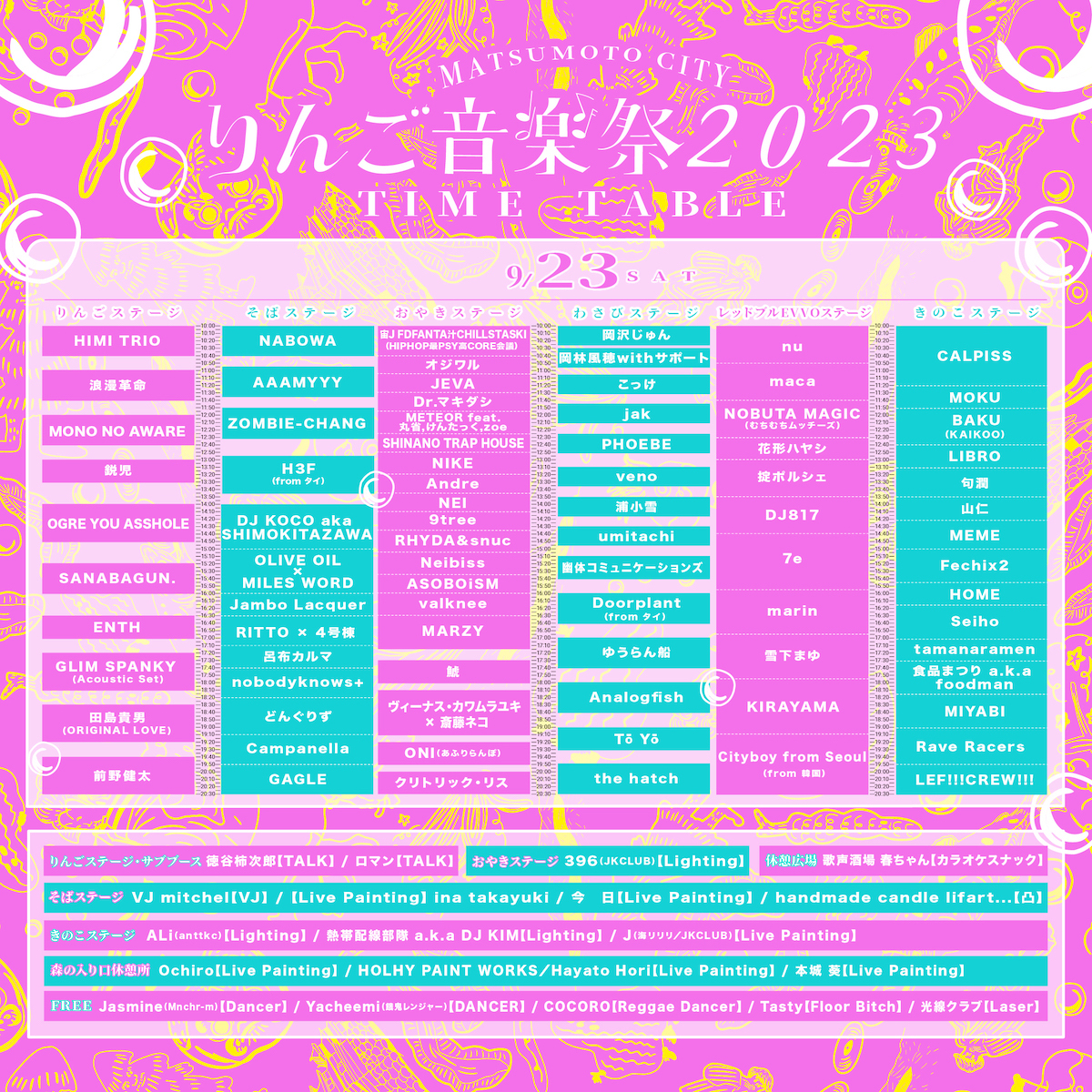 さらに、先週タイムテーブルが発表された「りんごステージ」と「そばステージ」に続き、全6ステージのタイムテーブルが公開された。