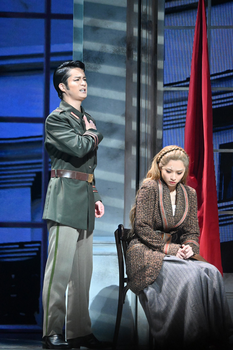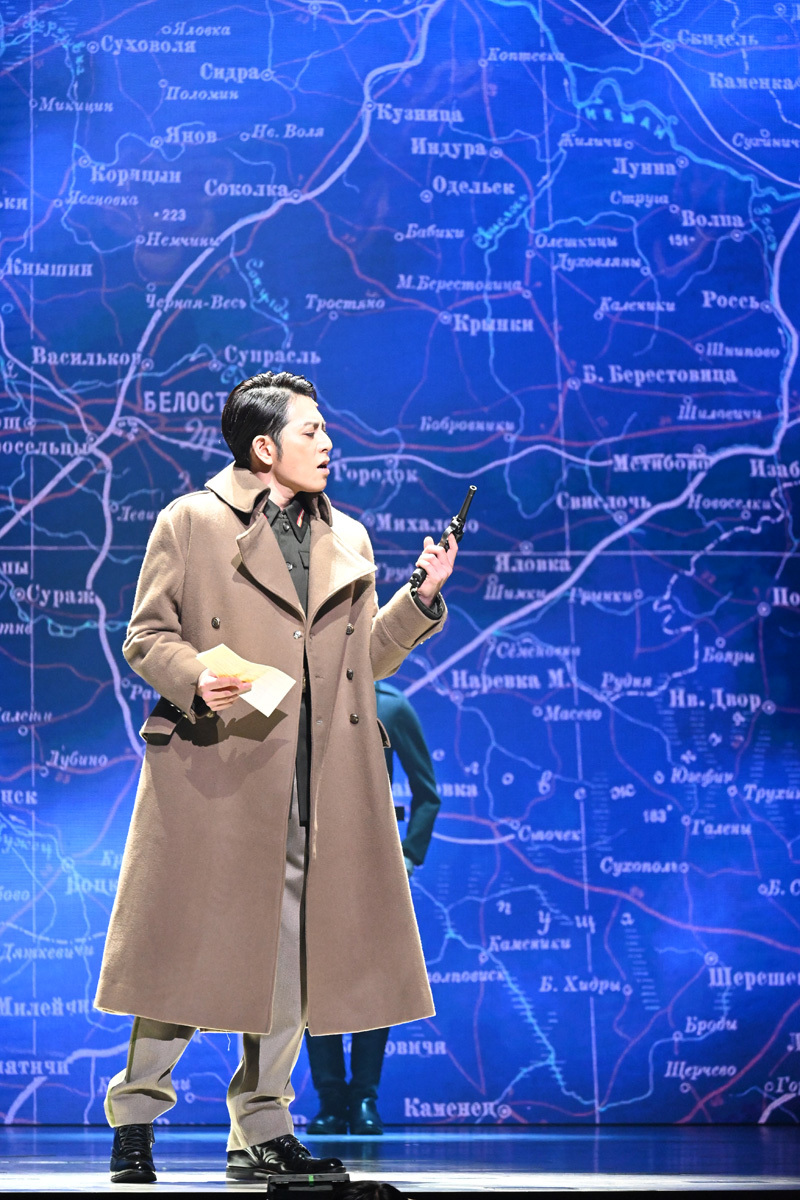 田代の徹底した敵役っぷりにゾクゾクするこのナンバー。将官として父の背中を追い、新生ロシアを導かんとする田代グレブはブレない。やや妄信的にも見える演技と目力で、迫力のある歌声を聞かせる。グレブは敵役として物語に存在するが、実はこの作品で自分を見つめ直すひとりでもある。混沌とした時代の中で、それぞれのキャラクターがそれぞれに精一杯生きる姿もこの作品の魅力のひとつだ。