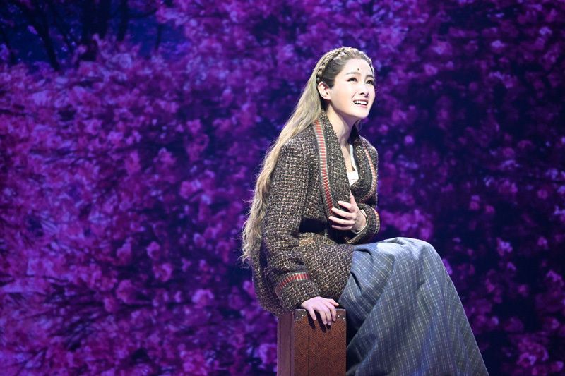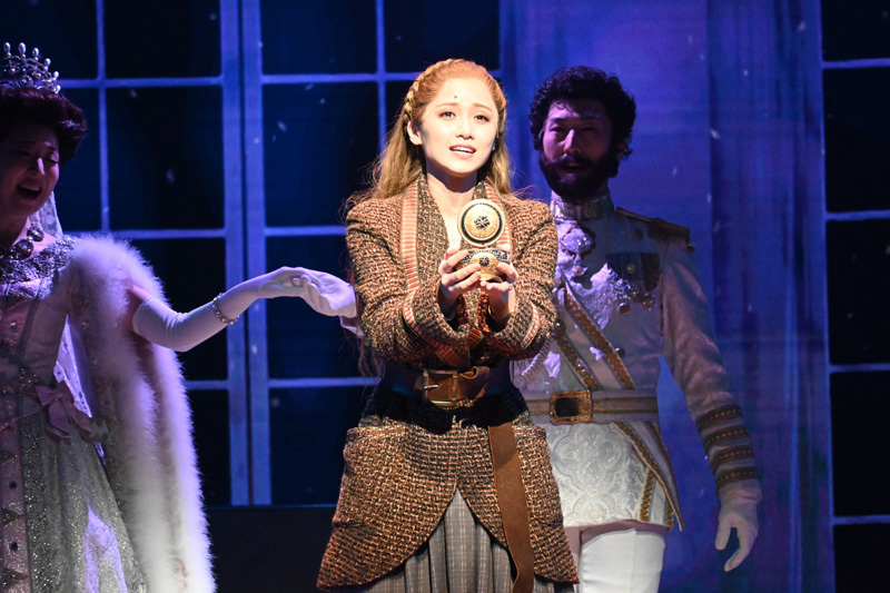 そして1幕最後の楽曲「過去への旅(M14)」。この曲もアニメオリジナルからの一曲で、アカデミー賞とゴールデングローブ賞にノミネートされている。ロシアからパリへ。ホーム(居場所)、愛、家族、憧れ……すべてを追い求めようとした少女アーニャがパリ到着目前で歌う。「どの言語で歌われようとも、『アナスタシア』というこのロマンチックな物語が過去100年以上にわたり変わらぬ力を放ち続けてきたのは、世界のどこにいようとも、自分自身を見つけたいという私たち全員の本能的な願望が詰まっているからです」とリン・アレンスは説明した。アーニャ役は葵わかな。探し求めていた自分の過去を探す旅へ、いよいよ本格的に足を踏み出そうとする、不安と希望。自らが未来を切り開くのだという決意を、凛として強く、高らかに歌い上げた。