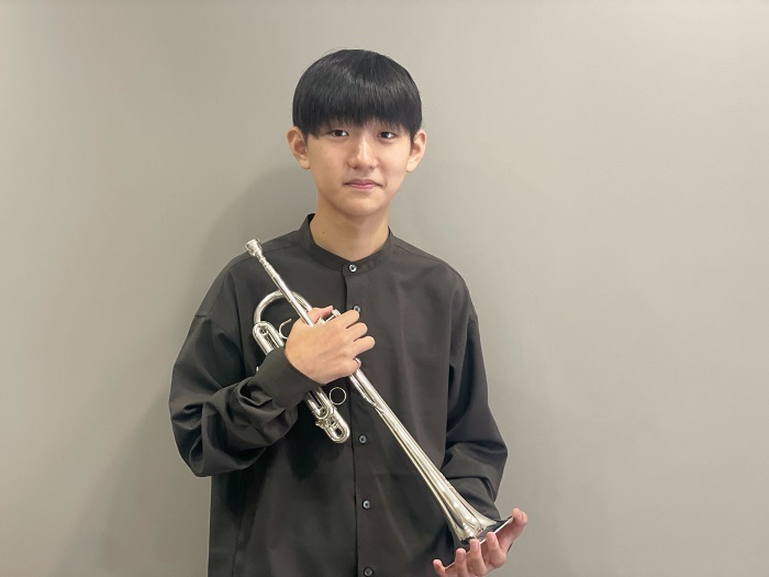 トランペット奏者・児玉隼人。弱冠14歳ながら、第30回日本クラシック音楽コンクール第1位や、第23回大阪国際音楽コンクールでは全部門の最優秀者に与えられる文部科学大臣賞を受賞するなど、10歳以降で出場したコンクールでは全て1位を獲得している。