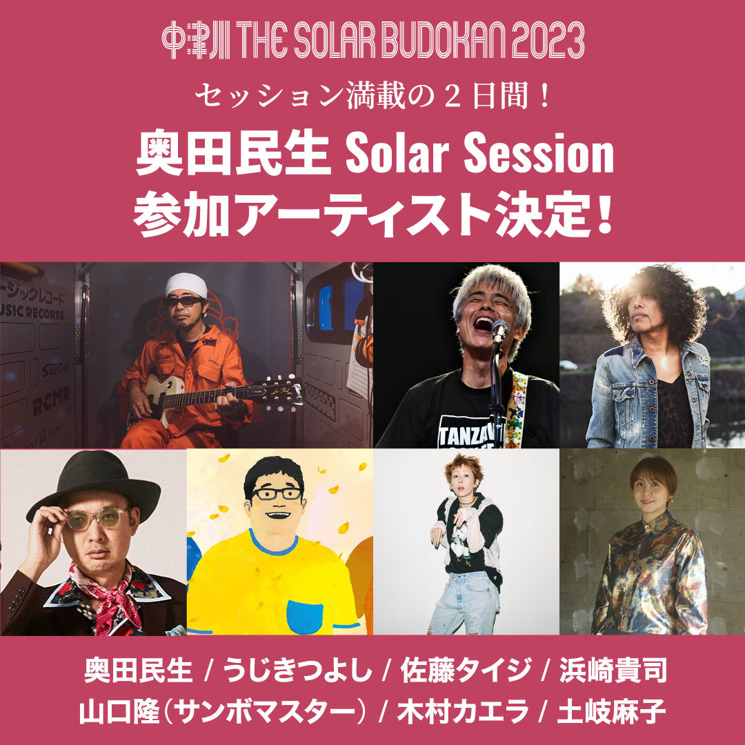 9月23日(土)、24日(日)の2日間にわたって岐阜県中津川公園内特設ステージで開催される『中津川 THE SOLAR BUDOKAN 2023』。アーティスト同士のセッションの内容が明らかとなった。