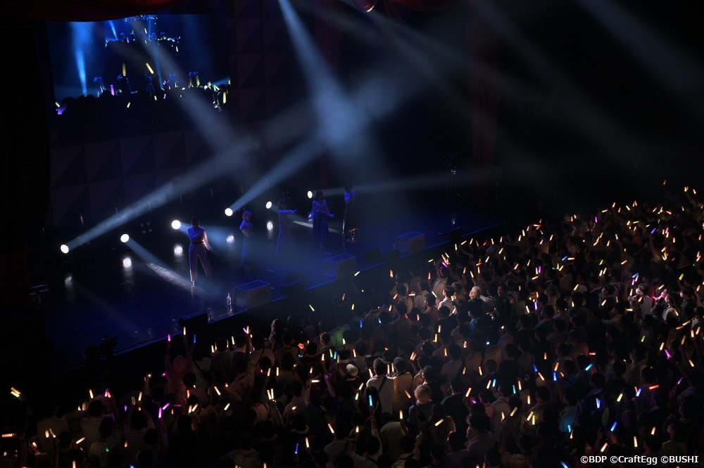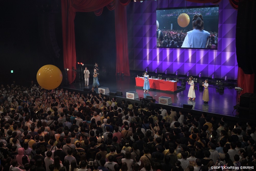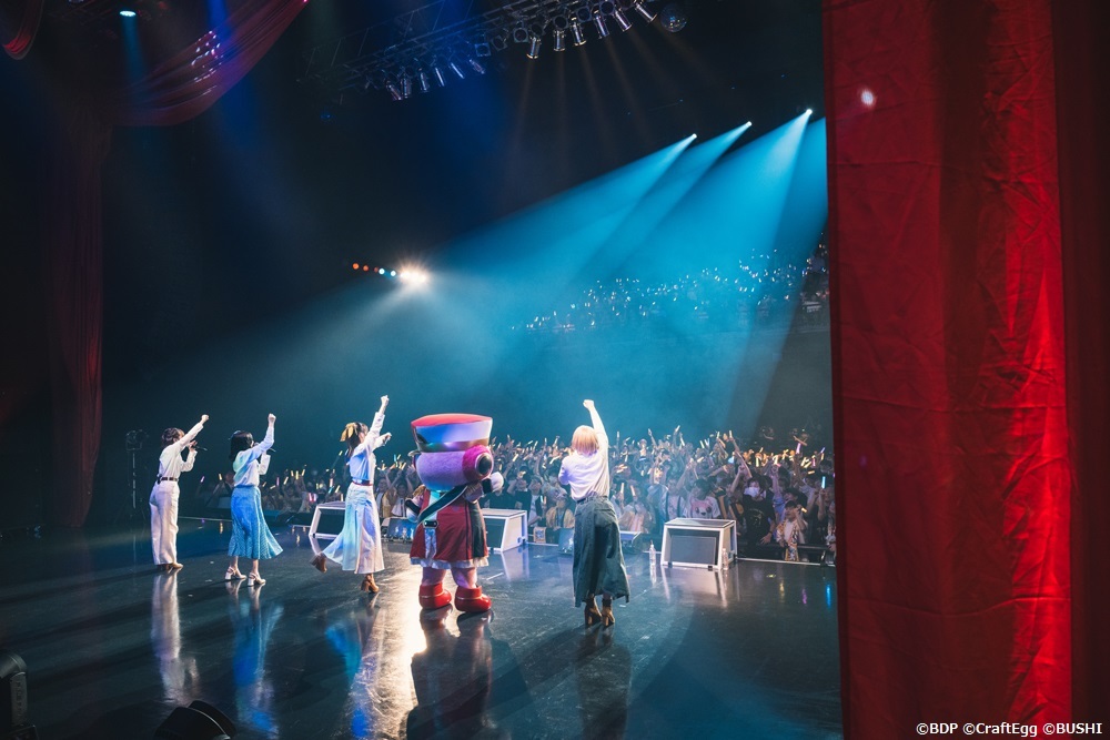 最後の自己紹介ではぎごちなく各キャラの楽器のパフォーマンスを織り交ぜて「全員がバンド馴れしていない感じ、メチャいいね」という豊田のツッコミがみんなの笑顔を誘う。そして次が最後の曲と告げた時に名残惜しいファン達がコンサートライトで×を作ると、「ダメ! ×で終わらせない、みんなの〇で終わらせるよ!」という伊藤の言葉に大きな声援が上がった。