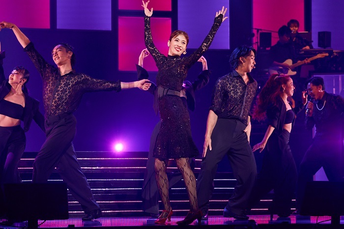 1幕はミュージカルの名曲を中心に、イタリア歌曲からポップスまでバラエティー豊かなラインナップ。芯の強さを持った王道のヒロインから、周囲を惑わす妖艶な女性まで振り幅広く演じ切り、一つの出演作として続きが見てみたいという観客の思いをかき立てる。2幕は出演作の楽曲を中心に、豪華日替わりゲストとのコーナーも。この日は『ガイズ&ドールズ』で共演した井上芳雄が駆けつけ、息の合ったデュエットと軽快なトークを披露した。