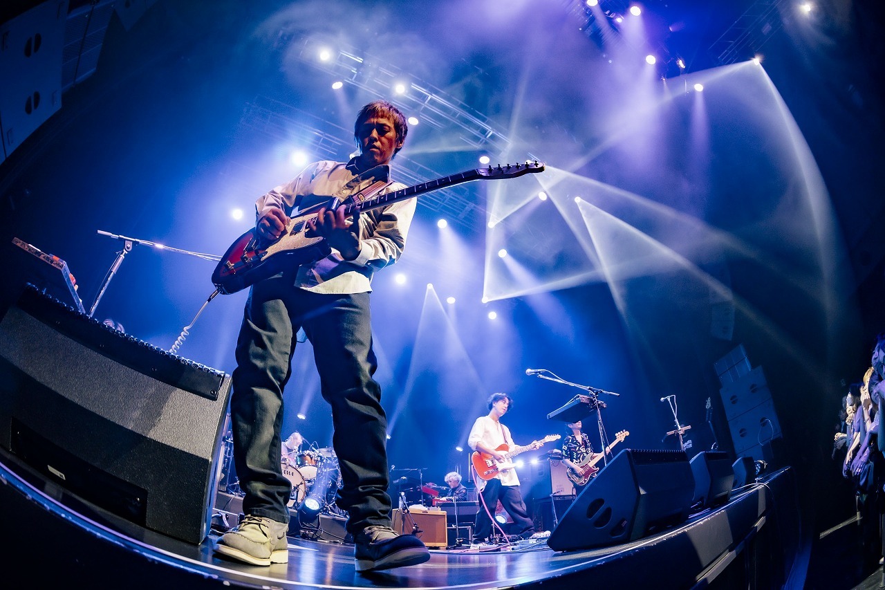 そこから「Good bye my world」「Glare」とグランジィなバラードを2曲立て続けに繋げると、「南部の男になってくれ!」と田中が声を上げ、おおらかなロックンロールナンバー「B.D.S.」で再び観客を踊らせ、本編を締めくくると、アンコールは「SPF」「スロウ」「放浪フリーク」の3曲を披露。懐かしい曲がこれまでとどこか違って聴こえたようにも思えたのは、やはりバンドがのりにのっているからなのだろう。