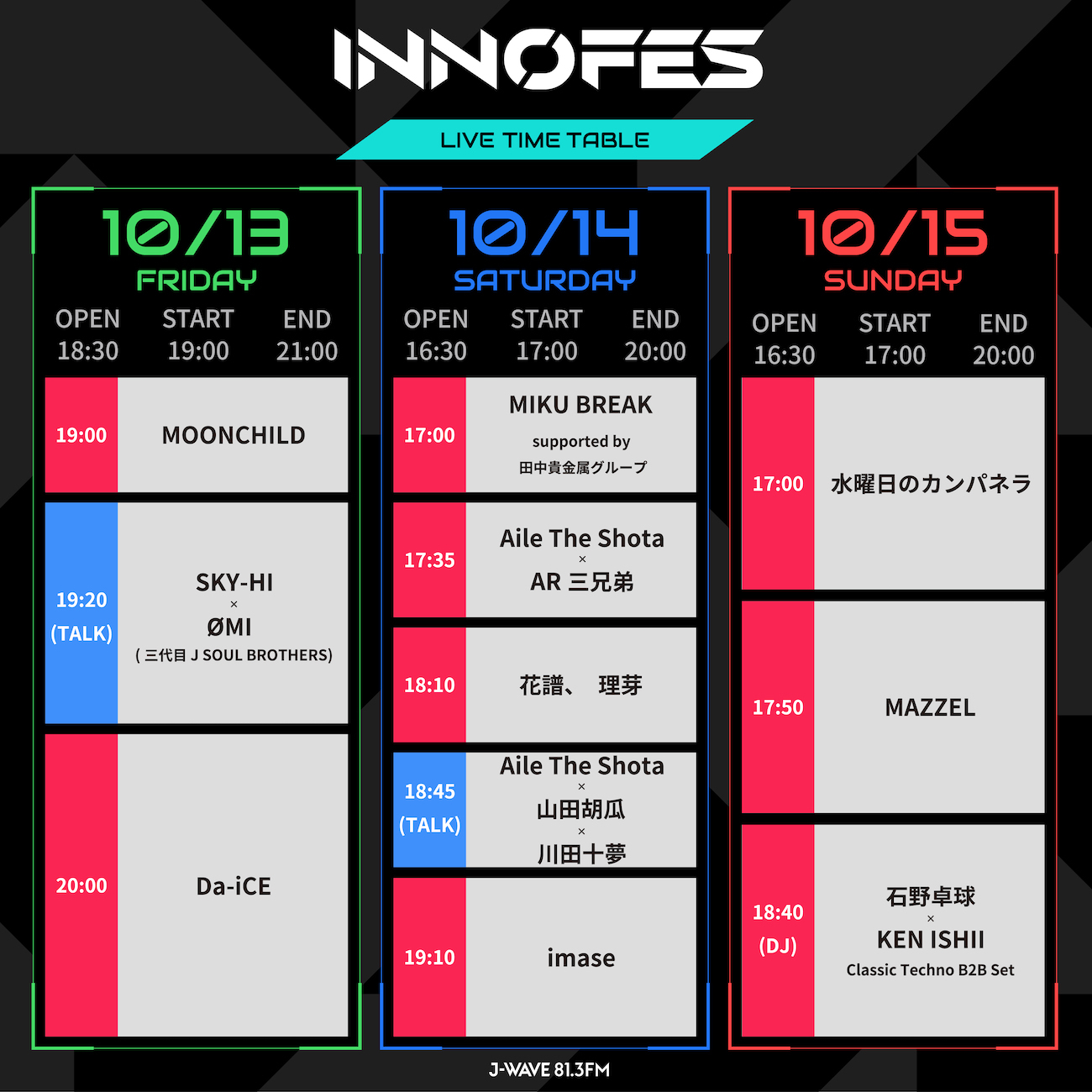 『J-WAVE INNOVATION WORLD FESTA 2023』タイムテーブル